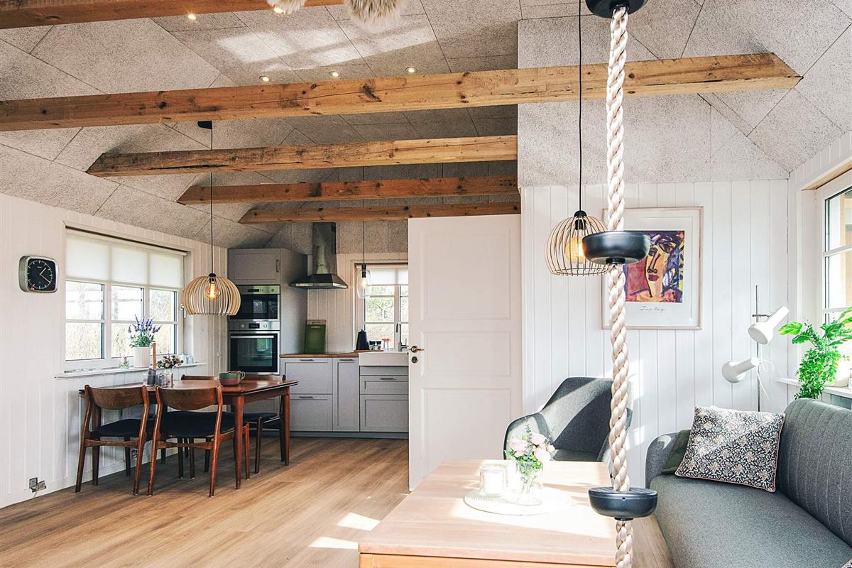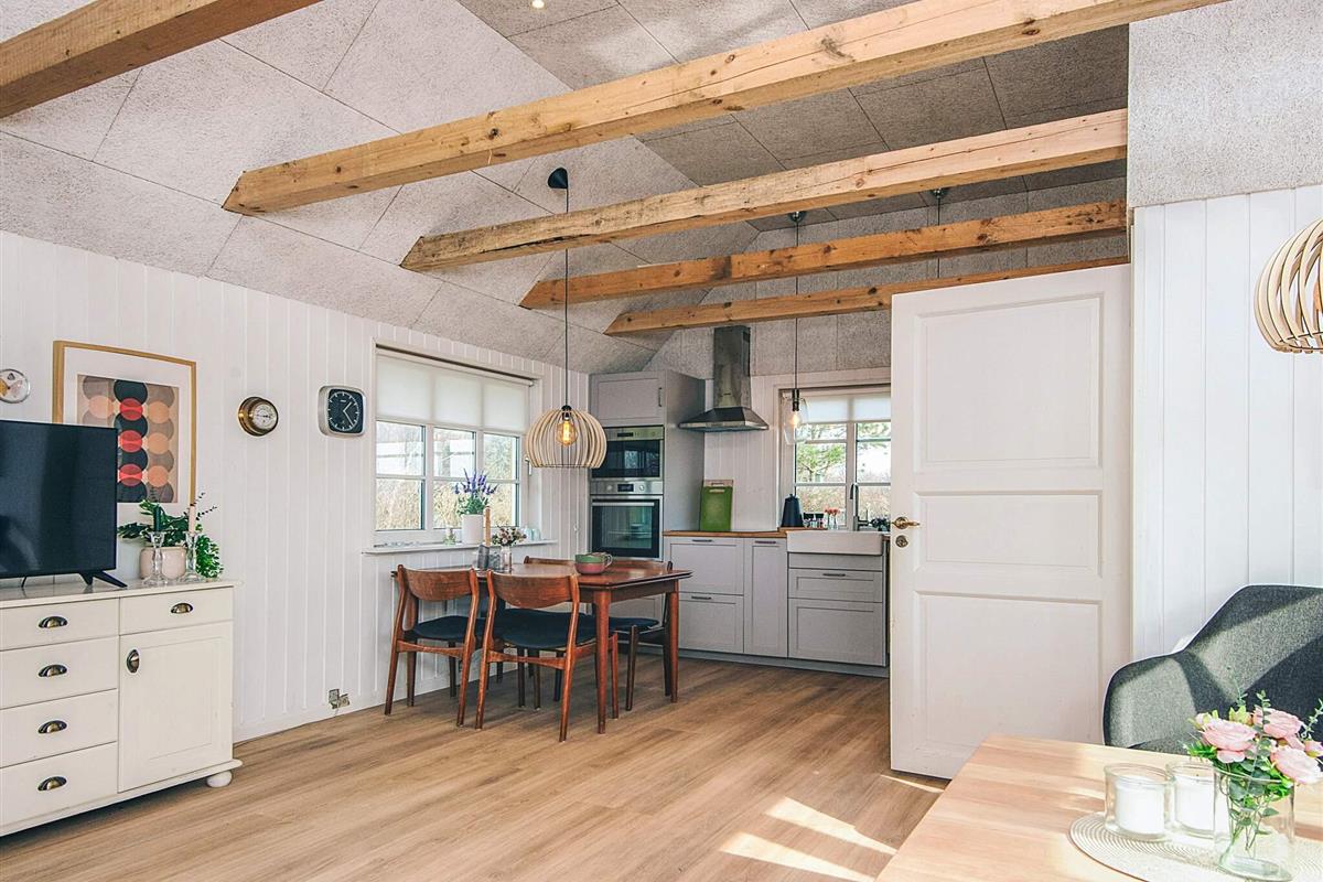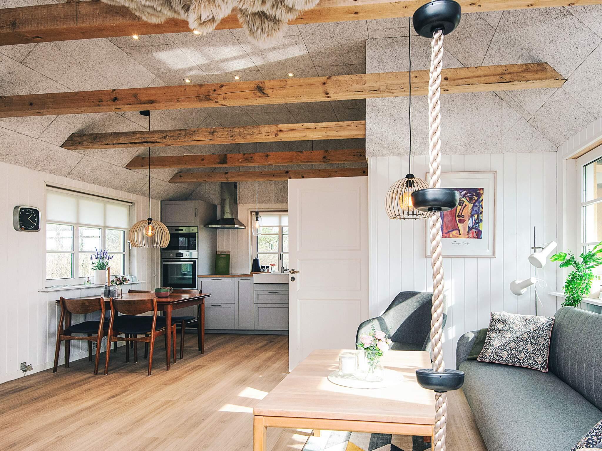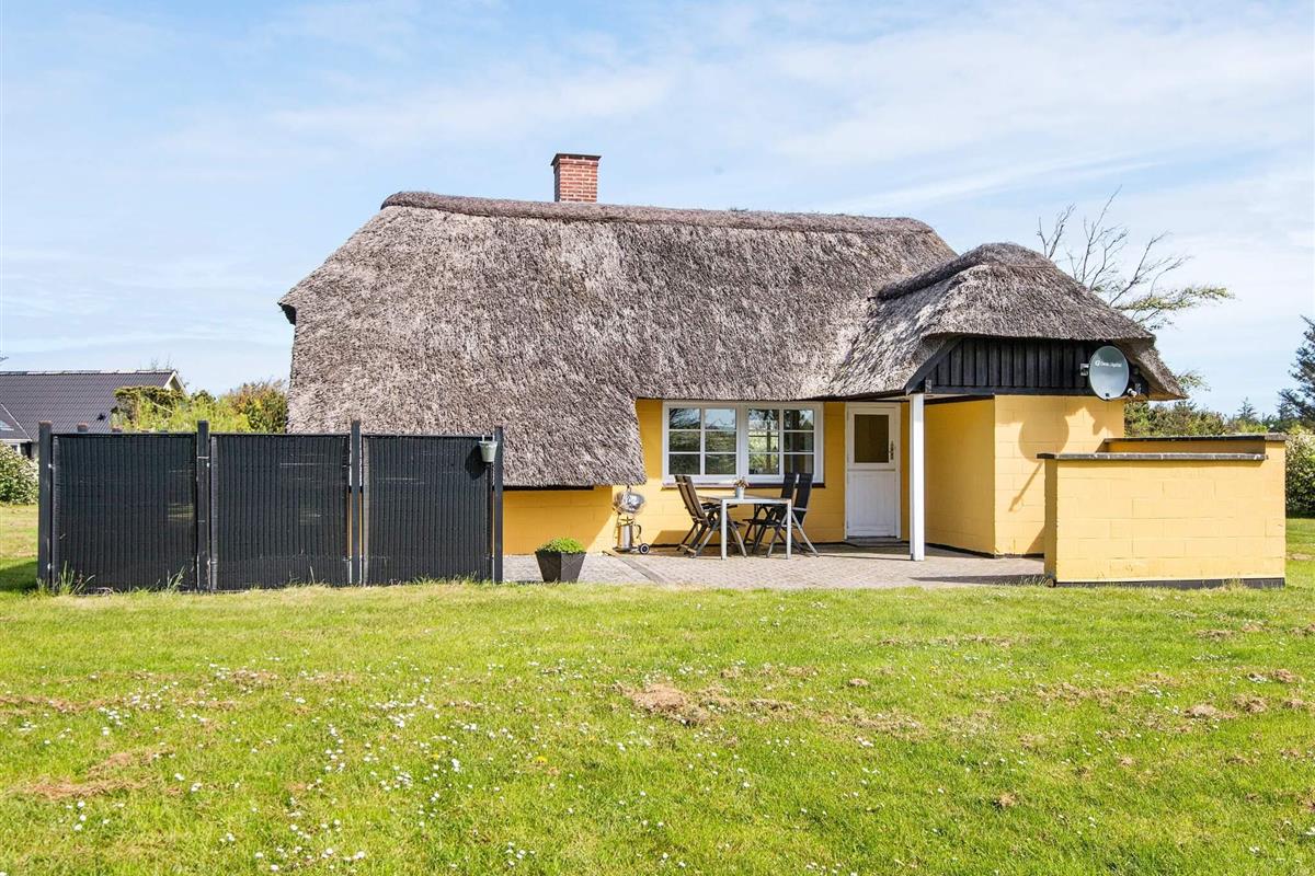 Dieses reetgedeckte, kleinere Ferienhäuschen strahlt sowohl von außen als auch im Inneren nostalgischen Charme aus und liegt wunderschön und friedlich in einem Ferienhausgebiet bei Fjand.