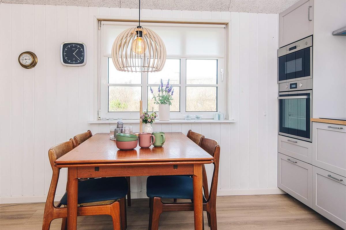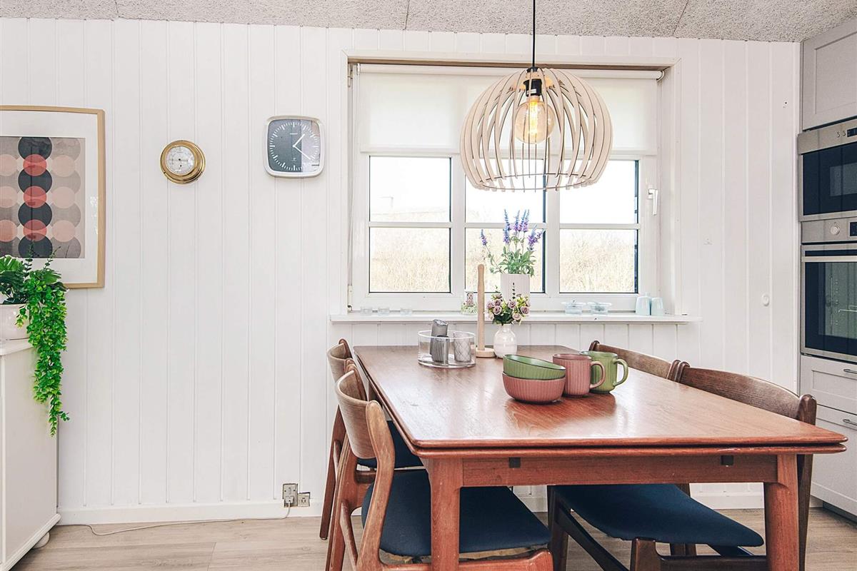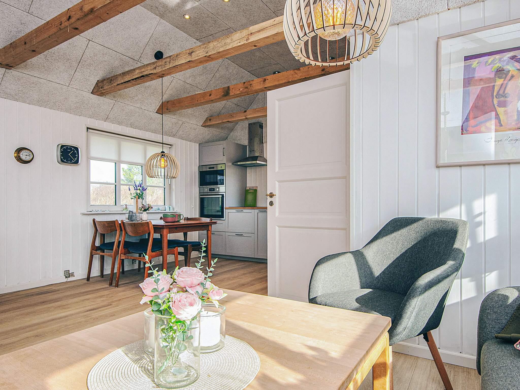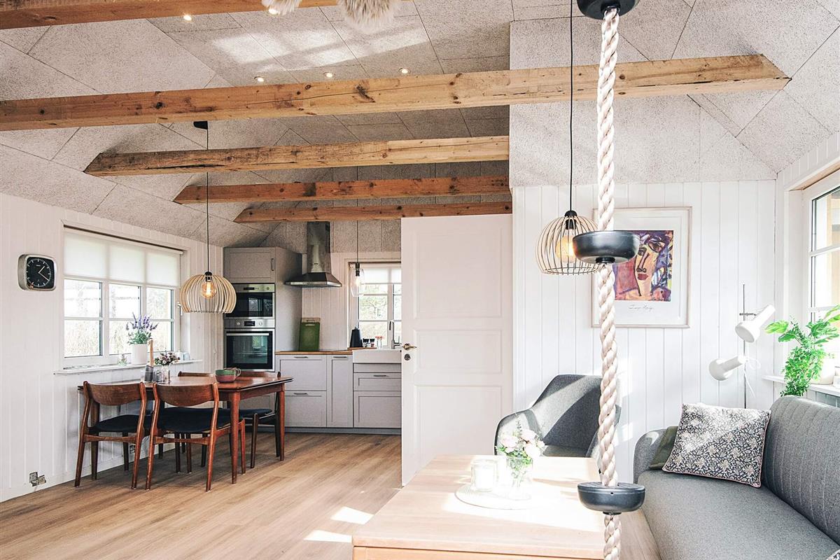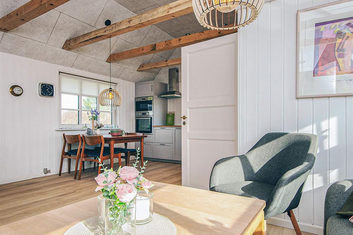 Dieses reetgedeckte, kleinere Ferienhäuschen strahlt sowohl von außen als auch im Inneren nostalgischen Charme aus und liegt wunderschön und friedlich in einem Ferienhausgebiet bei Fjand.