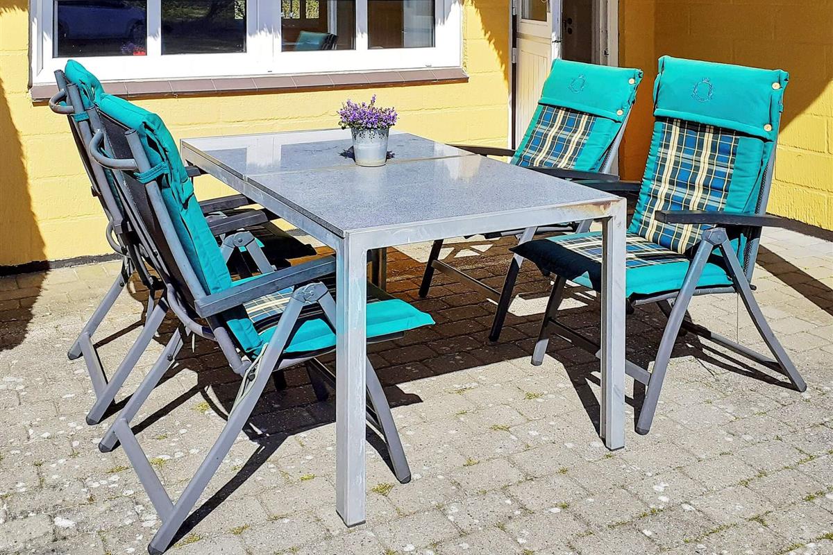 Die Terrasse des Hauses ist teilweise eingezäunt und bietet windgeschützte Sitzecken für sonnige Tage und Grillabende. Die Rasenfläche ringsum bietet sich für Spiel und Spaß der Kinder an.