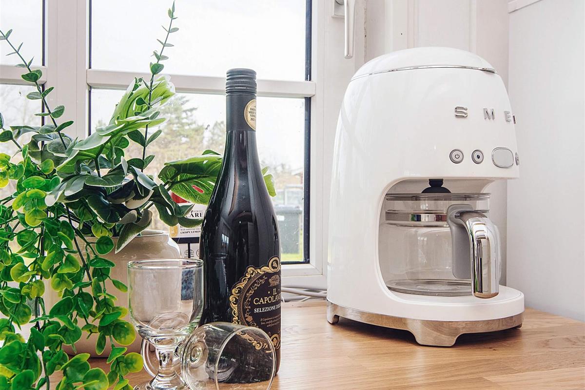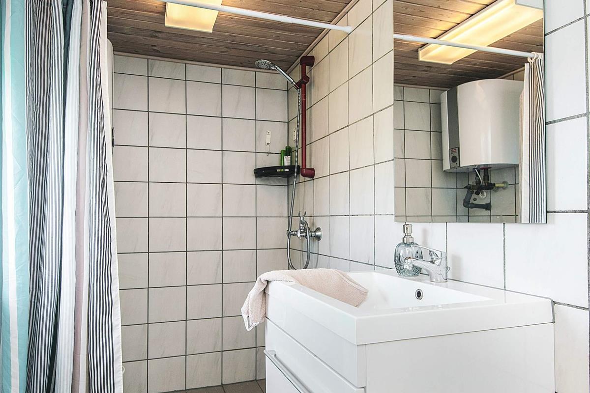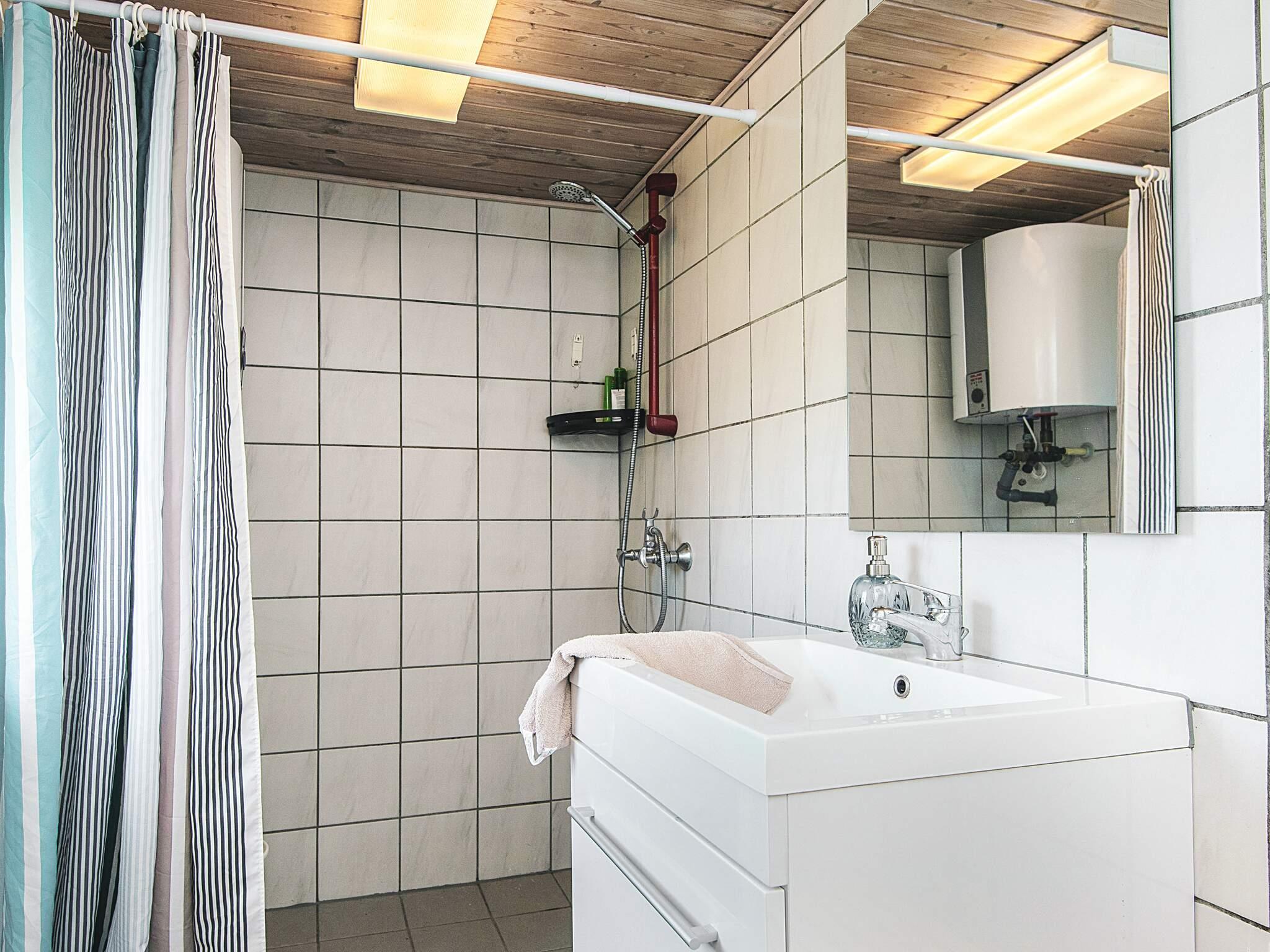 Innen wurde es gemütlich und mit persönlicher Note eingerichetet, inklusive vieler kleiner Details. Die gut ausgestattete Küche ist offen in den kombinierten Wohn- und Essbereich integriert, wo Sie an kühleren Abenden ein Feuer im Holzofen anzünden können. Neben einigen deutschen TV-Sendern und WLAN zum Surfen ist das Häuschen zudem mit einer energieeffizienten Wärmepumpe ausgestattet, die das ganze Haus erwärmen kann. Von einem kleinen Verbindungsflur aus haben Sie Zugang zum Badezimmer des Hauses mit Dusche sowie angenehmer Fußbodenheizung, Waschmaschine und Wäschetrockner. Vom Wohnzimmer aus haben Sie Zugang zu beiden Schlafzimmern des Hauses: eines mit Doppelbett, das andere mit zwei Einzelbetten.