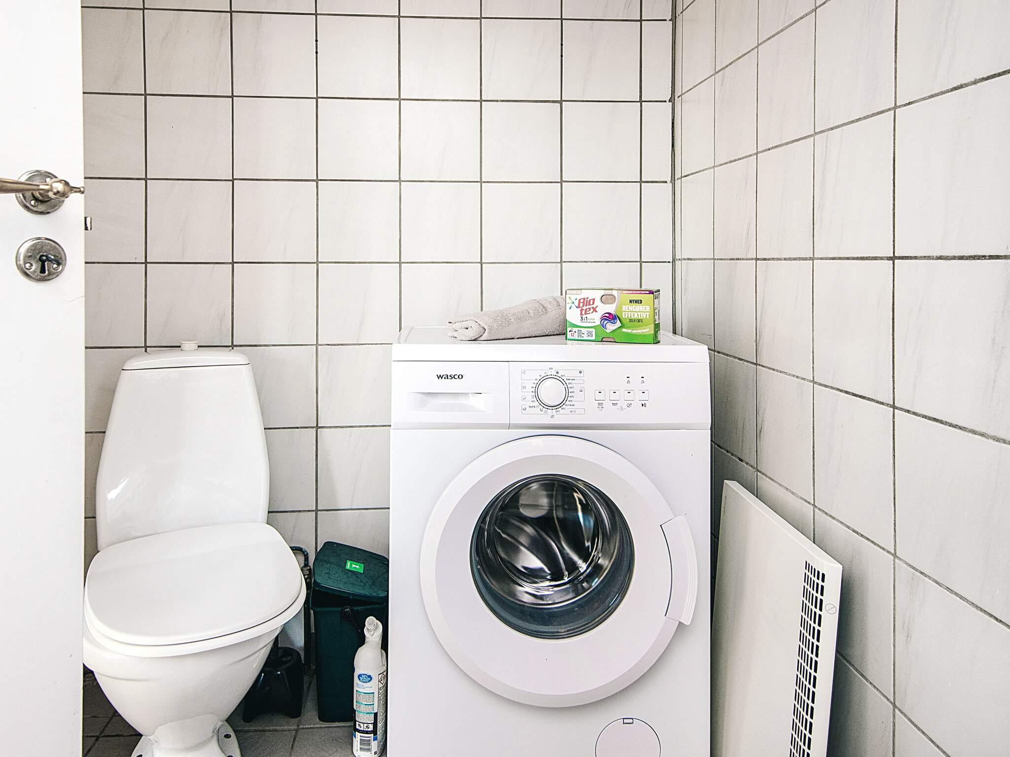 Bad: Waschm., WC, Waschb., Dusche, Fußbodenheiz.