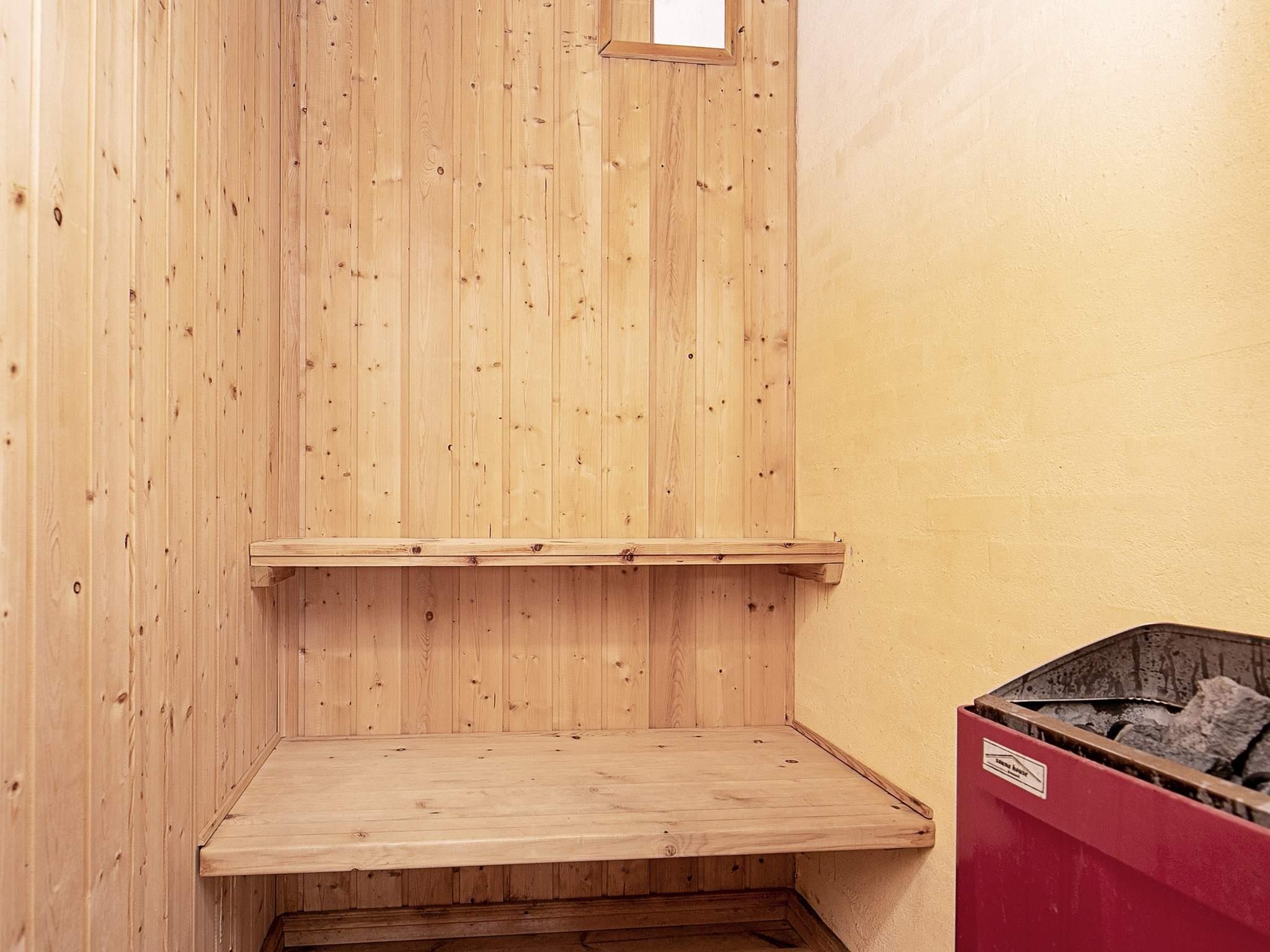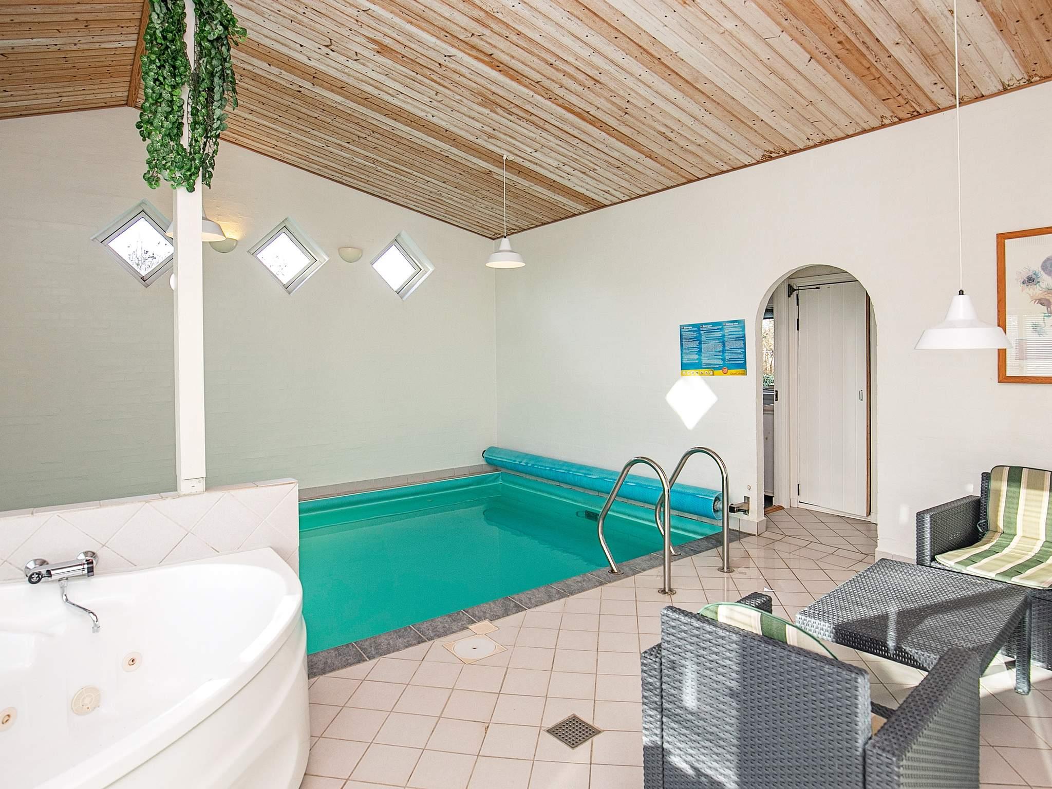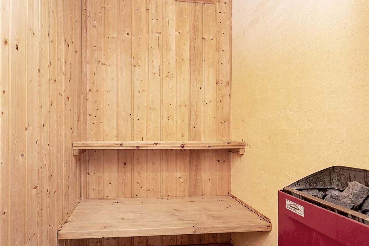 Das Haus ist hell eingerichtet und hat einen offenen Küchen-Ess-Wohnbereich. Im Wohnzimmer gibt es einen Holzofen, der an kühlen Tagen für gemütliche Wärme sorgt. Vom Wohnraum führt eine Glastür zum Poolraum, wo der Swimmingpool seine Badegäste erwartet. Auch ein Whirlpool und eine Sauna sind hier untergebracht und sorgen für wohlige Entspannung.