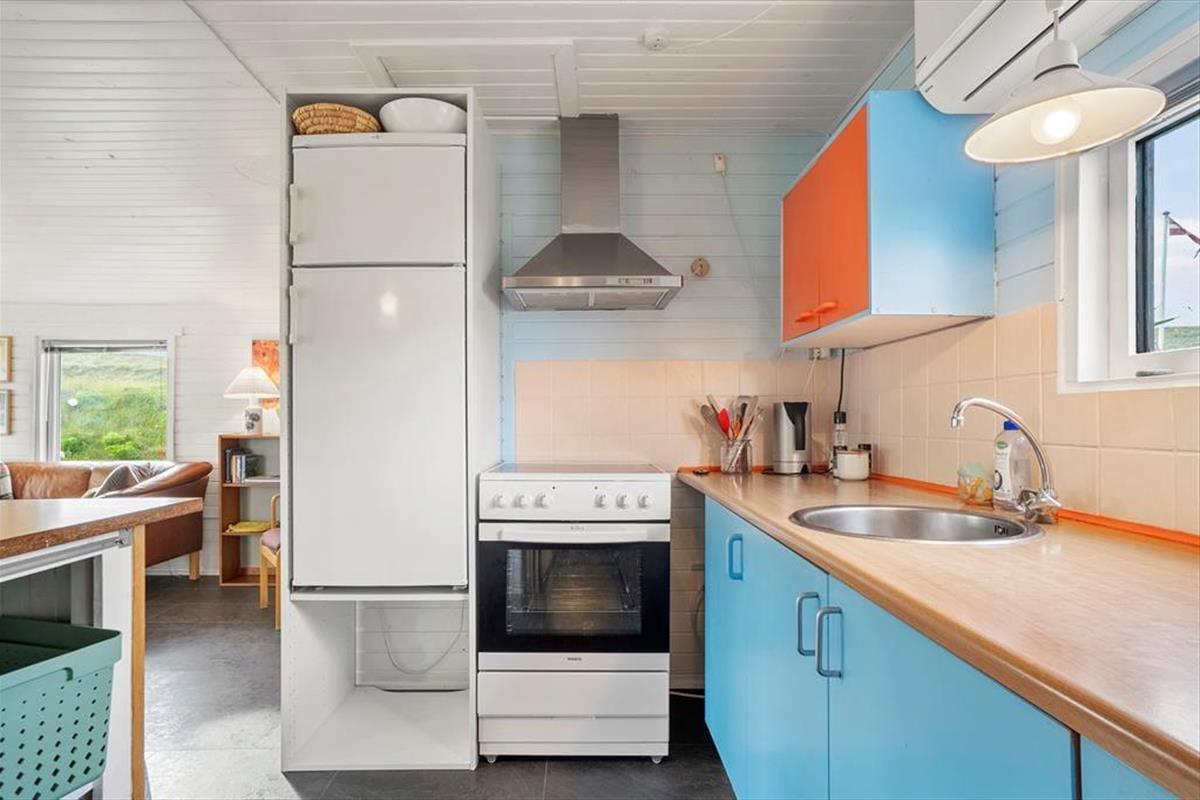 Willkommen im Enghytten – einem gemütlichen Ferienhaus, friedlich gelegen zwischen den rauschenden Wellen der Nordsee und dem stillen Wasser des Nissum Fjords. Schon beim Betreten empfängt Sie eine überdachte Terrasse, auf der Sie den Morgenkaffee windgeschützt genießen können, während die Natur Sie umgibt. Innen erwartet Sie ein helles und freundliches Zuhause mit weiß gestrichenen Wänden und Decken, die ein Gefühl von Weite und Ruhe schaffen. Die funktionale Küche mit praktischer, beweglicher Kochinsel macht das Kochen zum Vergnügen, und im Wintergarten mit Dachgiebel sorgen helle Elemente für eine offene und einladende Atmosphäre. Hier finden Sie eine wunderbare Basis, in der Gemütlichkeit und Naturerlebnisse Hand in Hand gehen.
