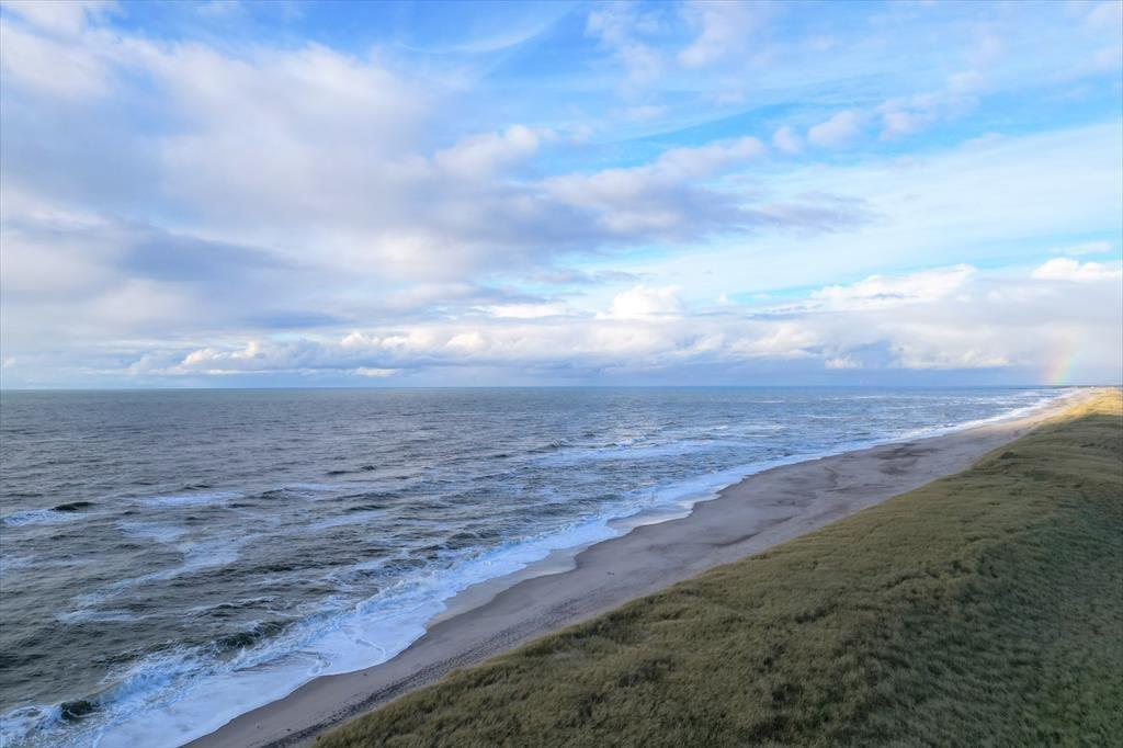 Der Garten und das beeindruckende Grundstück von 12.636 m² bieten Privatsphäre und eine Aussicht der Extraklasse – Dünen im Westen und der Fjord im Osten. Das Grundstück ist eingezäunt, sodass Kinder sicher spielen und Hunde frei herumlaufen können. Auf der nach Süden ausgerichteten Terrasse finden Sie Sonne und Windschutz – perfekt für den Morgenkaffee, Grillabende oder entspannte Stunden mit einem guten Buch. Entdecken Sie die Feuerstelle oder spielen Sie eine Runde Fußball auf dem Grundstück. Nur 140 Meter entfernt wartet die Nordsee – wild, schön und faszinierend. Am Abend können Sie mit einer Decke in die Dünen gehen und den Sonnenuntergang genießen, der den Himmel in warme Farben taucht.