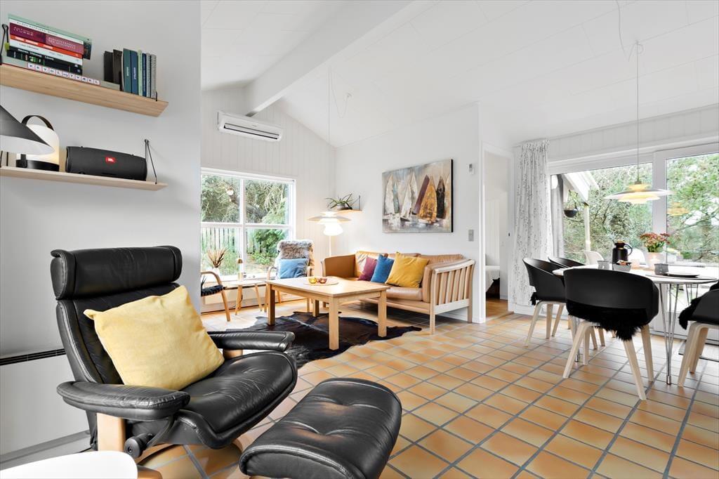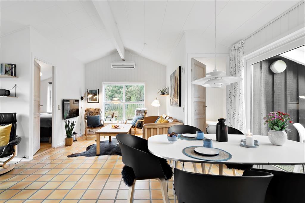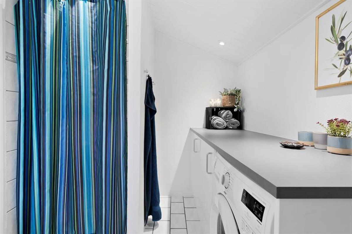 Warme, gemütliche Fliesen und äußerst schöne Details führen euch durch dieses herrliche, architektonisch gestaltete Ferienhaus. Genießt die wunderbare Großzügigkeit und den schönen Wohn-Kochbereich mit offener Decke bis zum Giebel. Macht es euch im großen Wohn-Essbereich gemütlich und erfreut euch am herrlichen Lichteinfall, der durch die großen Fenster mit fantastischem Blick über das Grundstück entsteht. In der Küche könnt ihr sogar direkt auf den Fjord blicken. Der großzügige Wohnbereich ermöglicht es euch, gemeinsam Zeit zu verbringen – auch wenn jeder etwas anderes macht: Einige bereiten in der Küche ein leckeres Essen zu, während andere ein gemütliches Kartenspiel genießen oder ein gutes Gespräch führen, während die Sonnenstrahlen durch die großen Fenster scheinen. Und wenn der Körper Entspannung braucht, könnt ihr euch auf die hauseigene Sauna freuen – der perfekte Abschluss eines aktiven Tages.
