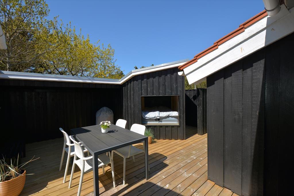 Brüht euch eine leckere Tasse Morgenkaffee auf, bevor ihr euch auf die ostgewandte Terrasse setzt und die Stille genießt, während die Sonne langsam aufgeht und die Vögel den Tag einläuten. Hier könnt ihr das große, hügelige Naturgrundstück genießen, das zu Entspannung und Geselligkeit einlädt. Auf dem Grundstück ist für die ganze Familie etwas dabei – schaukelt mit den Kindern oder spielt eine Runde Ball mit der ganzen Gruppe. Das Haus verfügt außerdem über eine neu gebaute Terrasse mit Außendusche sowie eine gemütliche Außenalkove – perfekt für einen ruhigen Moment mit einem guten Buch oder einem Mittagsschlaf im Schatten. Der geschlossene Innenhof zwischen den Gebäuden bietet euch eine besondere Oase, in der ihr euch zurückziehen und die Sonne windgeschützt genießen könnt. Nehmt das Abendessen mit nach draußen und genießt es auf der westlich ausgerichteten Terrasse, während die Sonne untergeht und der Himmel sich von einem klaren Blau in ein Meer aus orange-roten Tönen verwandelt. Wenn ihr Lust habt, über offenem Feuer zu kochen, steht euch eine kleine Feuerstelle auf dem Grundstück zur Verfügung.