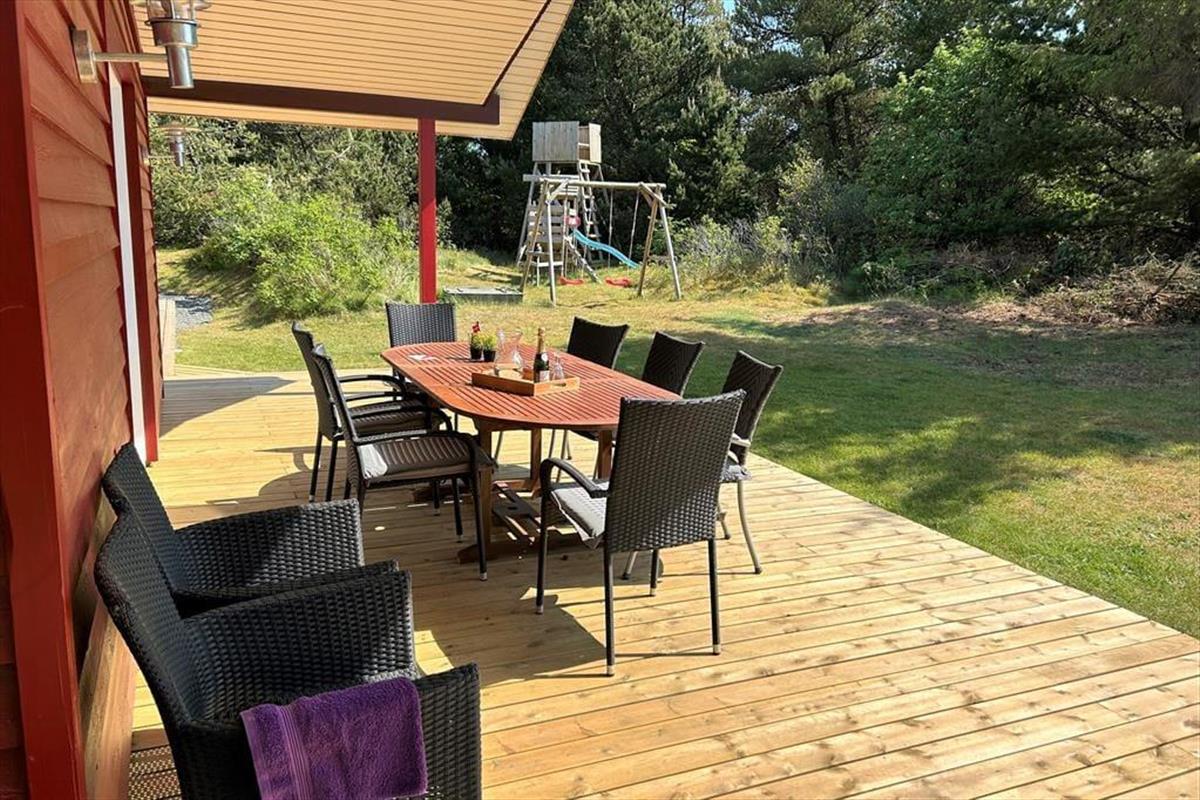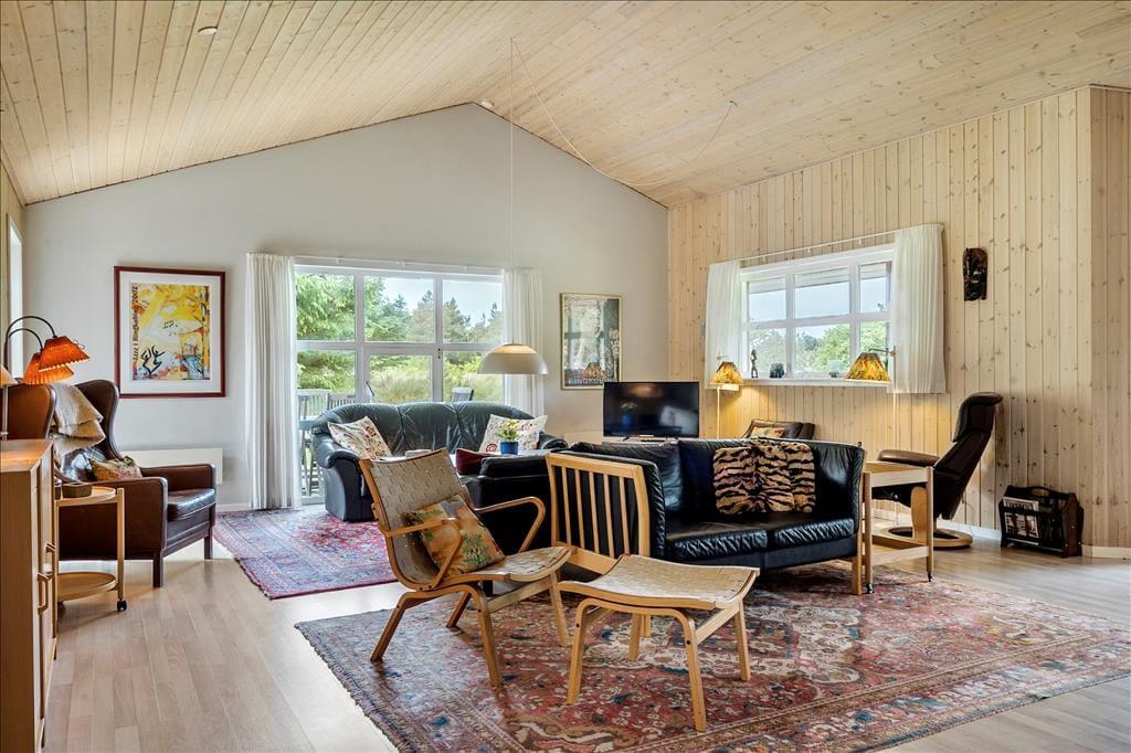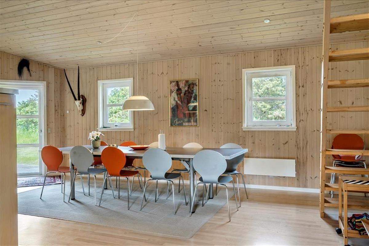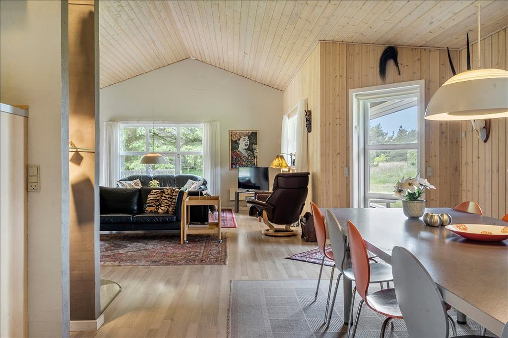 Willkommen in diesem fantastischen Ferienhaus, das sich in einem friedvollen und durch herrliche Natur geprägten Ferienhausgebiet befindet. Die Schönheit der umliegenden Natur erlebst du hautnah auf Radtouren und Spaziergängen. Binnen kurzer Zeit erreichst du den idyllischen Nissum Fjord, an dem du mit deinen Lieben auf einen schönen Spielplatz und auf einen reizenden kleinen Naturhafen triffst - perfekt für eine ruhige Stunde vor malerischer Kulisse. Wenige Kilometer trennen dein Urlaubsdomizil von der kleinen Ortschaft Sdr. Nissum, in der du ganzjährig an sieben Tagen pro Woche deine Einkäufe erledigen und frische Brötchen kaufen kannst. Sdr. Nissum und der in entgegengesetzter Richtung gelegene Hafenort Thorsminde sind sehr gut über einen schönen, gut ausgebauten Radweg erreichbar. Thorsminde gilt aufgrund hervorragender Fangplätze als wahres Anglerparadies. Ausgesprochen schön präsentiert sich zudem Thorsmindes Strandungsmuseum St. George, das Groß und Klein auf beeindruckende Weise die dramatischen Schiffsstrandungen vor diesem Küstenabschnitt näherbringt. Diverse weitere Attraktionen und Sehenswürdigkeiten erwarten dich und deine Familie in einem Umkreis von 50 Kilometern. Die Lage überzeugt mit dem Schönsten, was die Westküste zu bieten hat - mit Ruhe, herrlicher Natur und vielfältigen Aktivitätsmöglichkeiten.