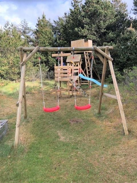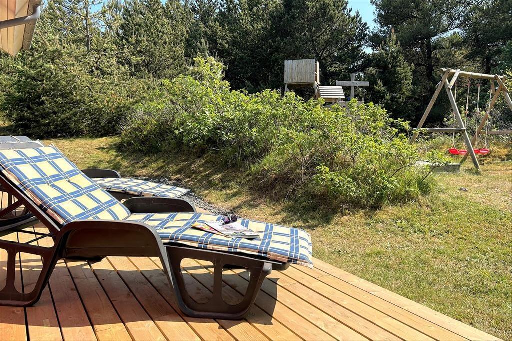 Dein Ferienhaus liegt auf einem großen Naturgrundstück in ruhiger, idyllischer Umgebung. Auf der sonnenverwöhnten, großen Holzterrasse laden Gartenmöbel zu entspannten Stunden und geselligen Runden mit einem Essen unter freiem Himmel ein. Da die Terrasse die West-, Süd- und Ostseite deines Urlaubsdomizil umgibt, findest du zu jeder Tageszeit ein angenehm sonniges Plätzchen. Während du dich in aller Ruhe zurücklehnst, werden deine Kinder ausgelassen auf dem fantastischen Spielturm mit Schaukel und Rutsche spielen. Darüber hinaus animiert das über 4.000 m² große Grundstück kleine und größere Kinder zum Erkunden der Natur. Dein Ferienhaus eignet sich bestens für Familien, deren Urlaub von Entspannung und Aktivitätsmöglichkeiten geprägt werden soll. Kinder und Erwachsene erwartet hier ein perfektes Urlaubserlebnis im Einklang mit der Natur!