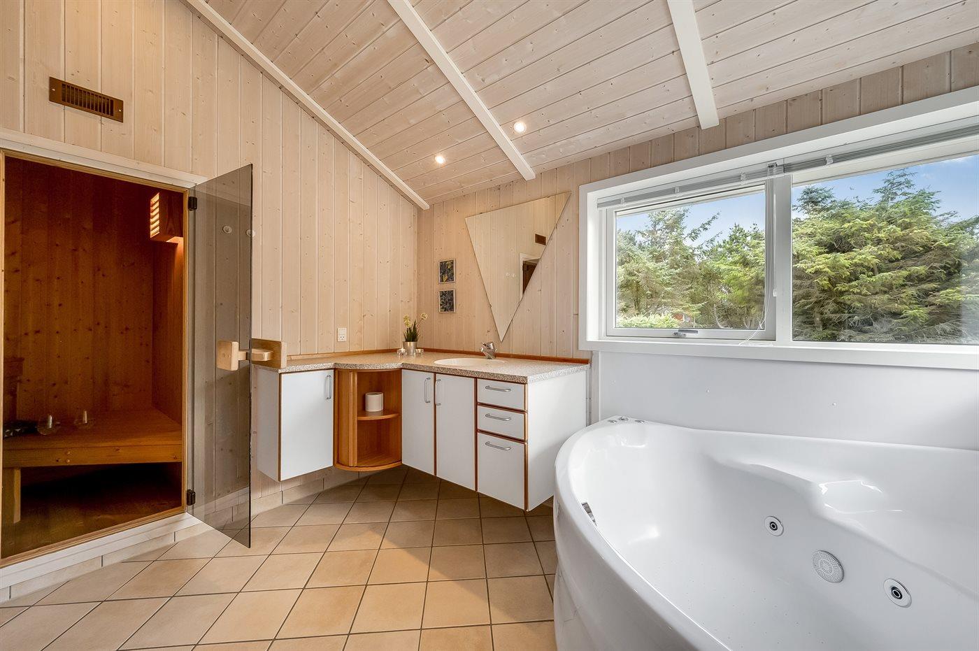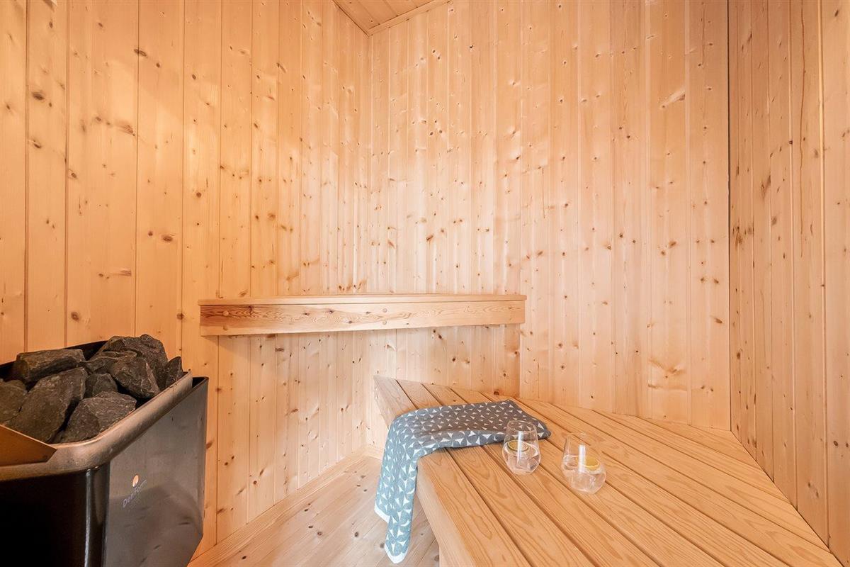 Er is 1 badkamer met douchehok en 1 toilet.. Er is vloerverwarming in 1 badkamer. De sauna biedt de gelegenheid tot ontspanning.