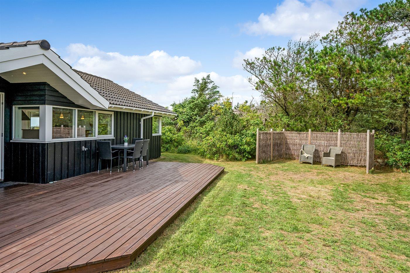 De vakantiewoning is gelegen op een 1200 m² groot Afstand tot de zee 2500 m. Afstand tot de fjord 250 m. Dichtstbijzijnde winkel 5000 m. Bij de vakantiewoning hoort 51 m² terras. Daarnaast is er een 13 m² groot overdekt terras. Gereedschapsruimte. Parkeerplaats bij het huis.