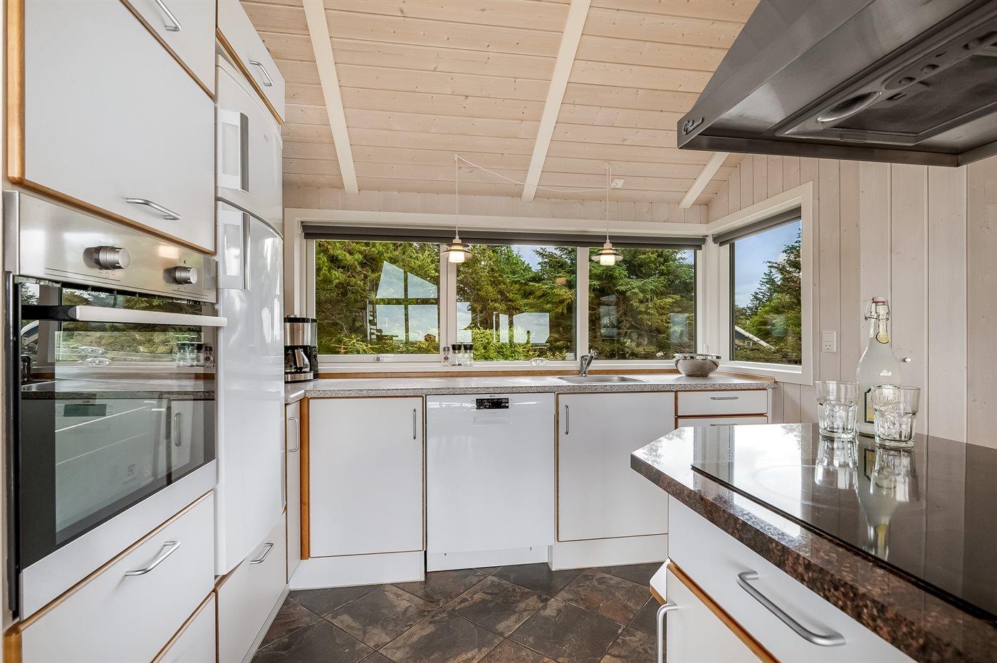 De keuken is uitgerust met koelkast Er zijn 4 keramische kookplaten, heteluchtoven, magnetron en vaatwasser.