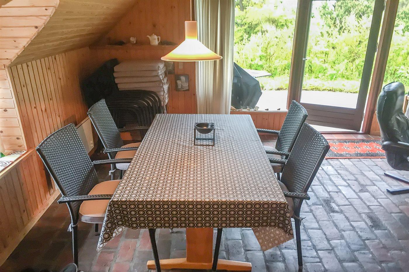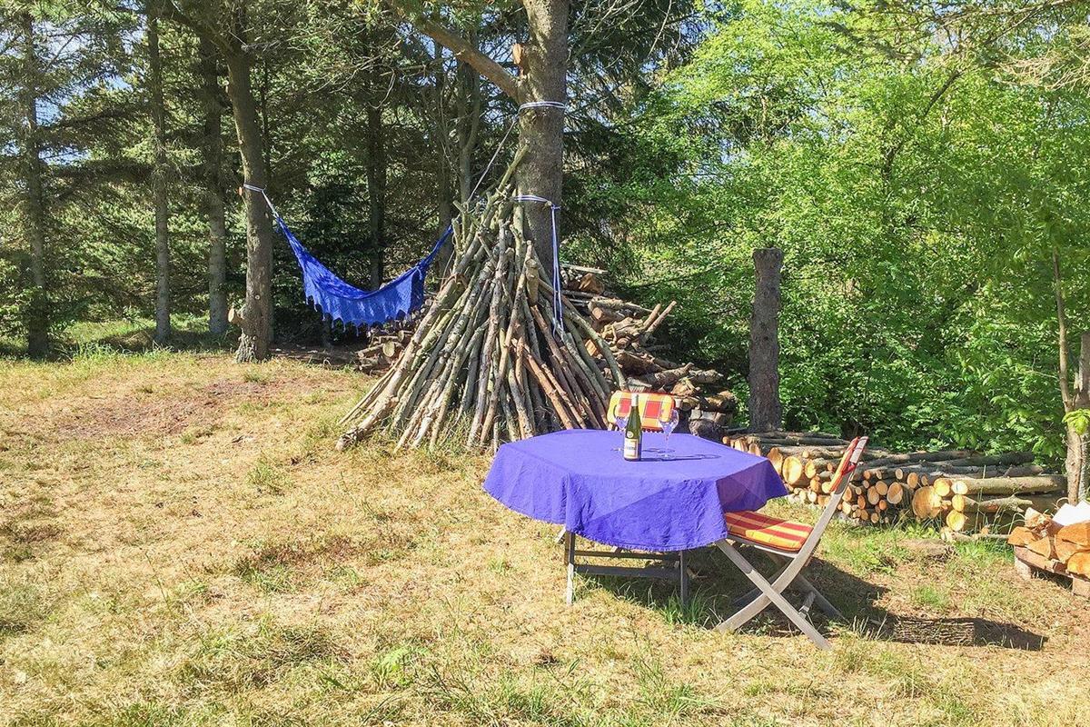 De vakantiewoning is gelegen op een 1450 m² groot natuural grond. Afstand tot de zee 1500 m. Afstand tot de fjord 300 m. Dichtstbijzijnde winkel 5000 m. Bij de vakantiewoning hoort 65 m² terras. Daarnaast is er een 6 m² groot overdekt terras. Parkeerplaats bij het huis.