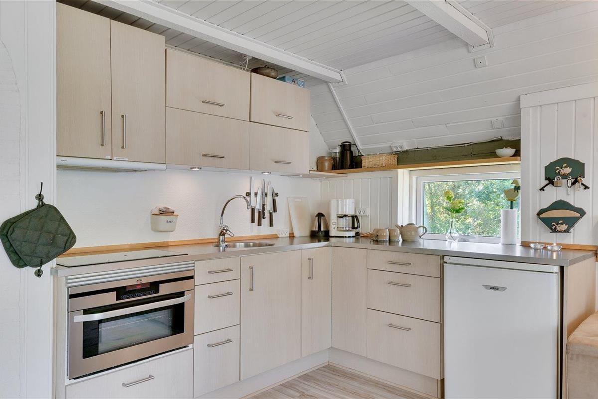 De keuken is uitgerust met koelkast. (Extra koelkast in de schuur ter beschikking). Er zijn 4 keramische kookplaten, heteluchtoven.