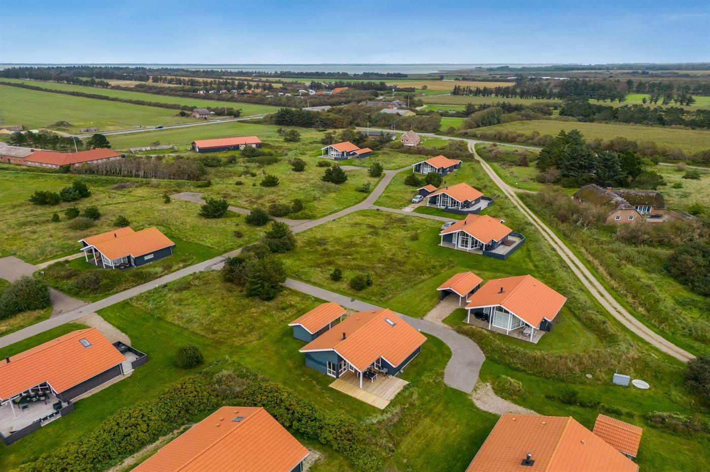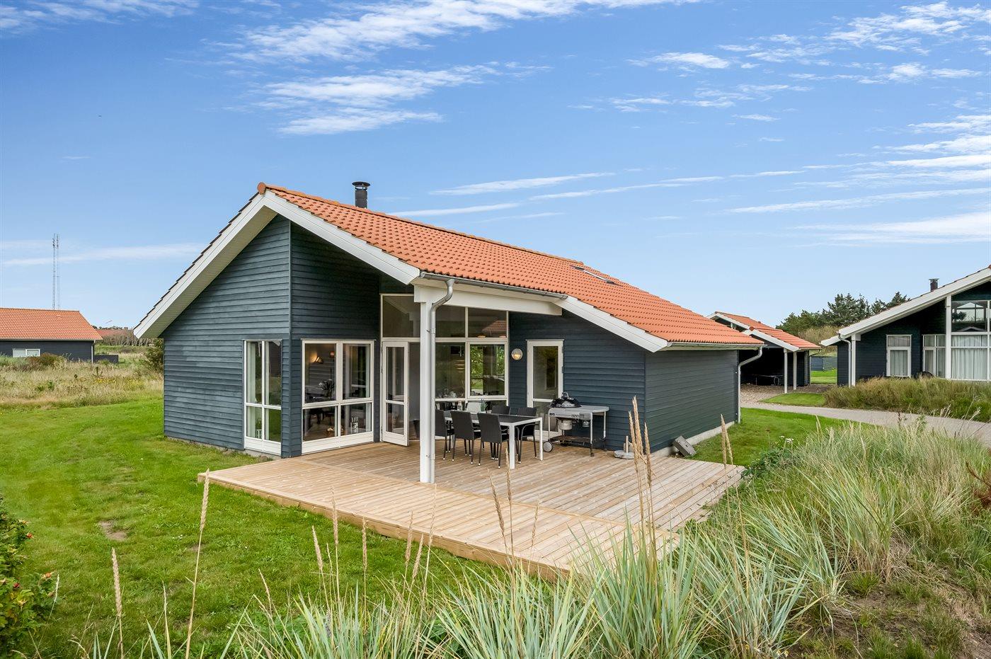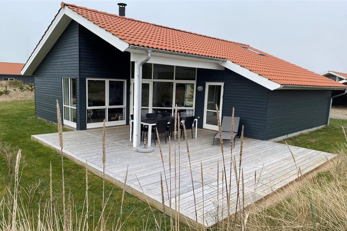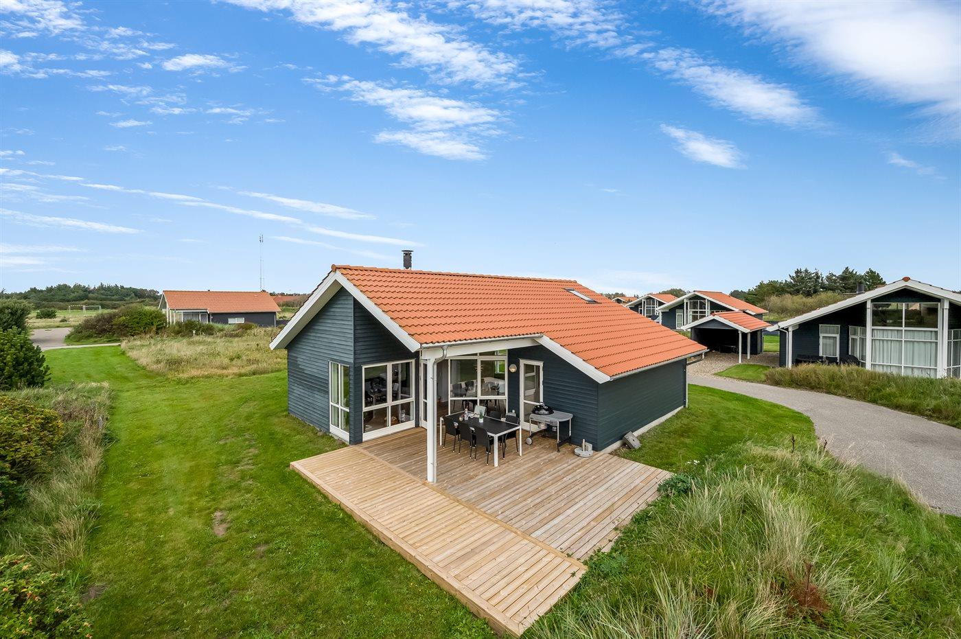 De vakantiewoning is gelegen op een 400 m² groot natuural grond. Afstand tot de zee 800 m. Afstand tot de fjord 1000 m. Dichtstbijzijnde winkel 3000 m. Er is een golfbaan op een afstand van 20000 m. Bij de vakantiewoning hoort terras. Daarnaast is er een overdekt terras. Afstand tot speelplaats 150 m. Barbecue. Carport ter beschikking. Parkeerplaats bij het huis.