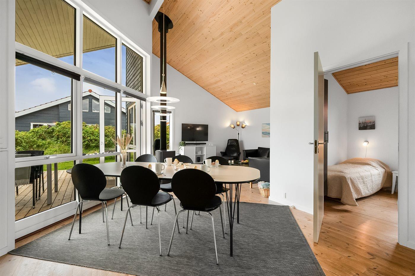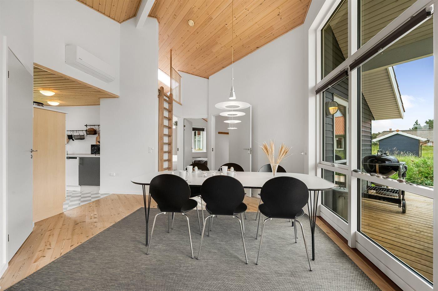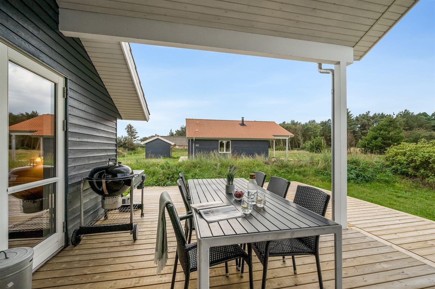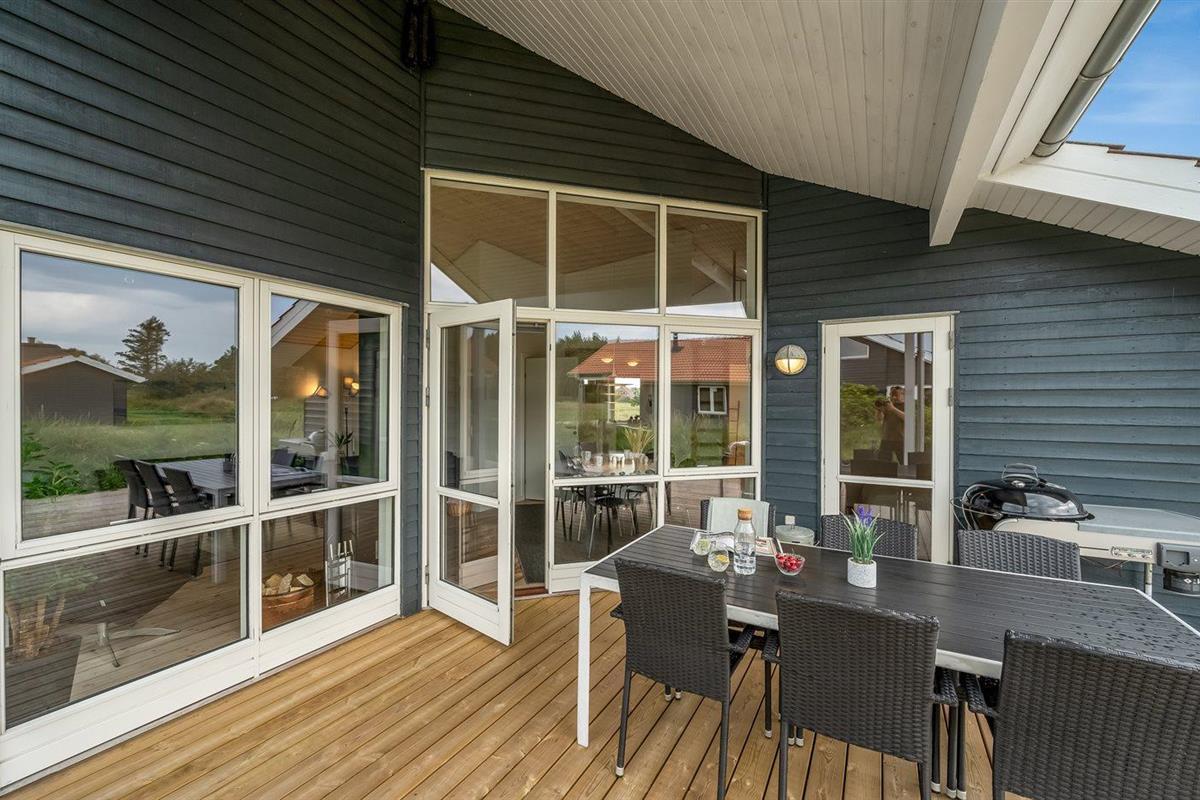 De vakantiewoning is gelegen op een 400 m² groot natuural grond. Afstand tot de zee 800 m. Afstand tot de fjord 1000 m. Dichtstbijzijnde winkel 3000 m. Er is een golfbaan op een afstand van 20000 m. Bij de vakantiewoning hoort terras. Daarnaast is er een overdekt terras. Afstand tot speelplaats 150 m. Barbecue. Carport ter beschikking. Parkeerplaats bij het huis.