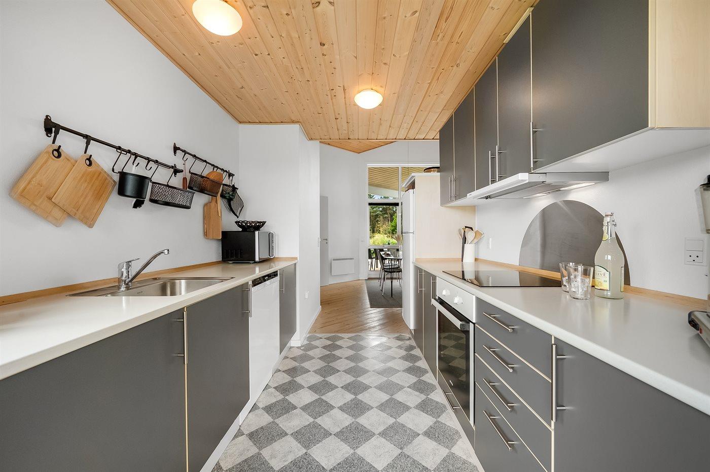 De keuken is uitgerust met koelkast Er zijn 4 keramische kookplaten, heteluchtoven, magnetron en vaatwasser.