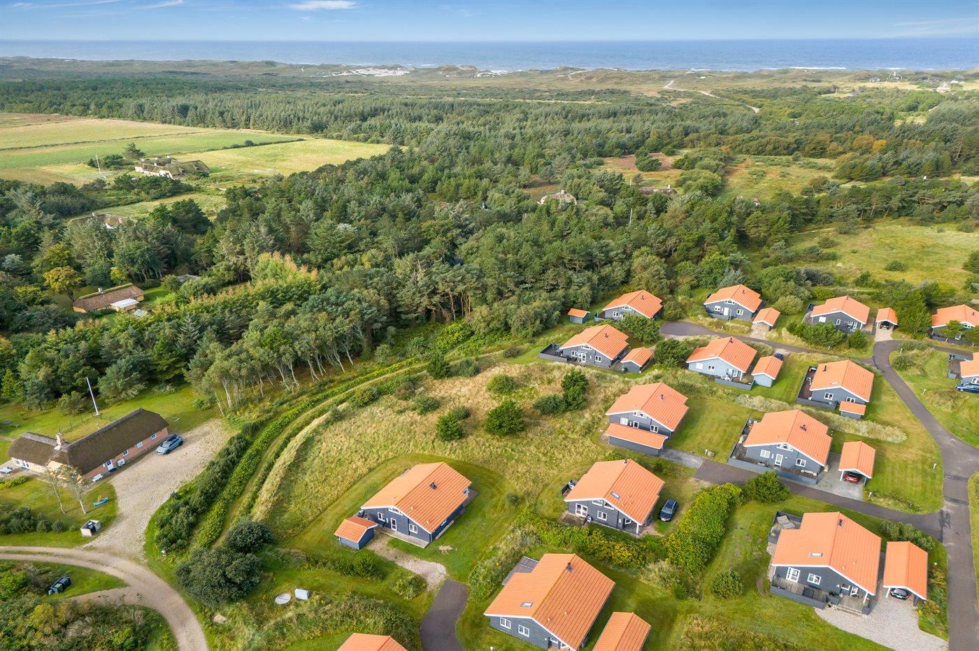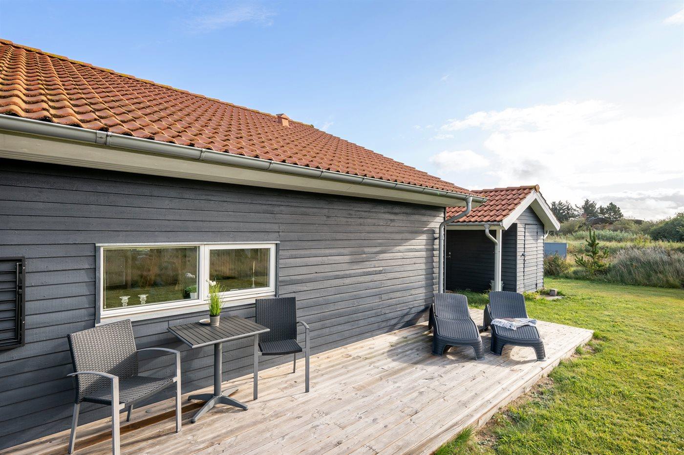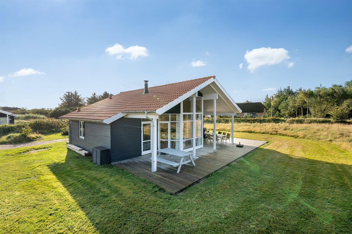 De vakantiewoning is gelegen op een 500 m² groot natuural grond. Afstand tot de zee 800 m. Afstand tot de fjord 1000 m. Dichtstbijzijnde winkel 3000 m. Bij de vakantiewoning hoort terras. Daarnaast is er een overdekt terras. Gereedschapsruimte. Afstand tot speelplaats 150 m. Parkeerplaats bij het huis.