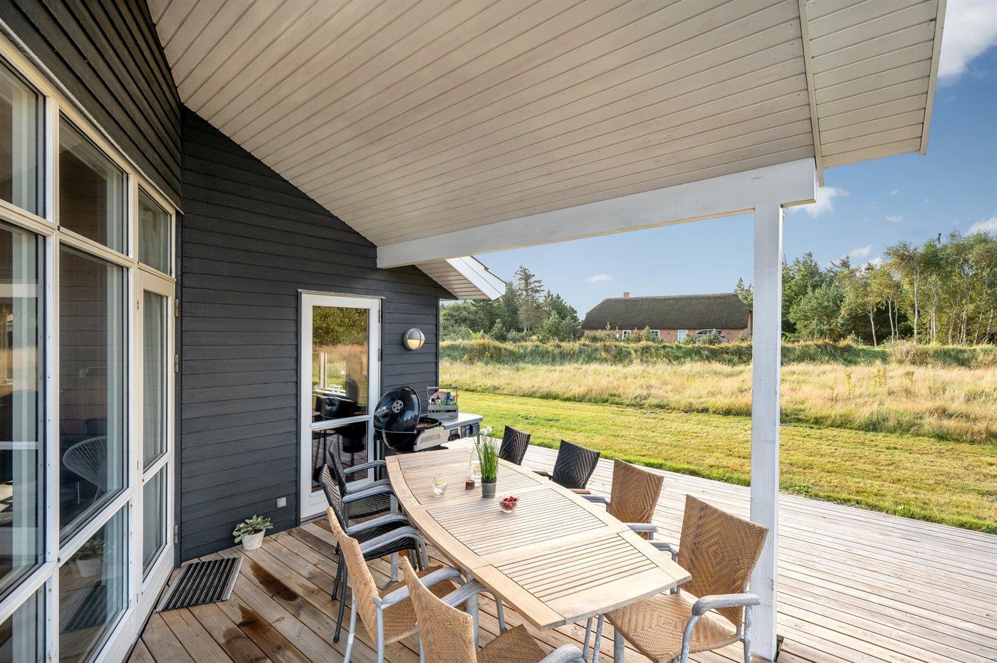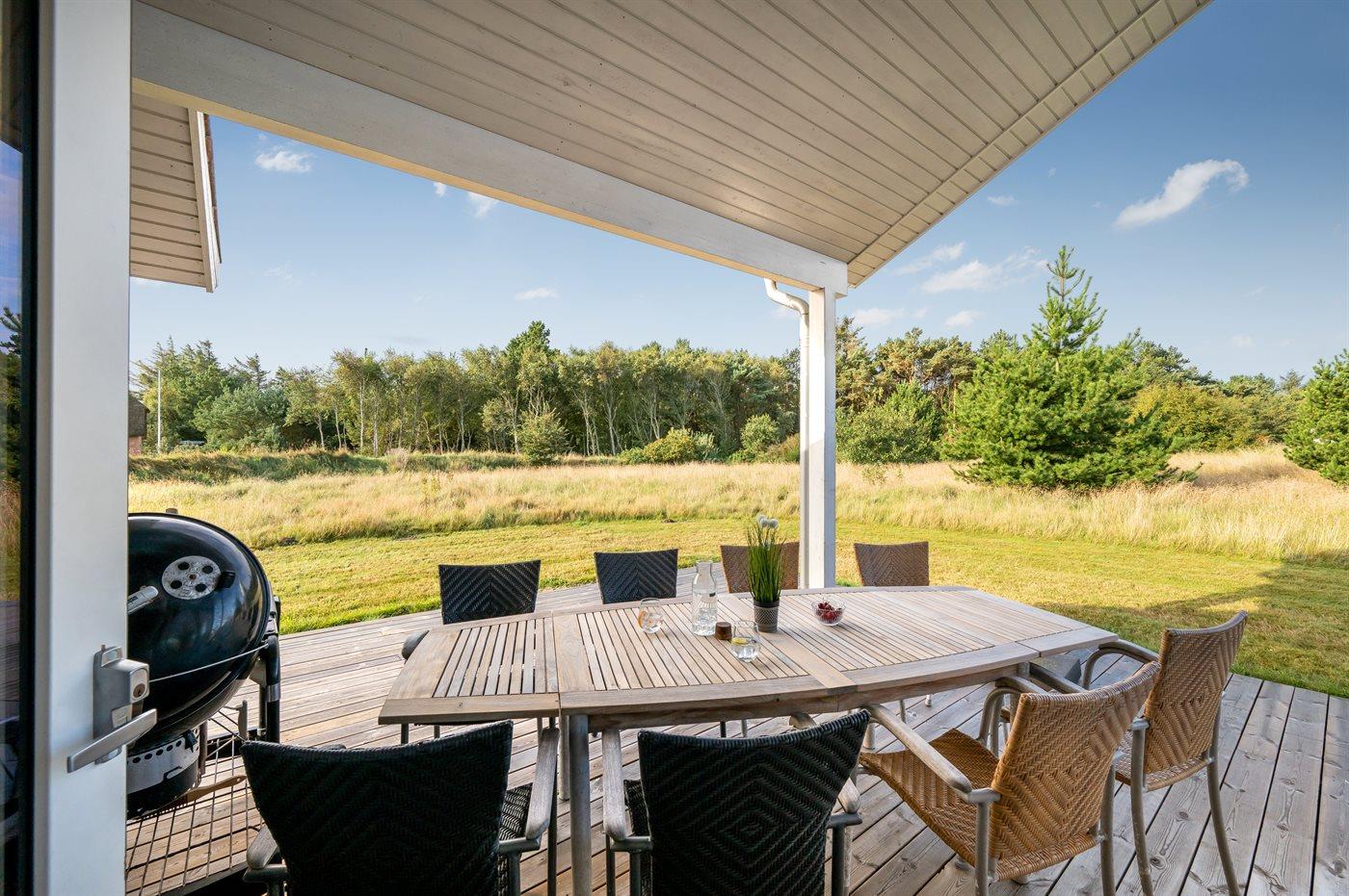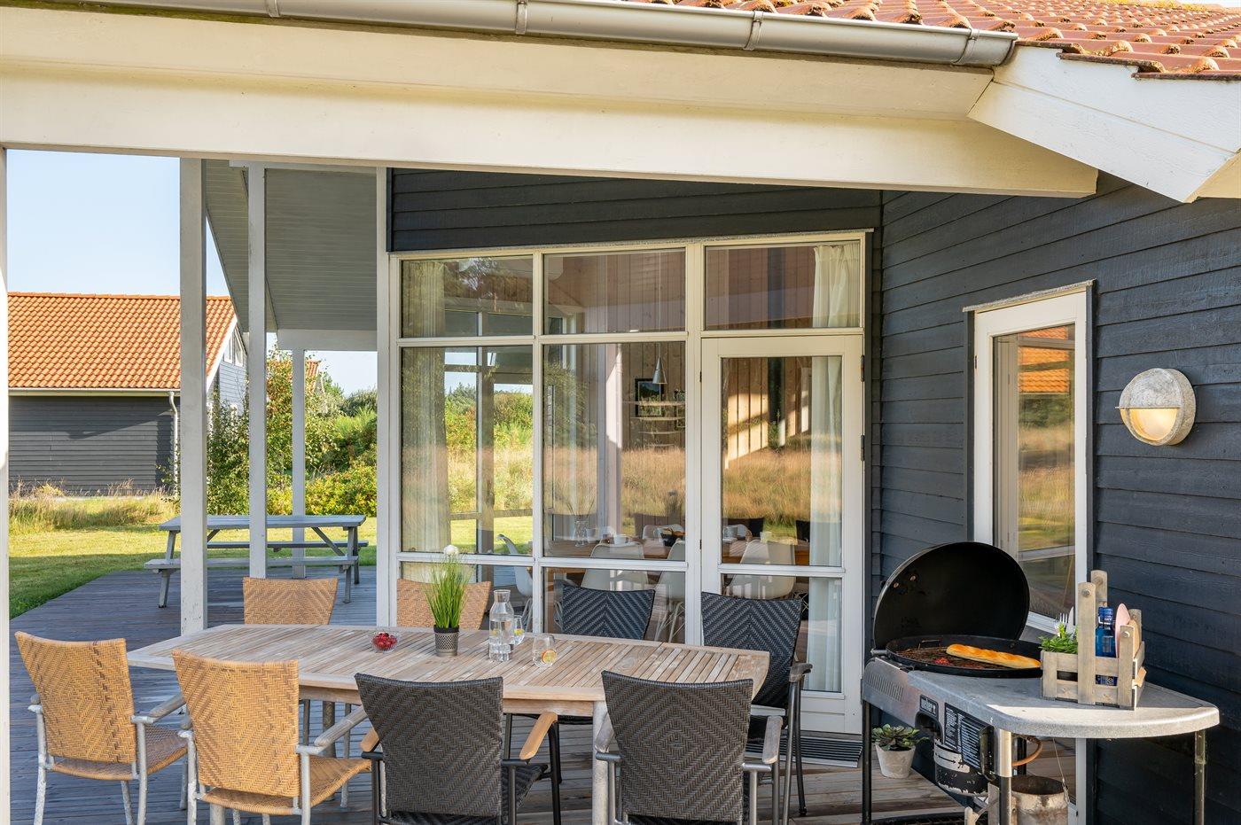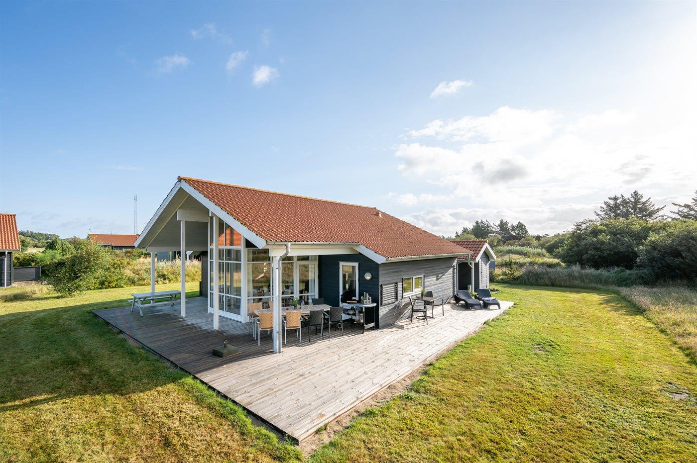 De vakantiewoning is gelegen op een 500 m² groot natuural grond. Afstand tot de zee 800 m. Afstand tot de fjord 1000 m. Dichtstbijzijnde winkel 3000 m. Bij de vakantiewoning hoort terras. Daarnaast is er een overdekt terras. Gereedschapsruimte. Afstand tot speelplaats 150 m. Parkeerplaats bij het huis.