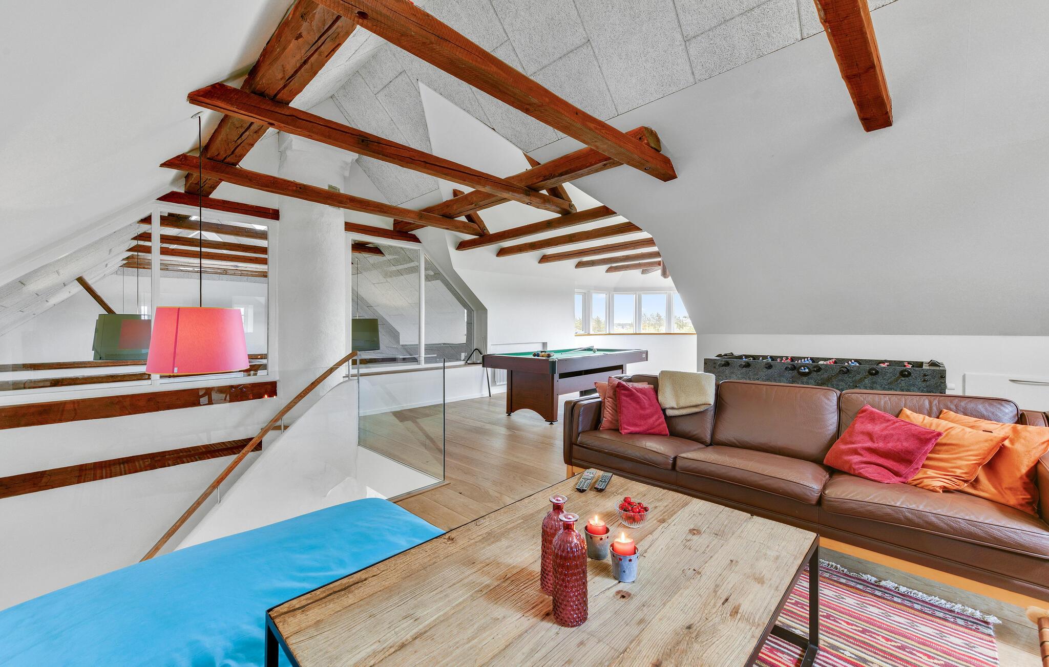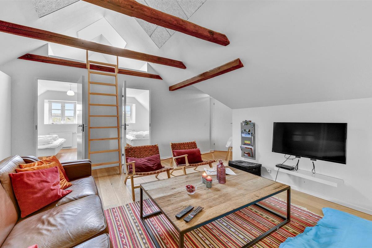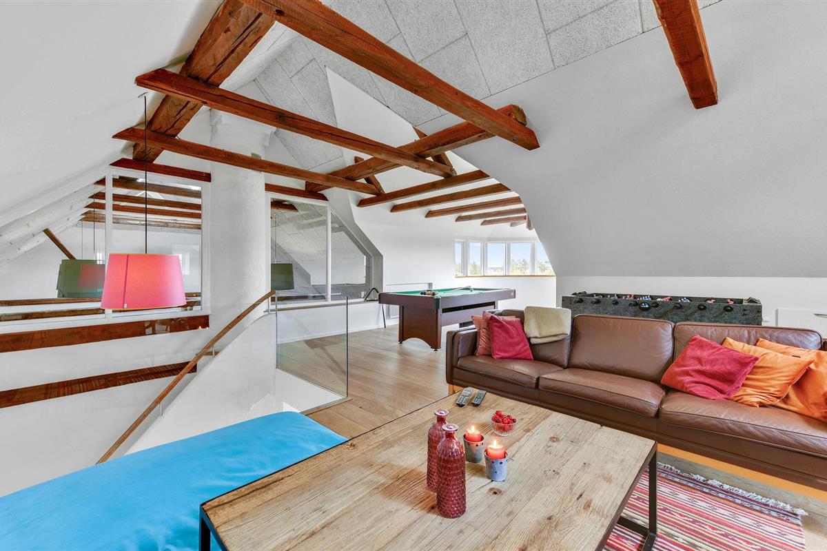 Tussen het Nissum Fjord en de Noordzee met haar eindeloze witte zandstranden ligt deze mooie boerderij in de duinen op je te wachten met ruimte voor je hele, grote gezin.
