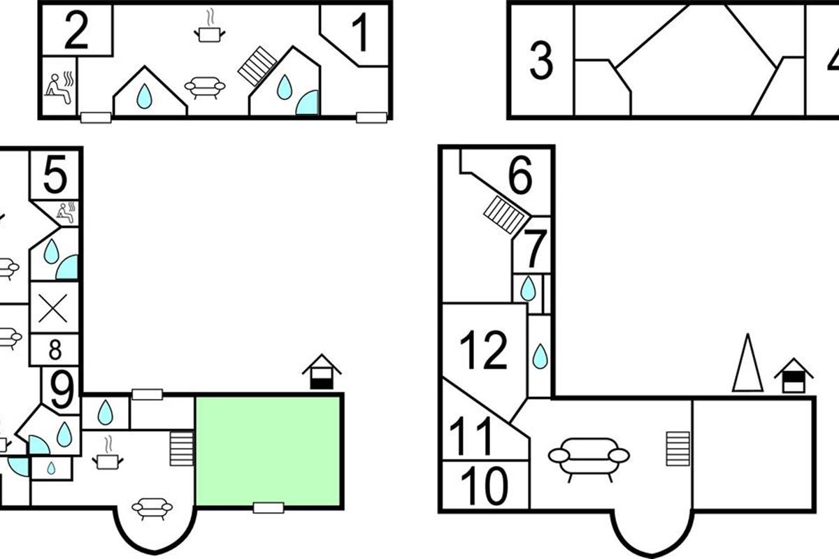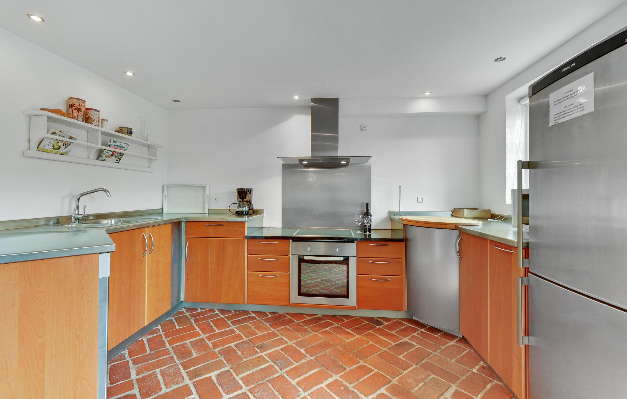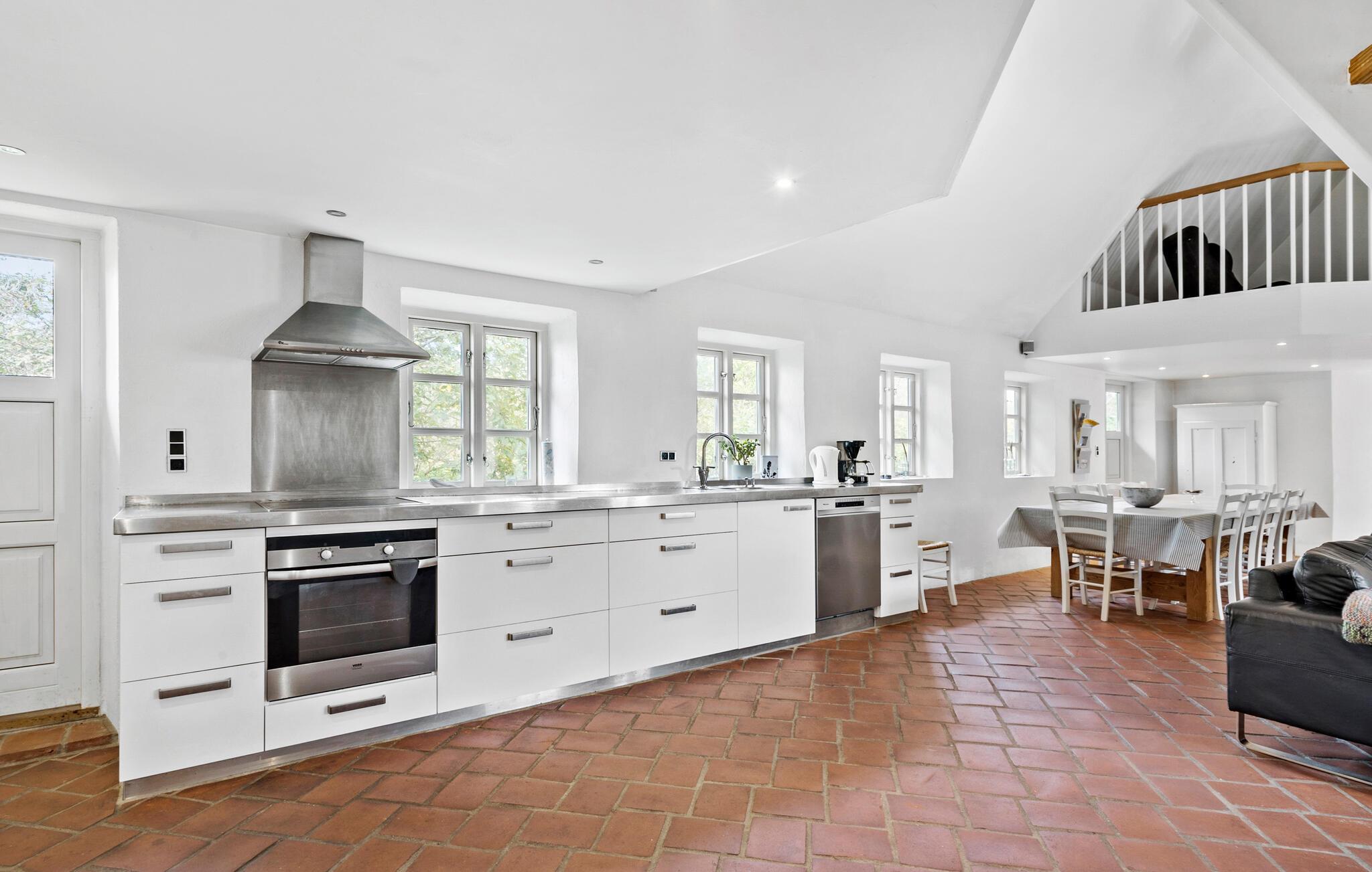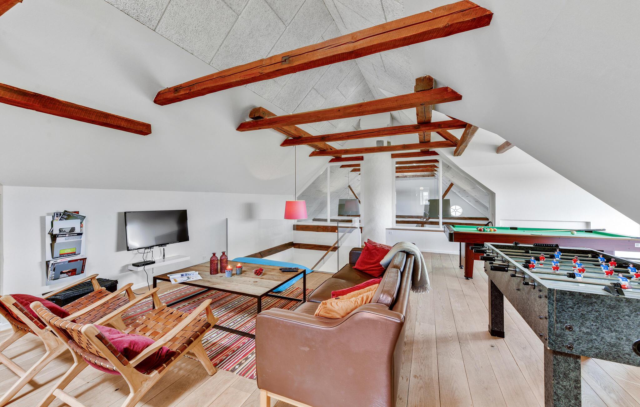 Het huis biedt plaats aan 32 personen. De boerderij zelf bestaat uit vier appartementen, als volgt verdeeld: Flat A met 157 m² en ruimte voor 10 personen, Appartement B met 120 m² voor 8 personen, C met 67 m² voor 6 personen en D met 180 m² voor 8 personen. Als je wilt ontspannen, kun je je gewoon terugtrekken in je eigen appartement en je wijden aan een goed boek of de televisie. Elk appartement heeft zijn eigen volledig uitgeruste keuken, eethoek en tv-kamer. Er is ook een whirlpool voor twee personen in elke flat, en in drie flats is er zelfs een sauna. Flat D heeft ook een activiteitenruimte met een pooltafel, tafeltennis en tafelvoetbal.