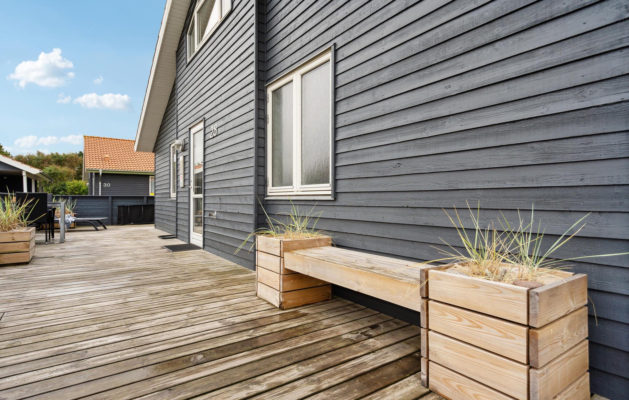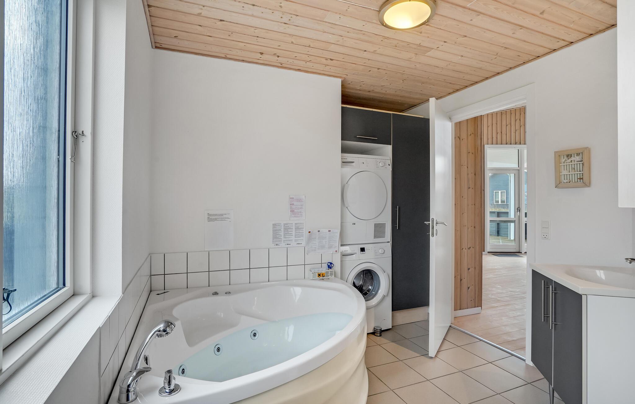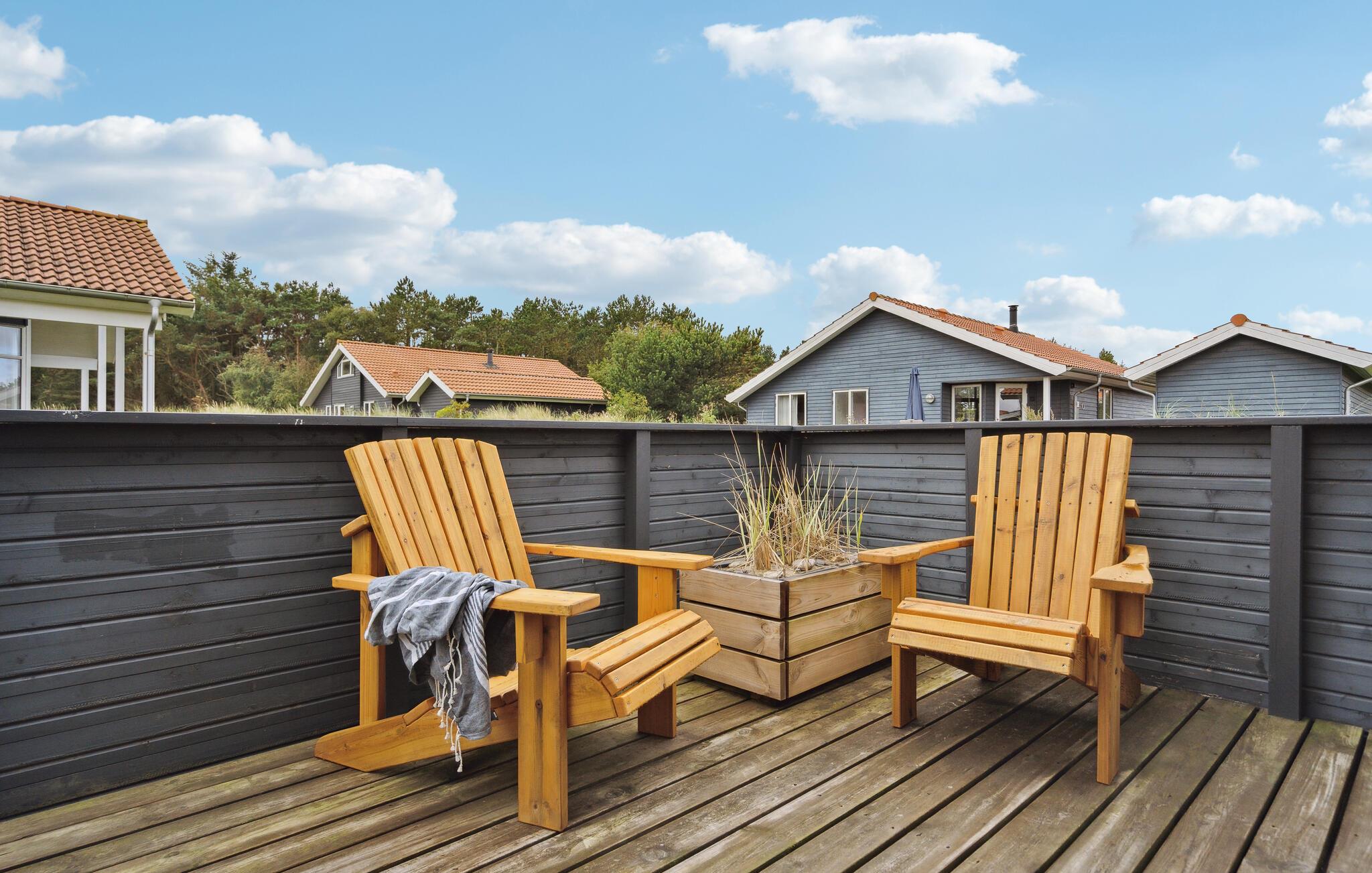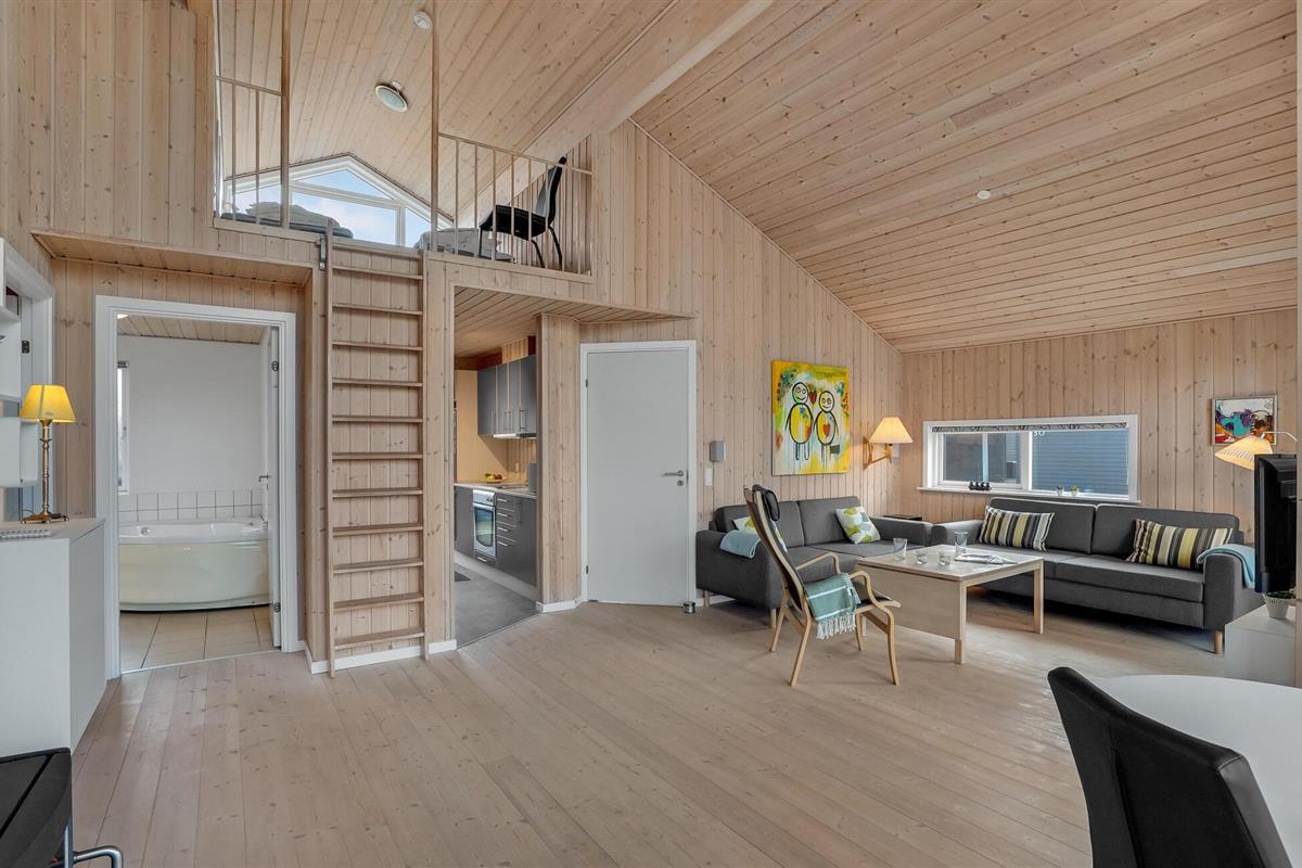 Gezellig vakantiehuis dicht bij de Noordzee en het Nissum Fjord. Hier heeft u alles wat u nodig heeft voor een gezellige vakantie en de omgeving is adembenemend mooi. Naast de carport staat een schuurtje van 9 m². Iedereen zal zich thuis voelen in dit vakantiehuis, het is zeer goed ingericht met 3 slaapkamers, slaapzolder, woonkamer, keuken en badkamer met whirlpool. Er is internet in het huis. Fjand Strand is ideaal voor gezinnen die graag in de natuur zijn. In de omgeving zijn er duinen, fjorden, heide en zee. Er is een boerderijwinkel niet ver van het huis. De cottage nederzetting heeft geasfalteerde wegen met lantaarns, een grote speeltuin en faciliteiten voor volleybal, voetbal en jeu de boules.