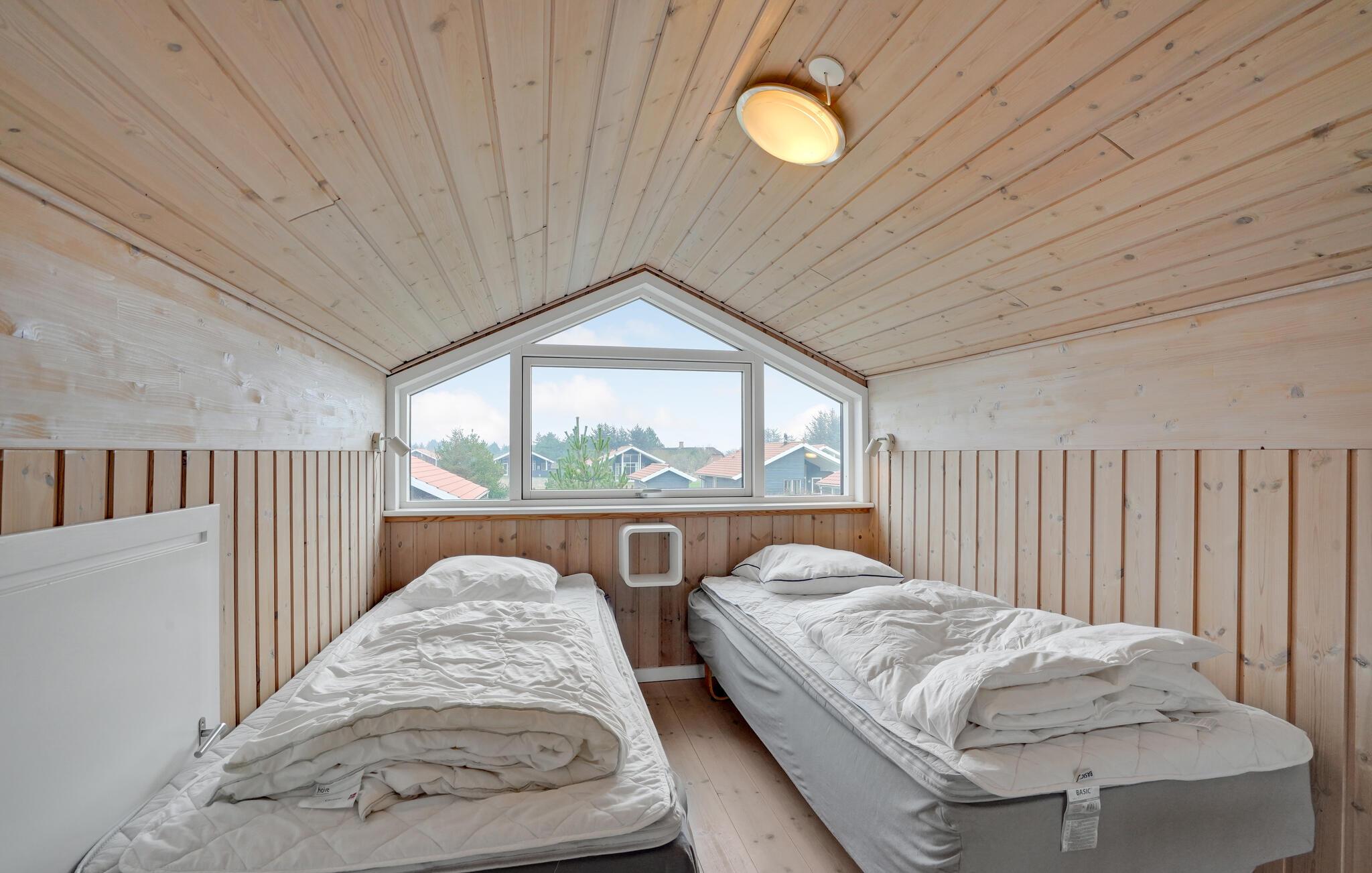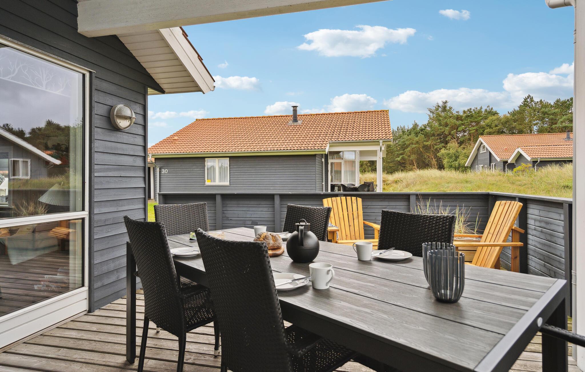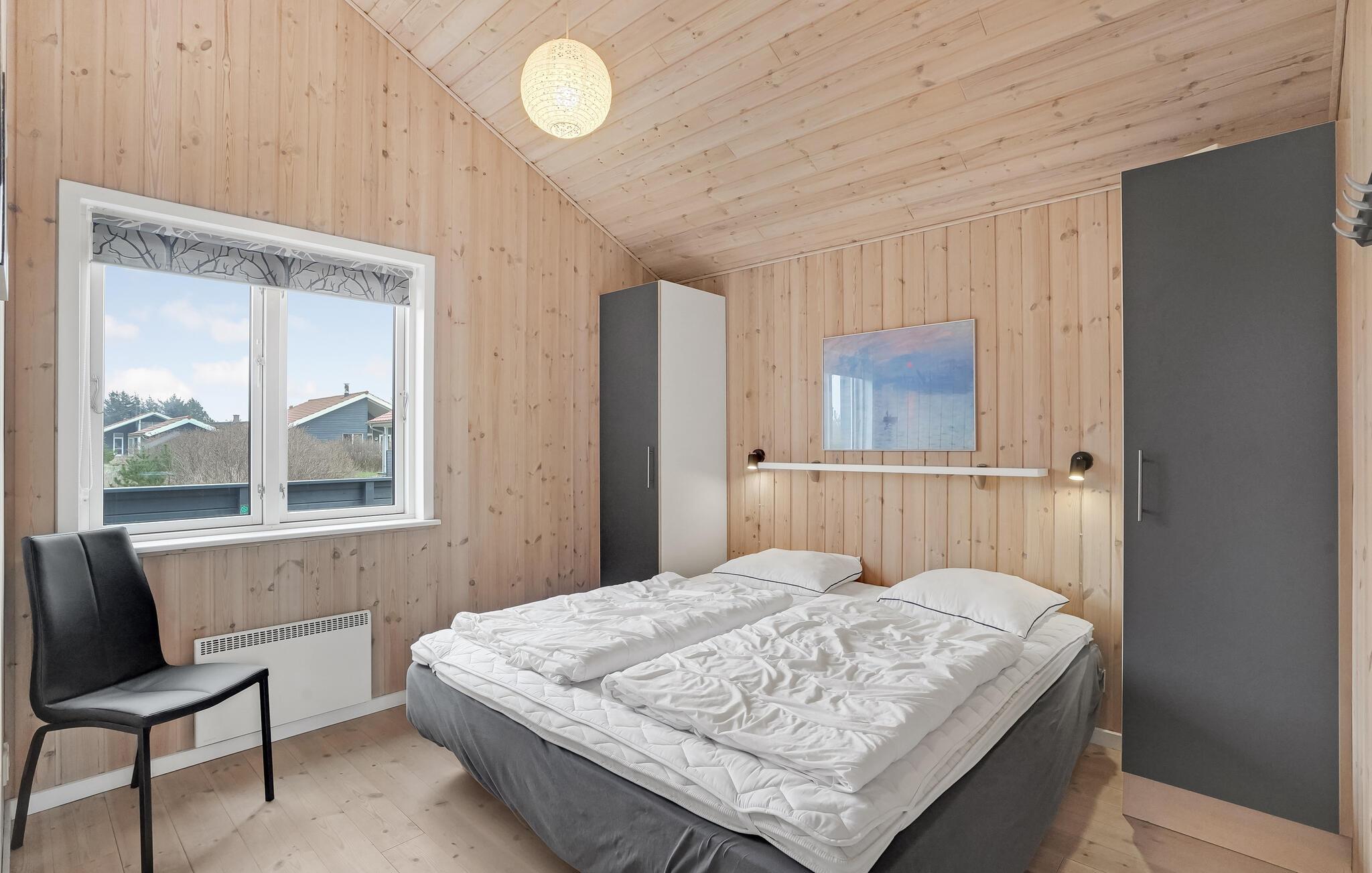 Gezellig vakantiehuis dicht bij de Noordzee en het Nissum Fjord. Hier heeft u alles wat u nodig heeft voor een gezellige vakantie en de omgeving is adembenemend mooi. Naast de carport staat een schuurtje van 9 m². Iedereen zal zich thuis voelen in dit vakantiehuis, het is zeer goed ingericht met 3 slaapkamers, slaapzolder, woonkamer, keuken en badkamer met whirlpool. Er is internet in het huis. Fjand Strand is ideaal voor gezinnen die graag in de natuur zijn. In de omgeving zijn er duinen, fjorden, heide en zee. Er is een boerderijwinkel niet ver van het huis. De cottage nederzetting heeft geasfalteerde wegen met lantaarns, een grote speeltuin en faciliteiten voor volleybal, voetbal en jeu de boules.