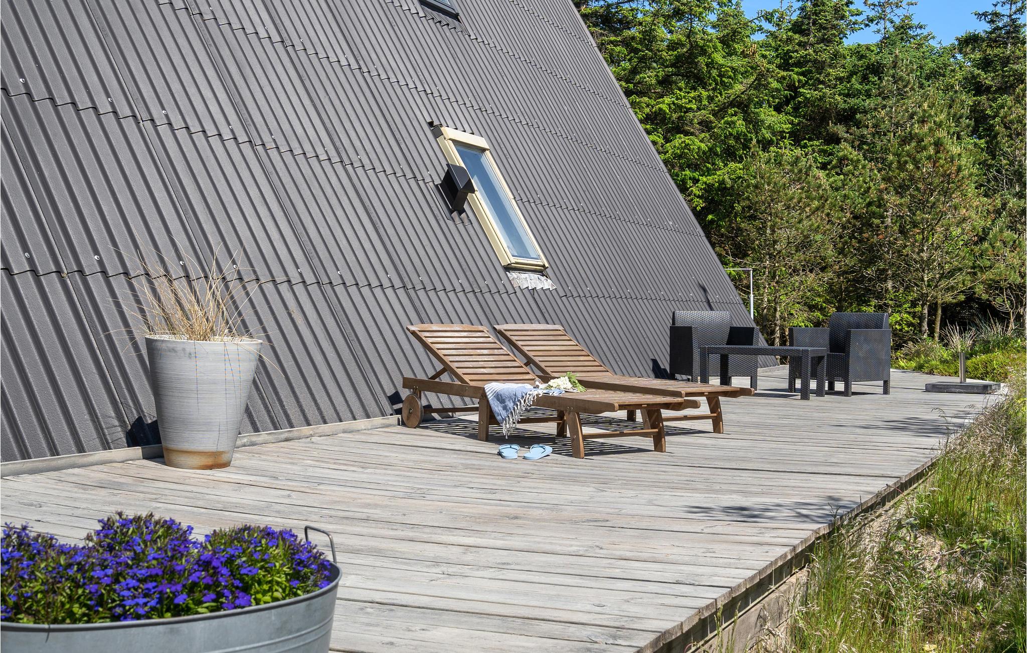 Dit vakantiehuis in Fjand ligt in een rustige omgeving tussen Husby en Thorsminde. Vanuit de woonkamer/keuken is er een ladder naar de zolder met twee bedden. Buiten vindt u een terras dat het best beschermd is tegen ongewenst uitzicht, omdat het gedeeltelijk wordt omlijst door struiken. Fjand ligt dicht bij de Noordzee, het Nissum Fjord, bos en heide. Het kleine dorpje Helmklink Havn ligt op 2,5 afstand, een haven voor lokale vissers en met een speeltuin. Overigens heeft dit gebied verschillende bosspeeltuinen, wandelpaden, fietspaden, goede visplekken en boerderijwinkels. Beleef het oude vissersdorp Thorsminde en daarin het St. George jetsam museum. Hier kunt u een mooie speeltuin ontdekken en vissen vanaf de pier. Søndervig is in de zomer een levendig vakantieoord met een goed aanbod aan winkels en restaurants. Voor een mooi uitzicht vanaf de top bezoekt u de vuurtoren Lyngvig Fyr, die uitkijkt over de zee en de Ringkøbing Fjord. Als u toch bezig bent, bezoek dan het Slakhuis van Thyborøn en het Zeevaartmuseum. Søndervig is in de zomer een levendige badplaats met een goed aanbod aan winkels en eetgelegenheden. Bowling, minigolf, fietsverhuur, kruidenierswinkel en speeltuinen zijn beschikbaar in het dorp. Internationale kunstenaars maken elk jaar zandsculpturen op het strand.