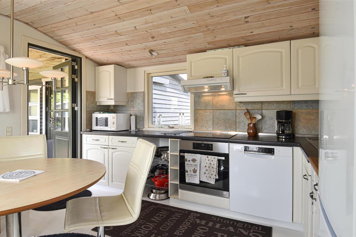Het huis is prachtig ingericht en bestaat uit een hoofdhuis en een bijgebouw. In het hoofdhuis is er een lichte keuken, een woonkamer met houtkachel, een tv en comfortabel meubilair. Vanuit de woonkamer zijn er een paar treden naar beneden naar een open kamer met een slaapbank voor 2 personen. Vanuit deze kamer heeft u toegang tot een badkamer met douche. De slaapkamer met het tweepersoonsbed heeft toegang tot een overdekt terras. De deur naar deze slaapkamer is erg laag.