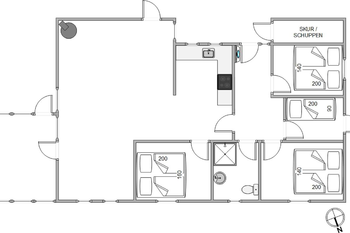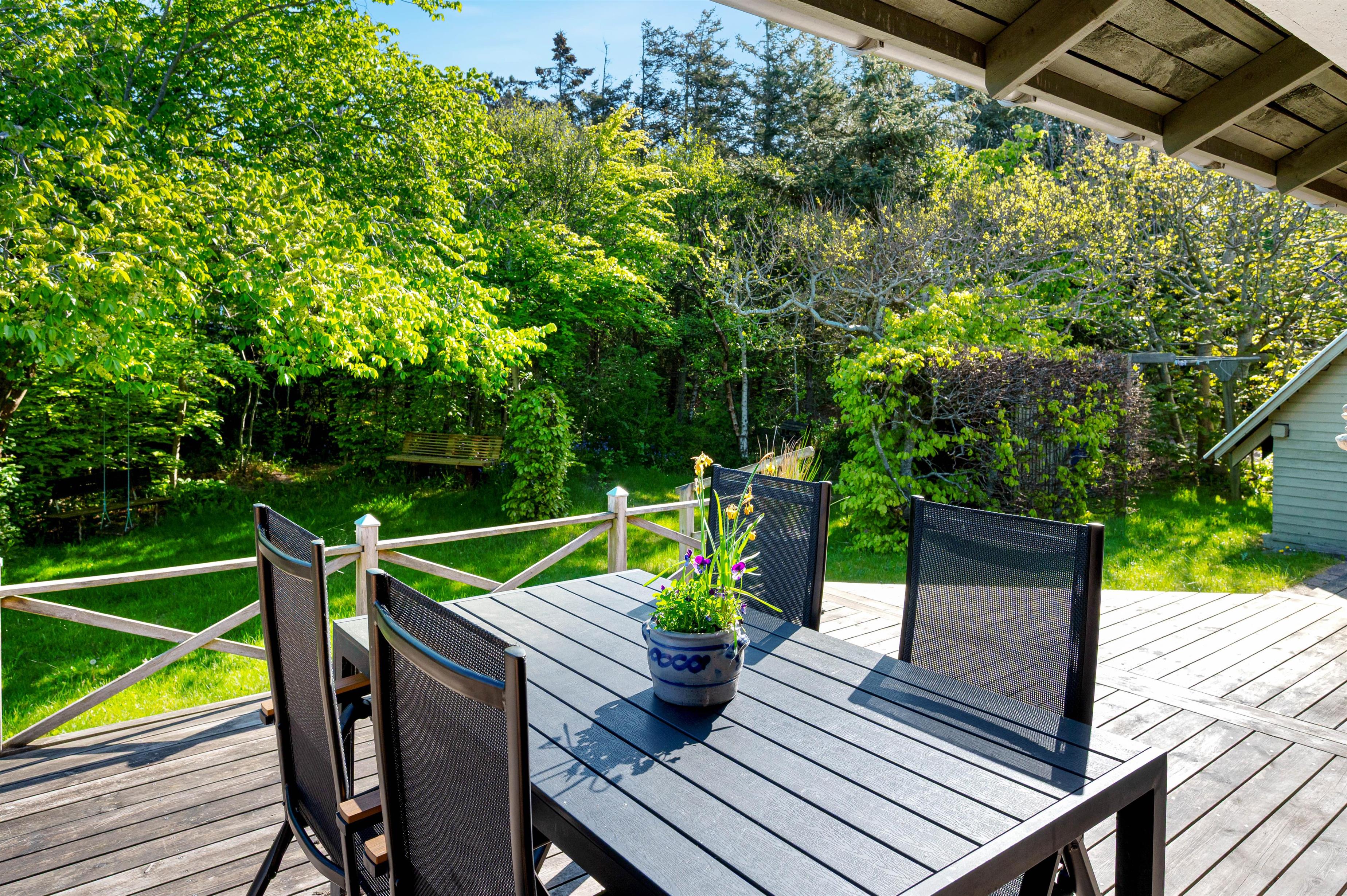 Around the house, you'll find multiple terrace areas, offering sheltered spots regardless of wind and weather conditions. Make yourself comfortable on the sun loungers or enjoy a delicious barbecue while savouring the fresh air and peaceful location here at Hagevej 191. Part of the terrace is completely fenced, ensuring your four-legged friend can't wander off alone.
