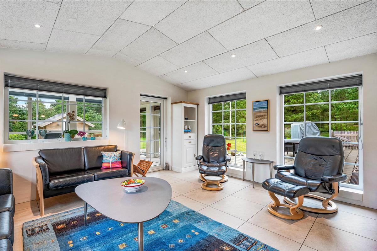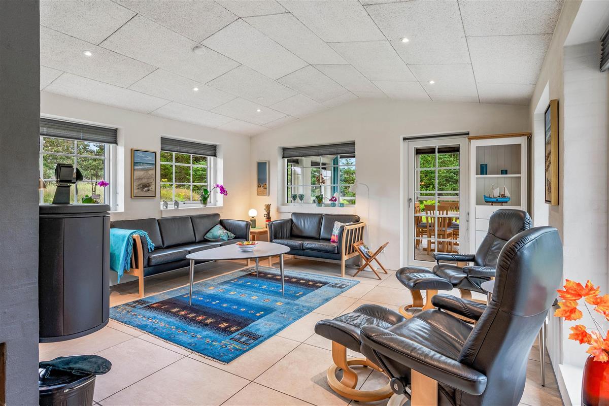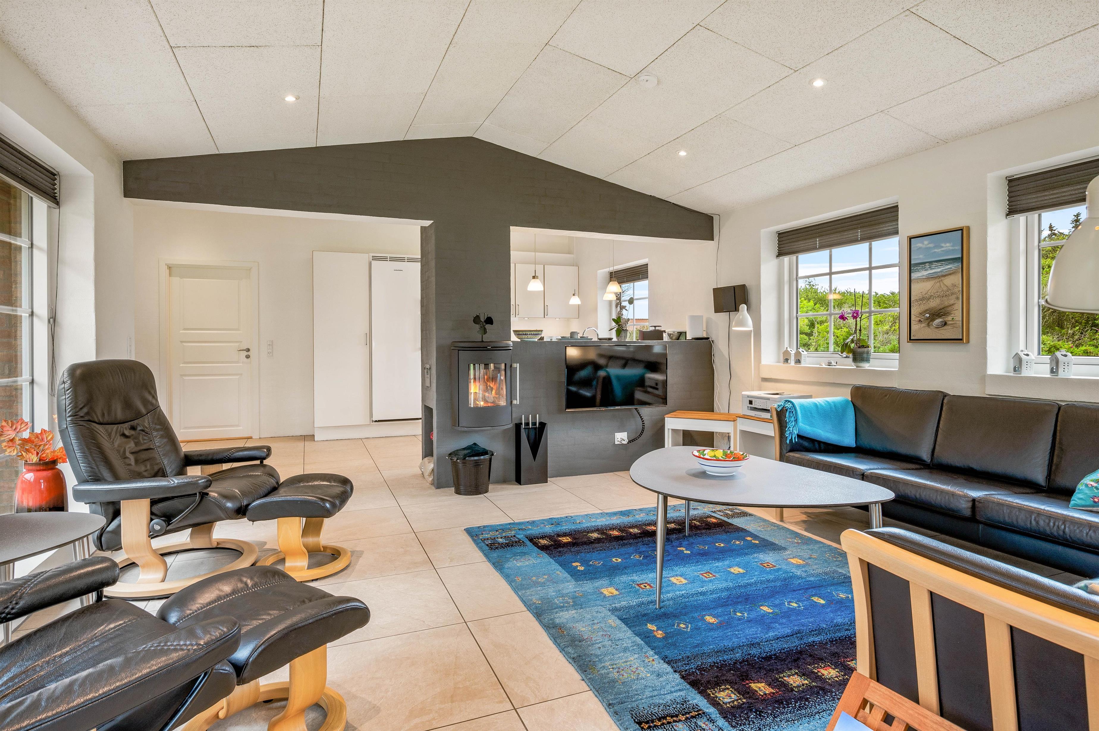 Upon entering the holiday home at Sdr. Fjandvej 10, you're welcomed by a bright and cosy environment. The heart of the holiday home is the large L-shaped living area, combining kitchen, living room and dining space. Here you can cook together, play games or watch a good film.