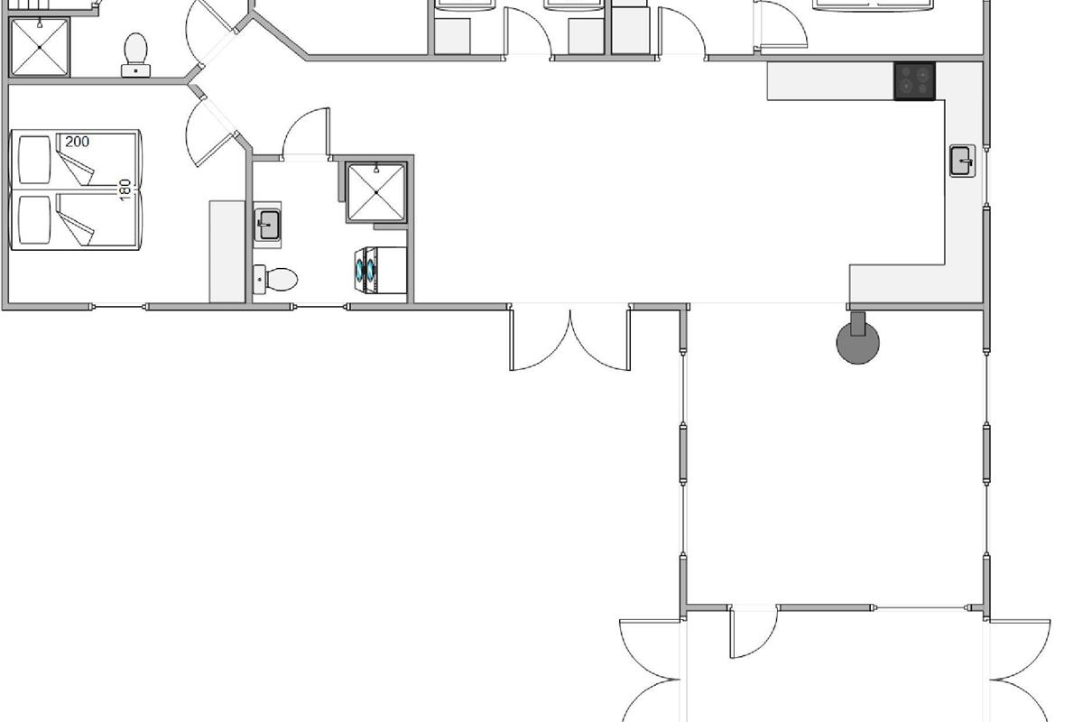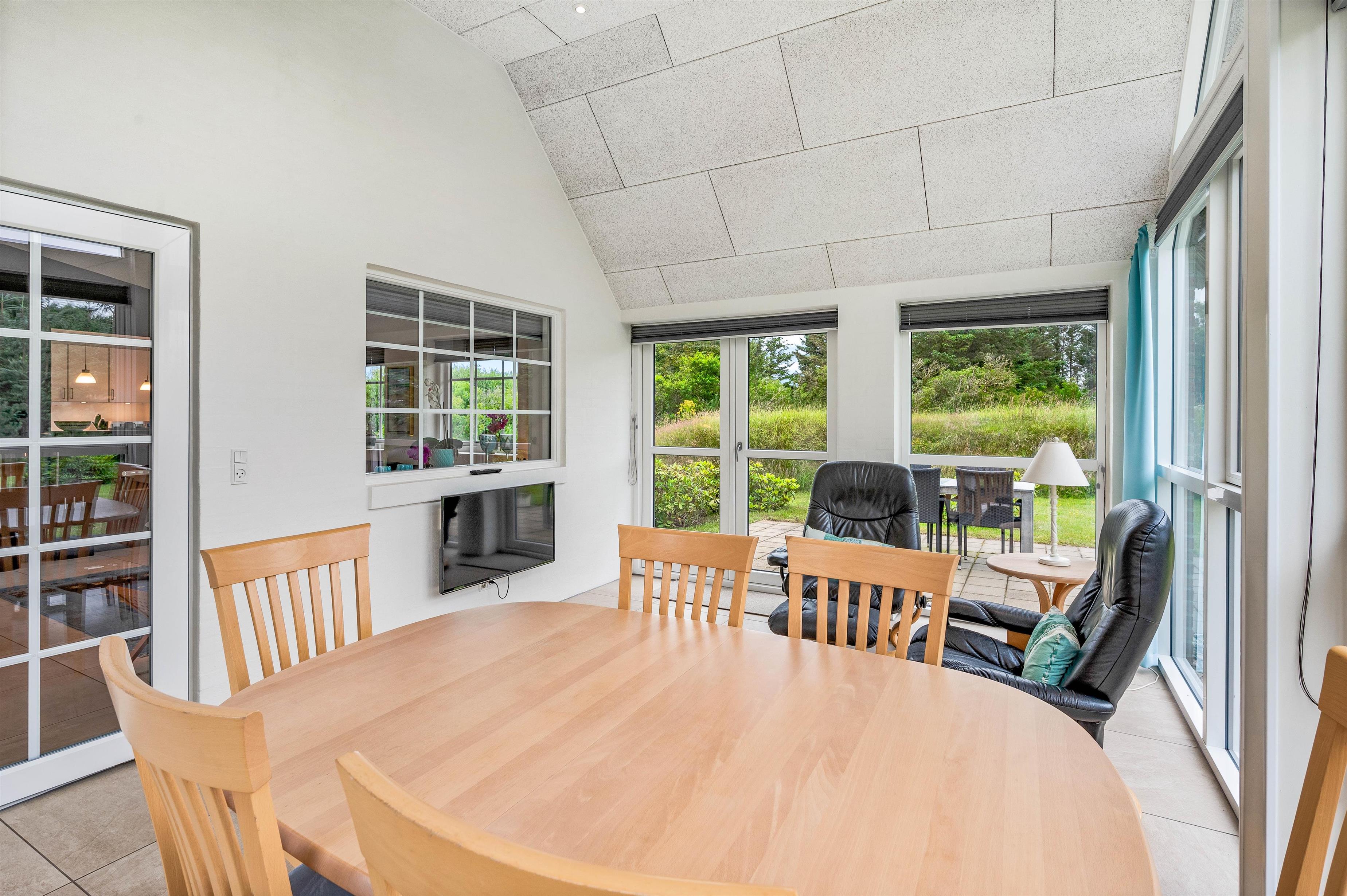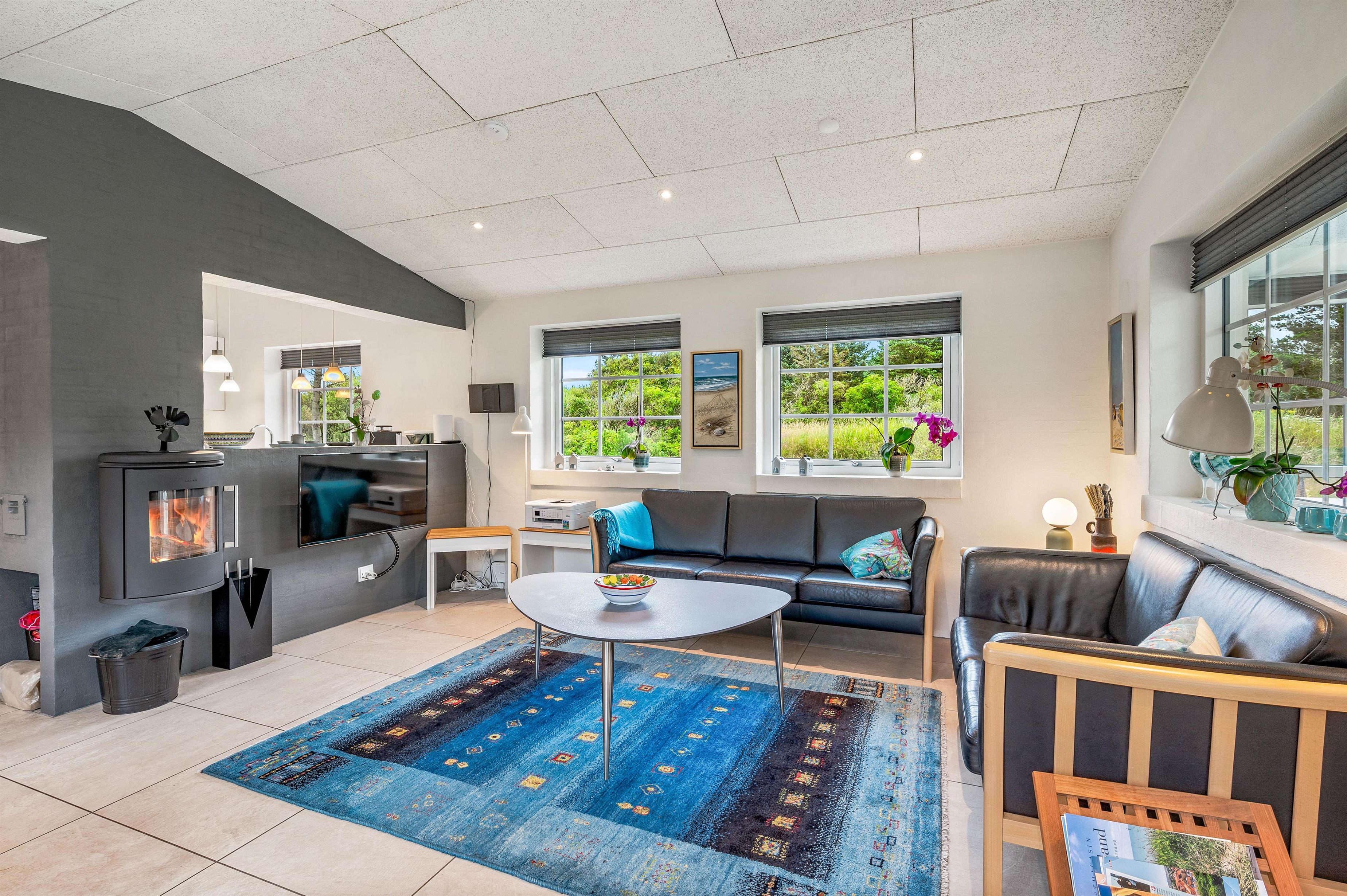Upon entering the holiday home at Sdr. Fjandvej 10, you're welcomed by a bright and cosy environment. The heart of the holiday home is the large L-shaped living area, combining kitchen, living room and dining space. Here you can cook together, play games or watch a good film.