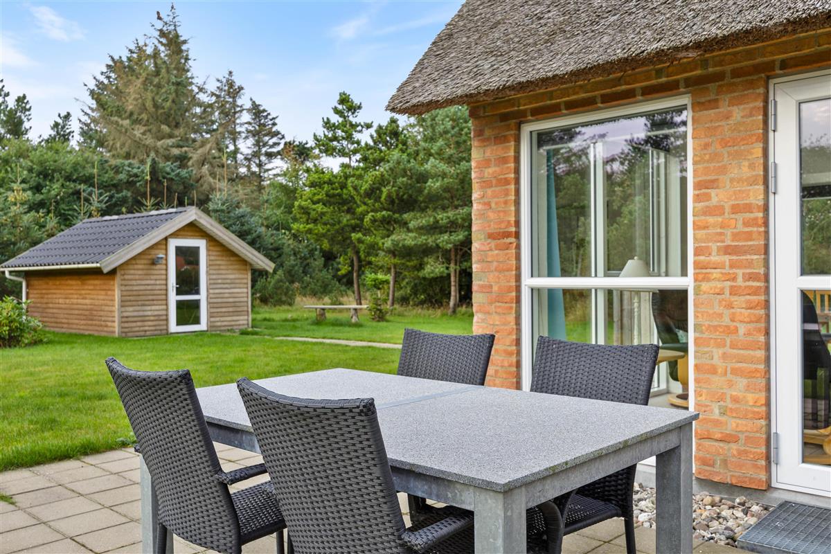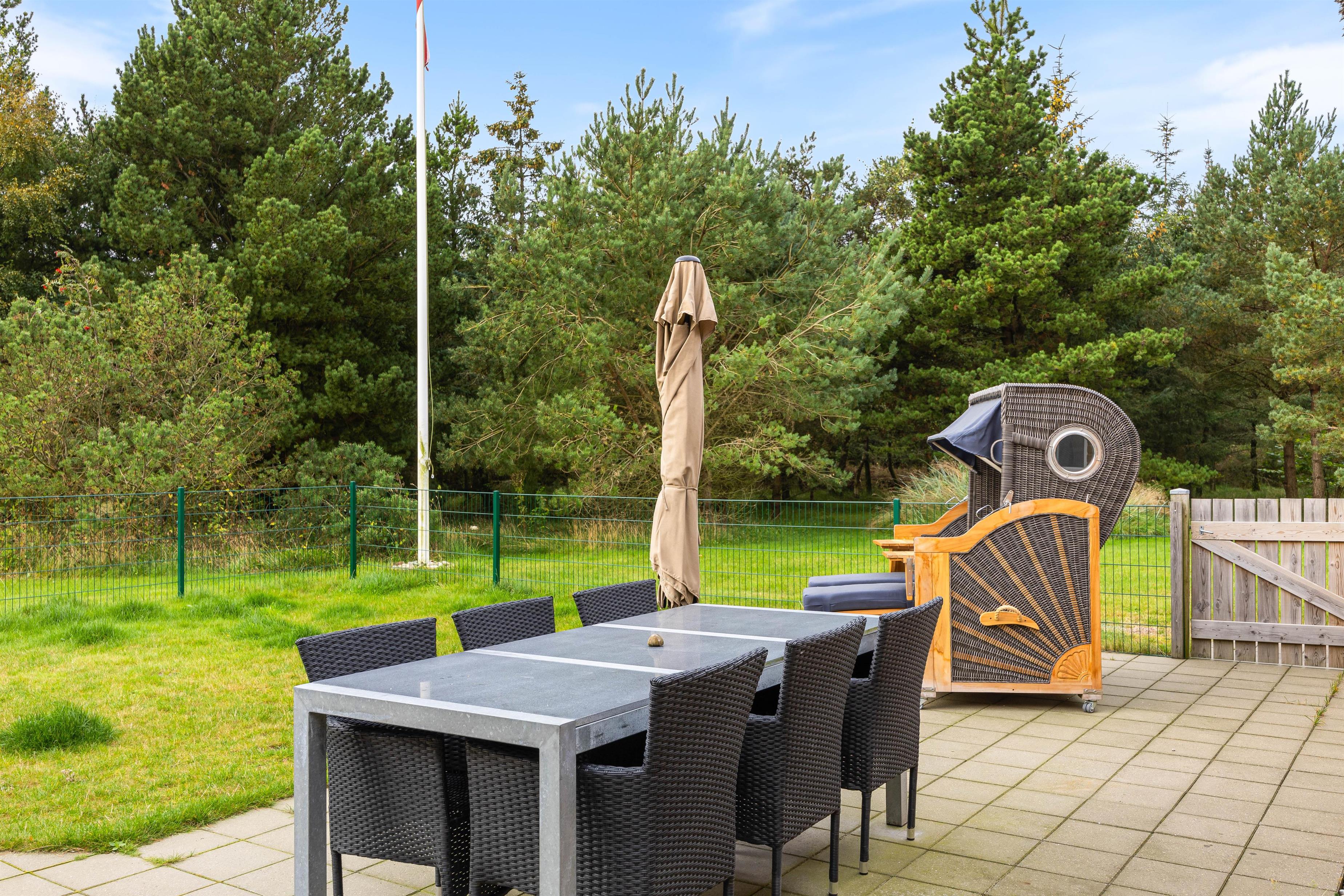The holiday home at Sdr. Fjandvej 10 sits on a large plot with beautiful south and east-facing terraces. The east-facing terrace is open, perfect for enjoying your first coffee of the day while watching the sunrise. The south-facing terrace is fenced, allowing you to relax in the sun with a cold drink without worrying about your dog or children wandering off. The holiday home also includes a gas barbecue for ending an eventful day with an outdoor meal.