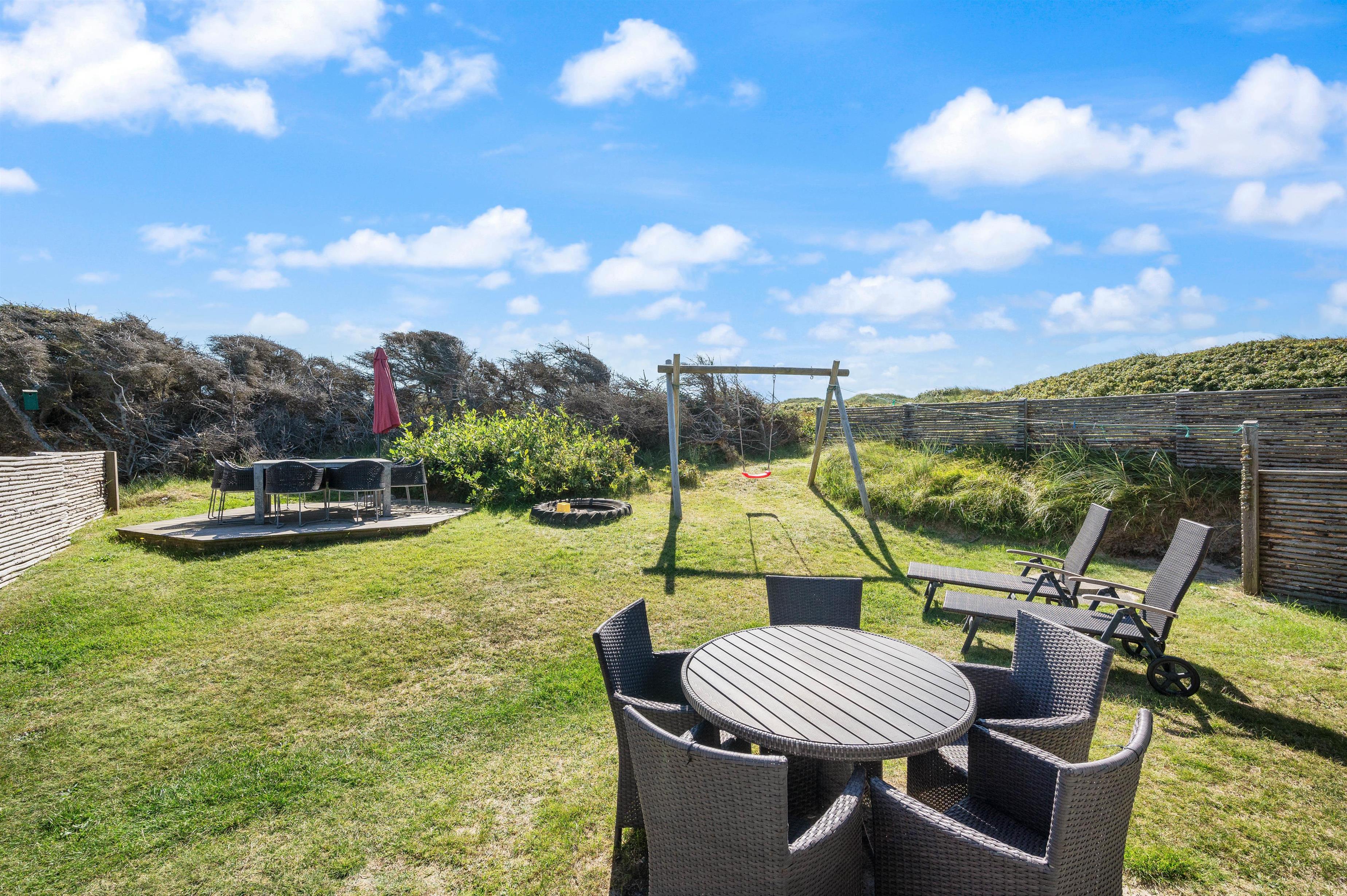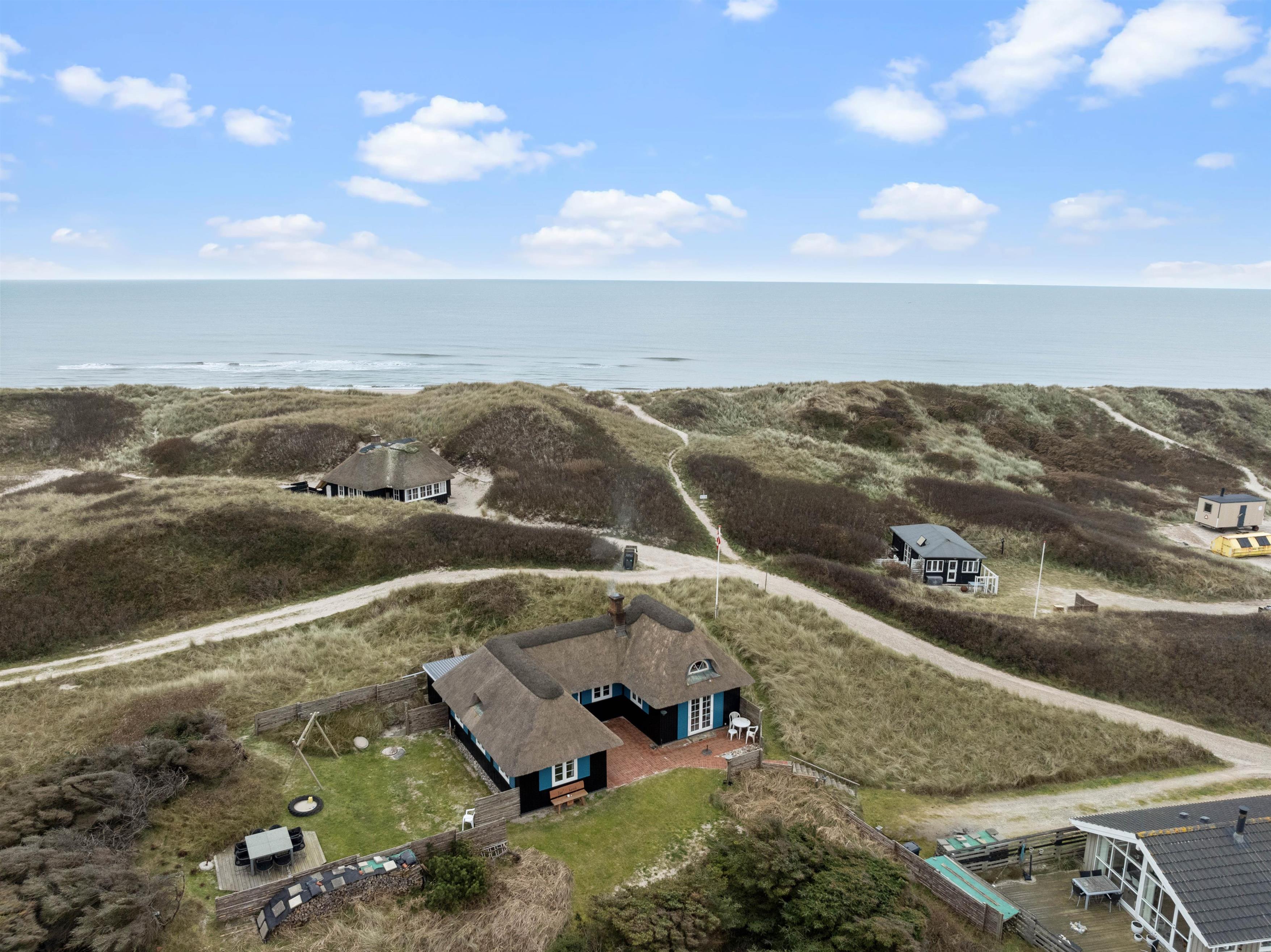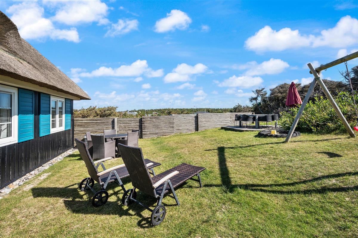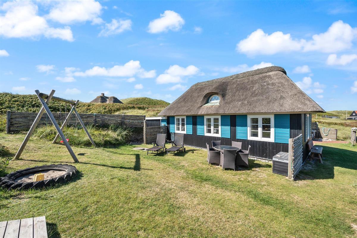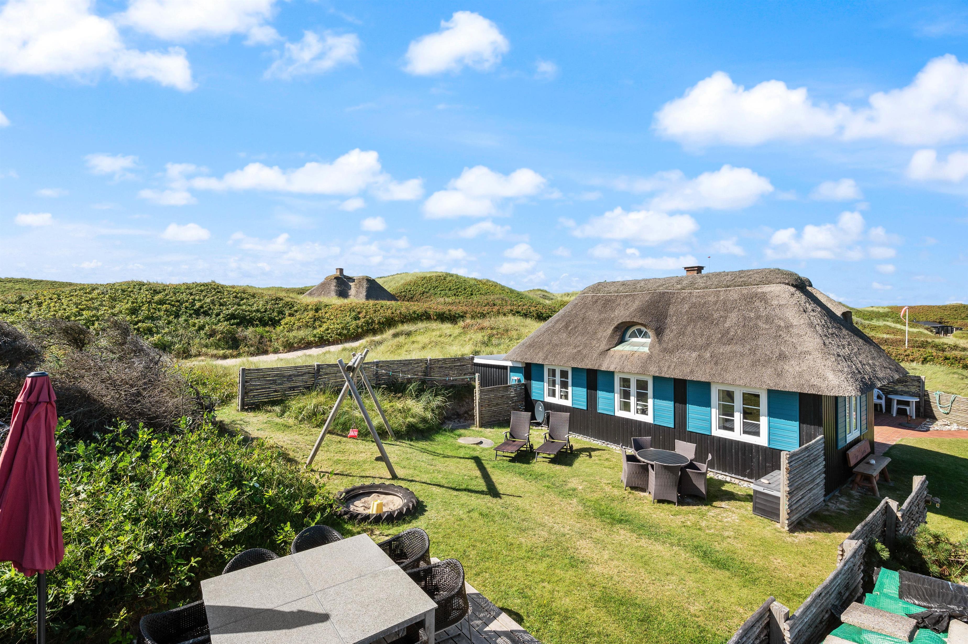 The holiday home at Bjerghuse 151 in Fjand sits on approximately 2,000 square metres of dune grounds, offering children plenty of space to play while you relax in the garden furniture on the terrace. In the evening, you can unwind on the terrace with a cold drink after an eventful day.