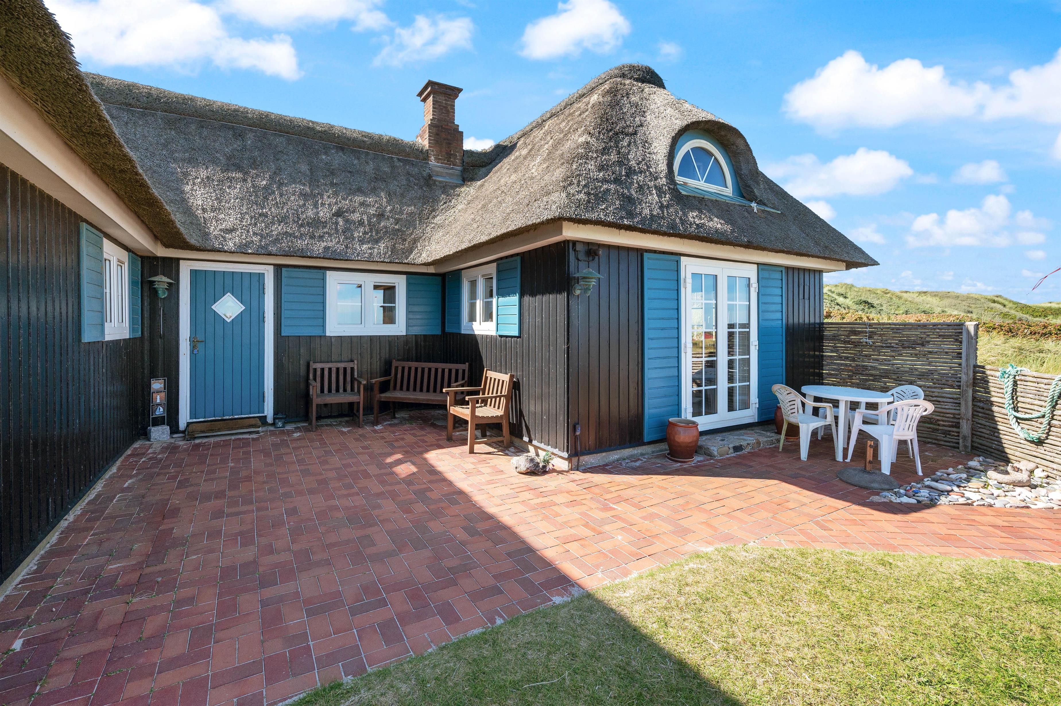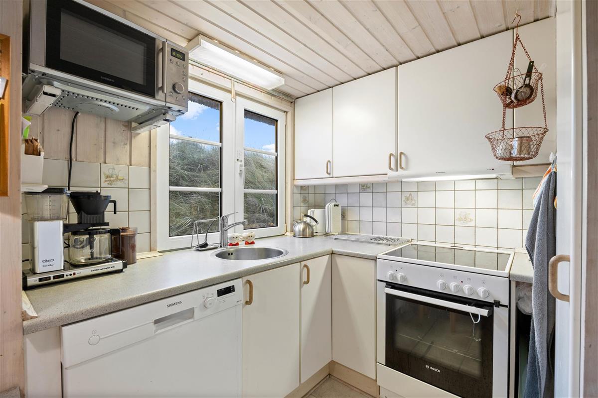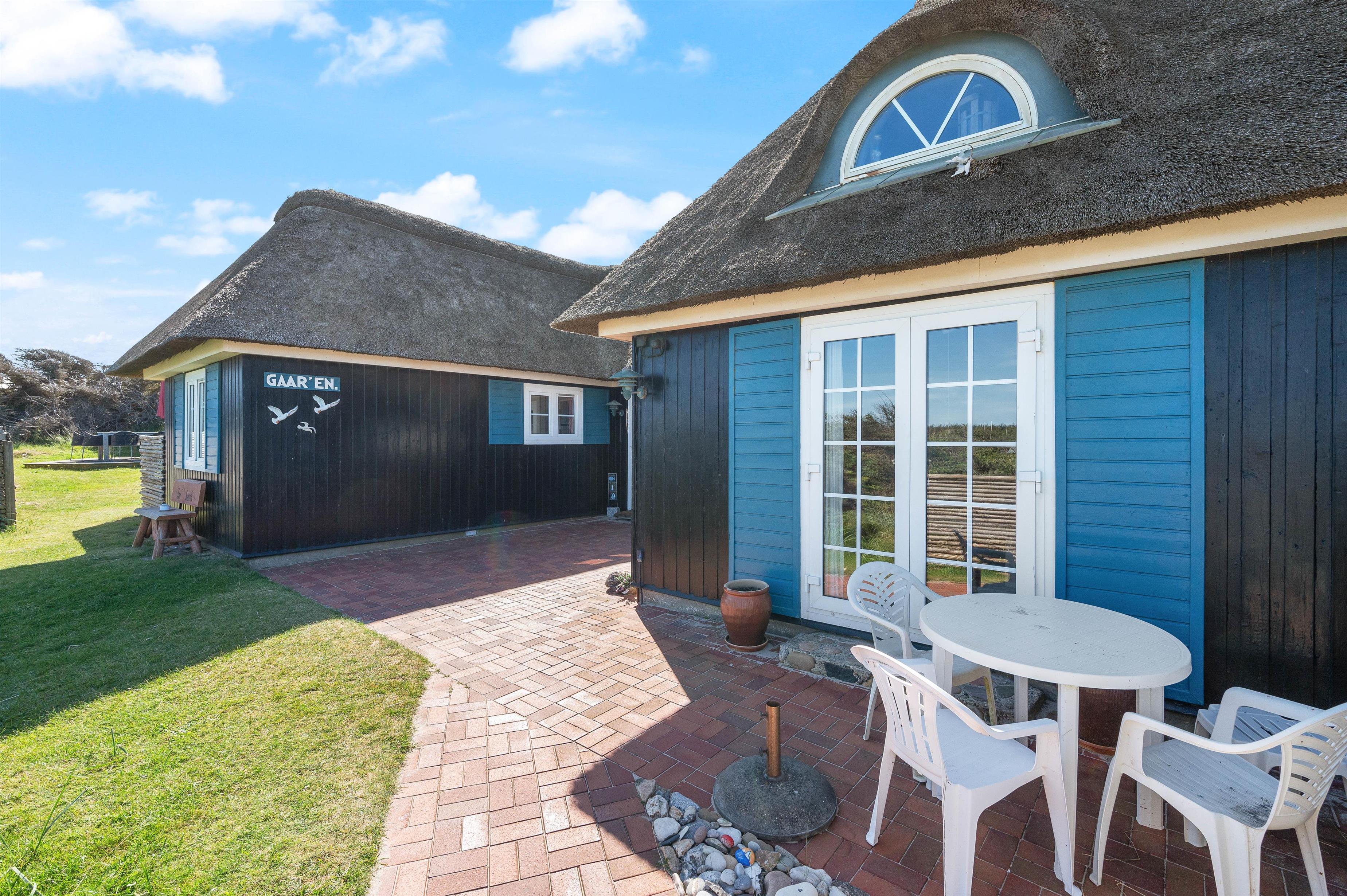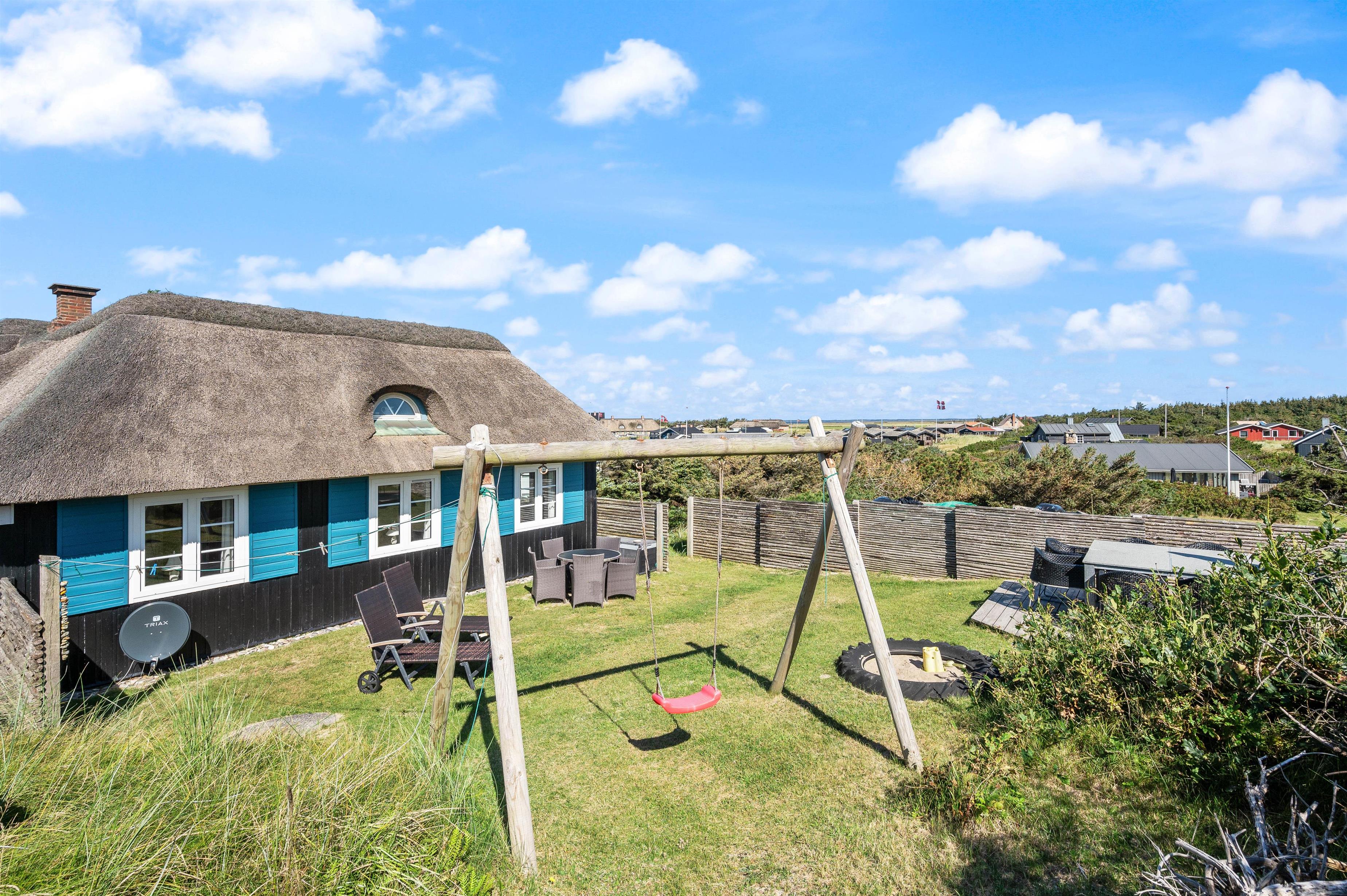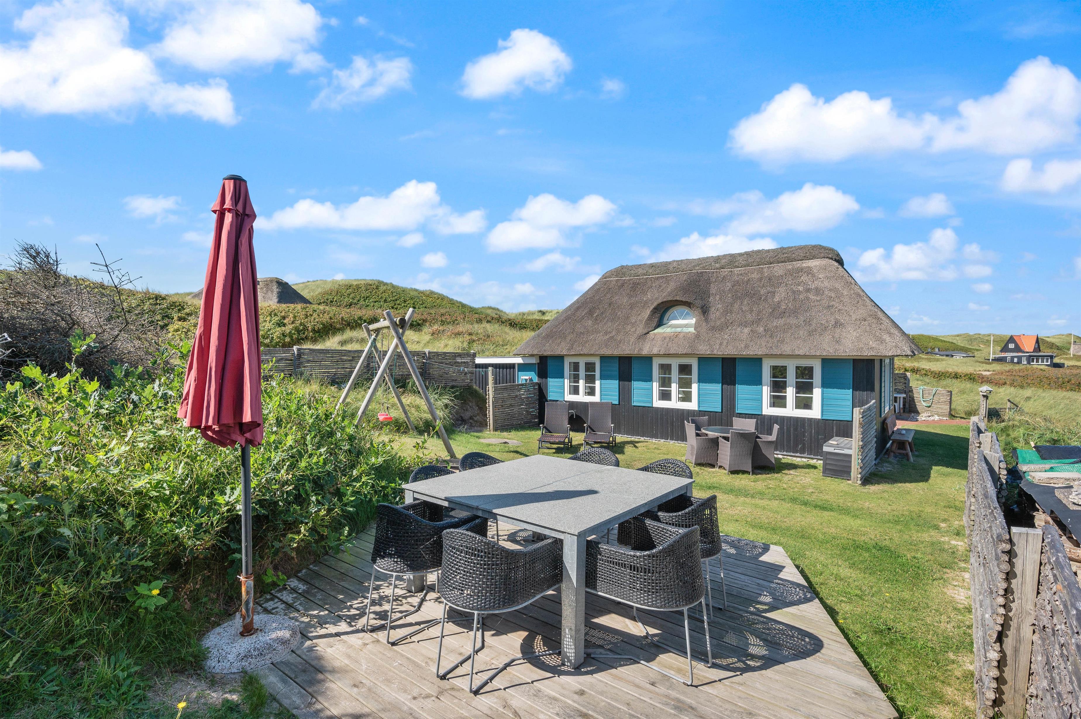 The holiday home at Bjerghuse 151 in Fjand sits on approximately 2,000 square metres of dune grounds, offering children plenty of space to play while you relax in the garden furniture on the terrace. In the evening, you can unwind on the terrace with a cold drink after an eventful day.