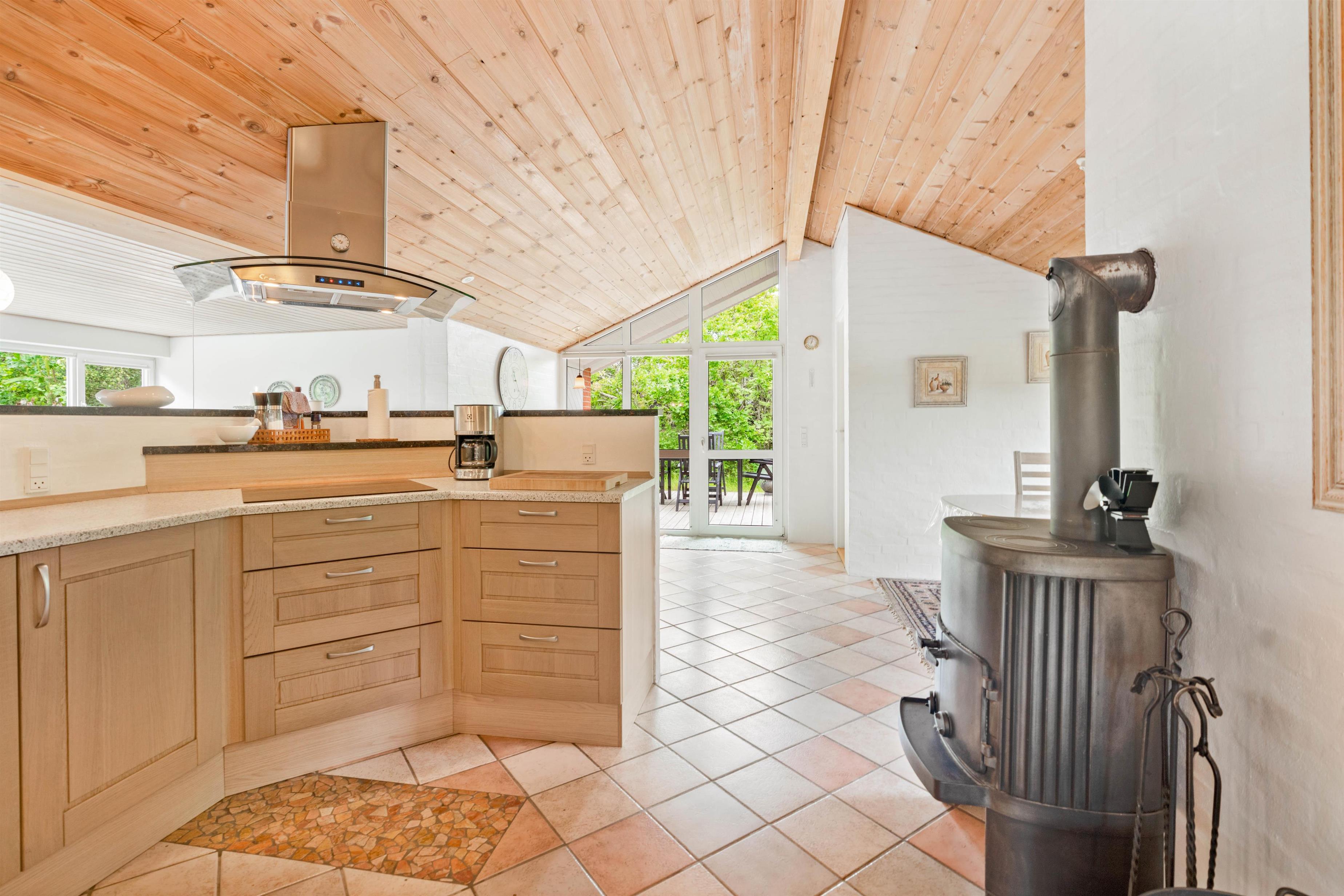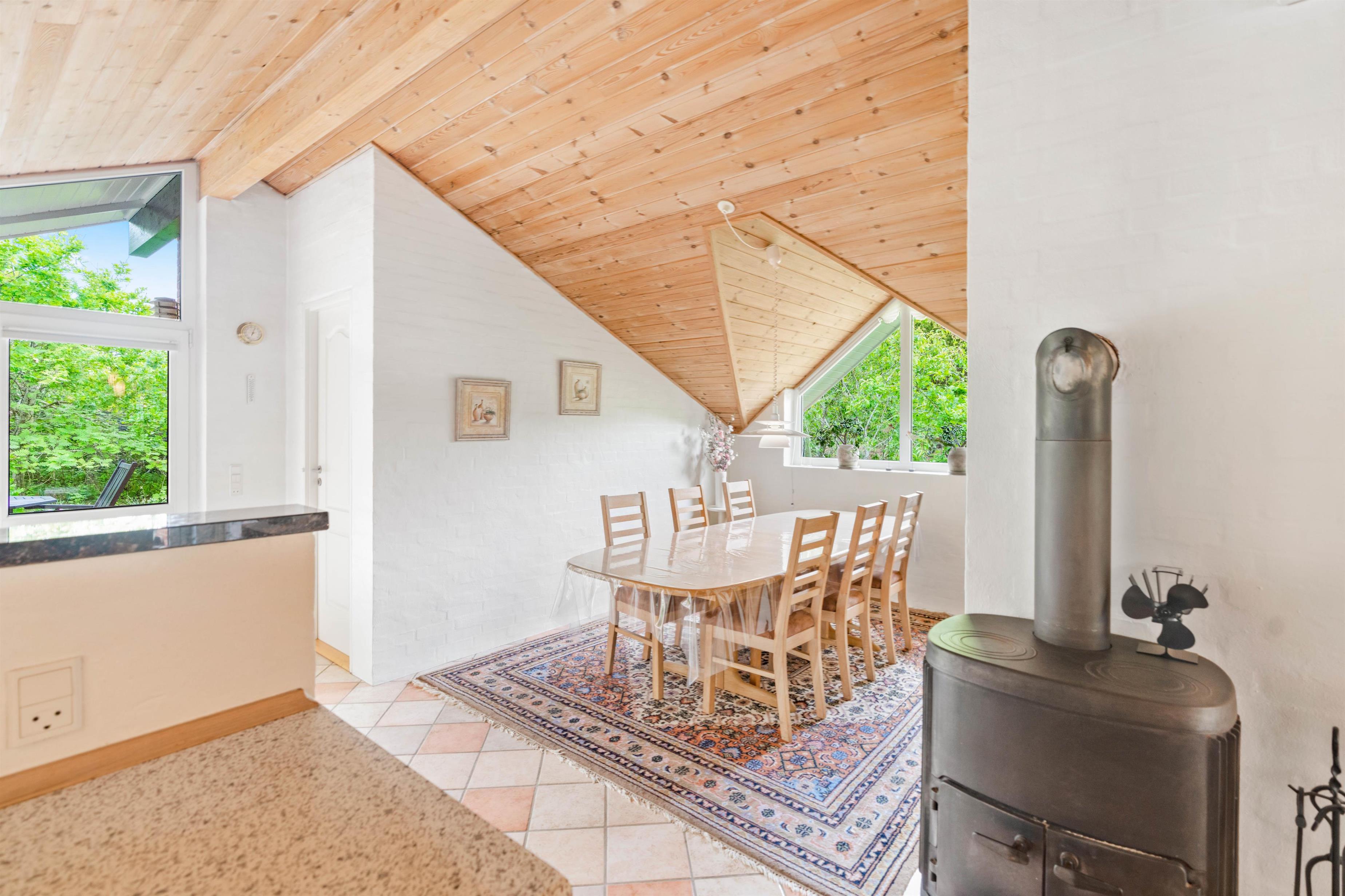 The holiday home at Hagevej 115 in Fjand sits on a plot of over 1,000 square metres and offers more than 100 square metres of living space. Everything you need is provided, from a well-equipped kitchen with dishwasher to a cosy living room with fireplace, plus convenient amenities including a washing machine and tumble dryer.