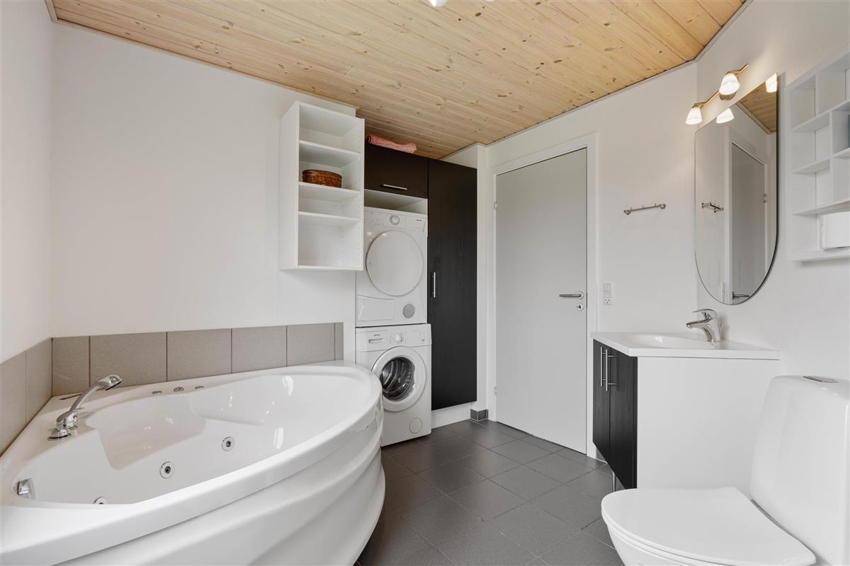 The bathroom, which features underfloor heating, includes a whirlpool. Fill it up and look forward to relaxing moments in the warm, bubbling water. It's the perfect place to unwind and let your thoughts drift away.