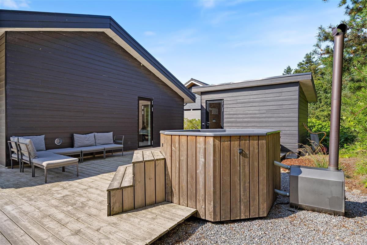 This beautiful and modern vacation home awaits you at Hagevej 15 in Fjand. Built in 2021, the vacation home is in a quiet location and offers 99 m2 of space for up to 6 people and 2 pets, ideal for a vacation with family or friends. In addition to the stylish interior, the vacation home is equipped with a fireplace, whirlpool, outdoor sauna and other amenities. There is plenty to discover in and around Fjand.