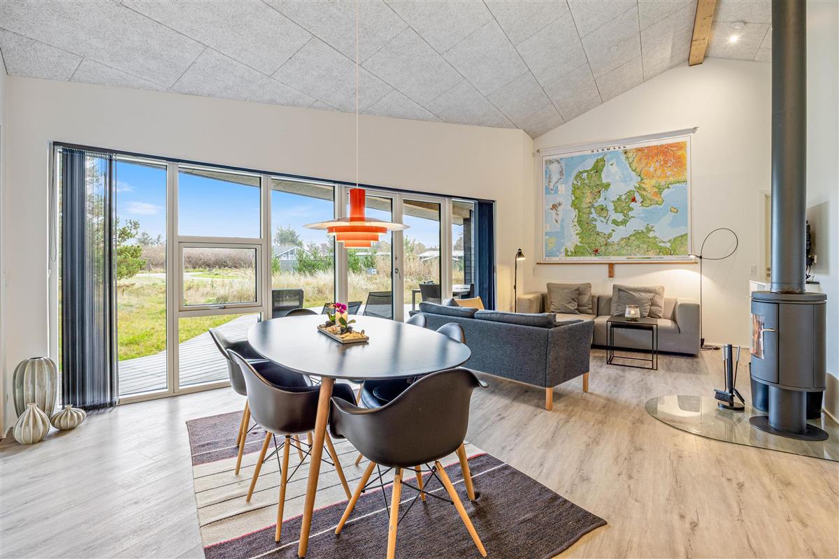 The vacation home in Fjand is very suitable for families with children and pets. There is plenty of space for the little ones to play. A visit to the nearby gnome forest is a great experience for the children. If you take your dogs with you on vacation, you can go for many long walks on the beach or in the forest. The seemingly endless white North Sea beach is 1400 meters from the vacation home and the nearest shops are 3000 meters away in Sønder Nissum. The Nissum Fjord is also not far away and the beautiful harbor town of Thorsminde is not only a paradise for fisher.