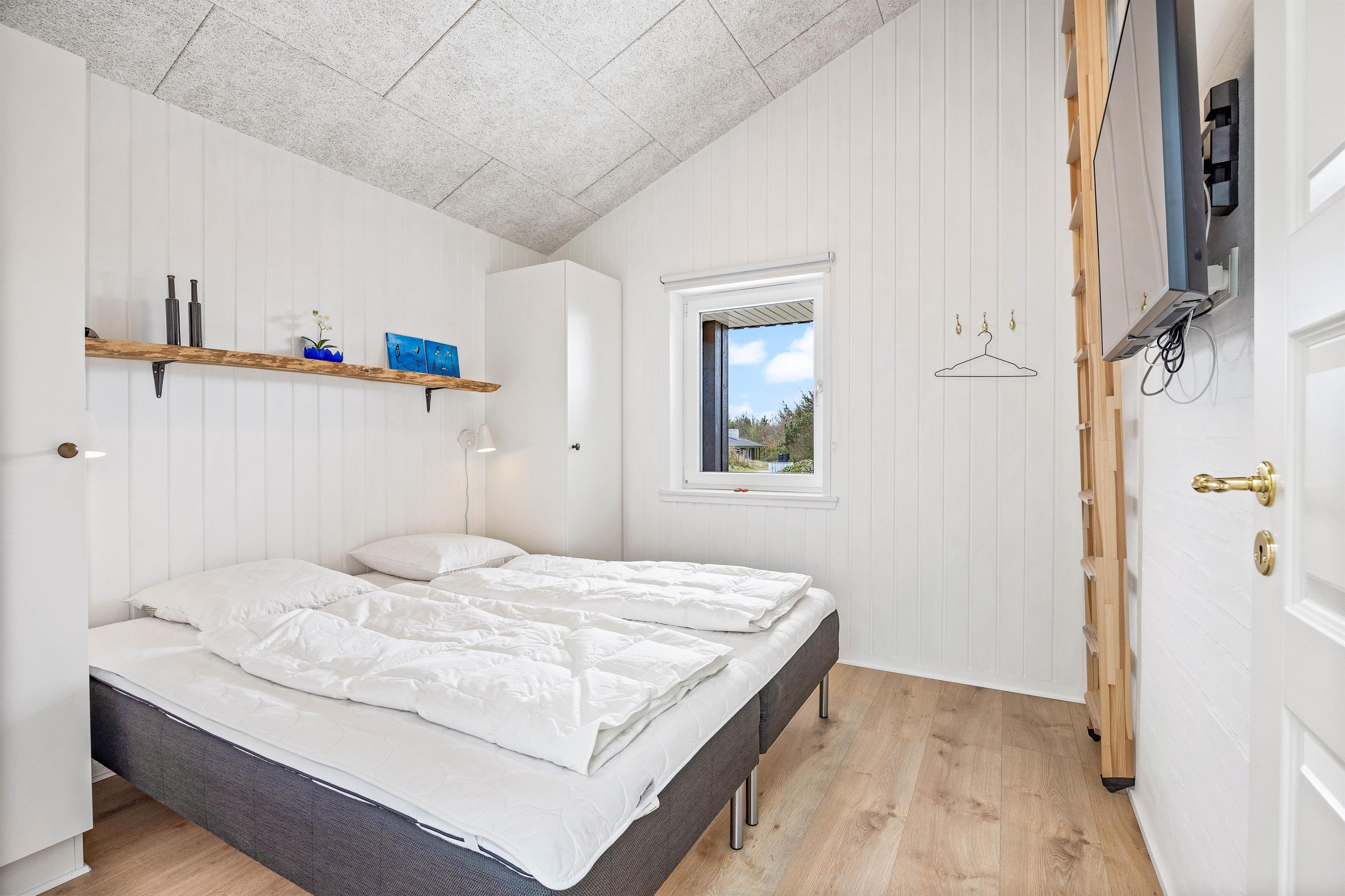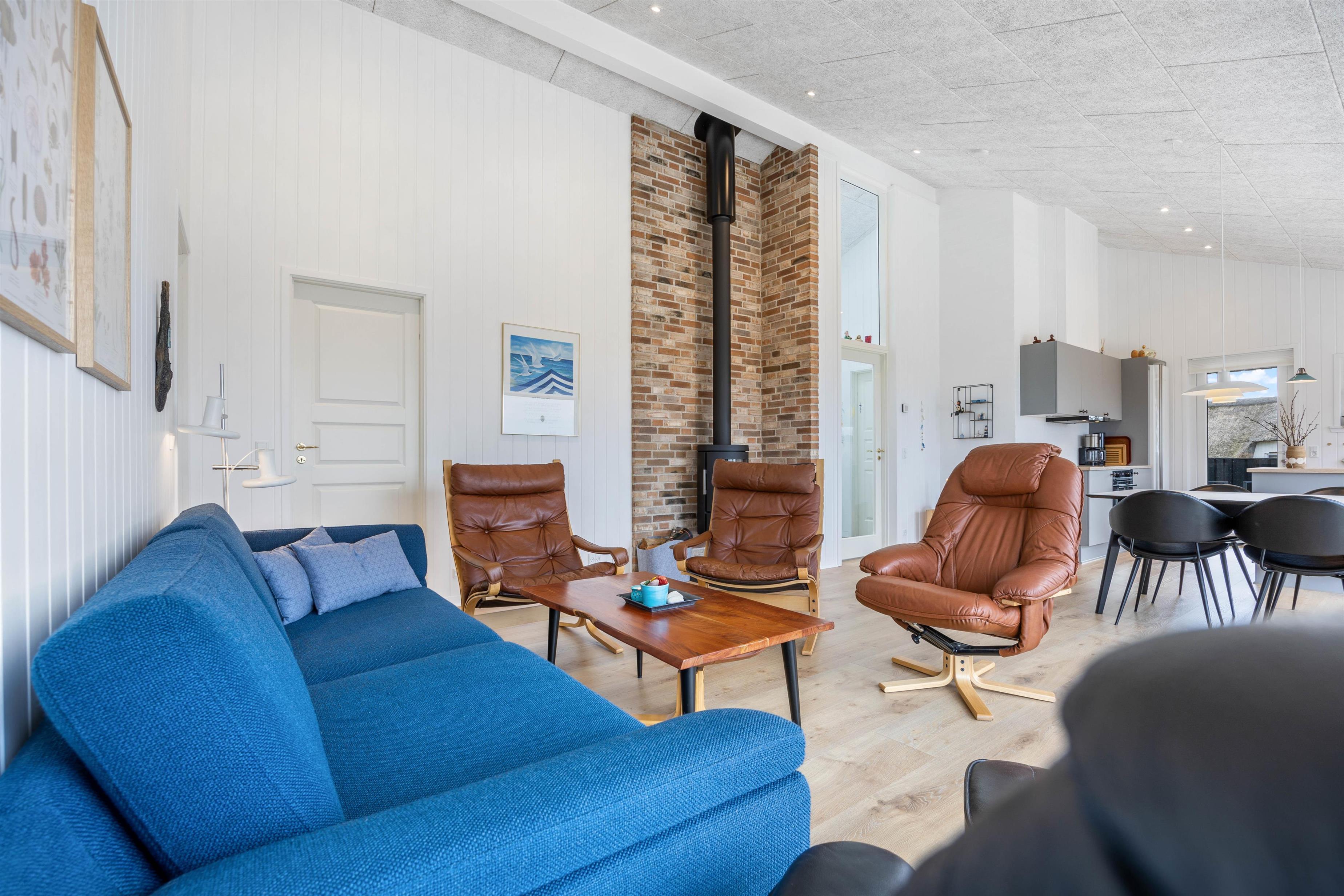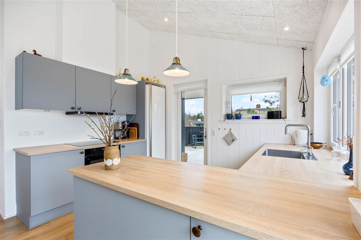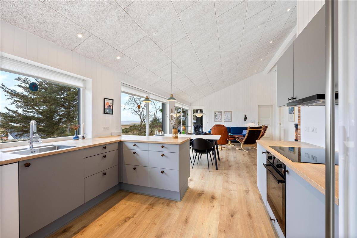 Built in 2022, this holiday home welcomes you with its bright and modern atmosphere. The heart of the holiday home is the spacious living area, which combines the kitchen with the dining area and living room. Here you can cook together, play games or simply enjoy the panoramic views of Nissum Fjord. There's plenty of storage space for your provisions with a separate freezer in the shed.