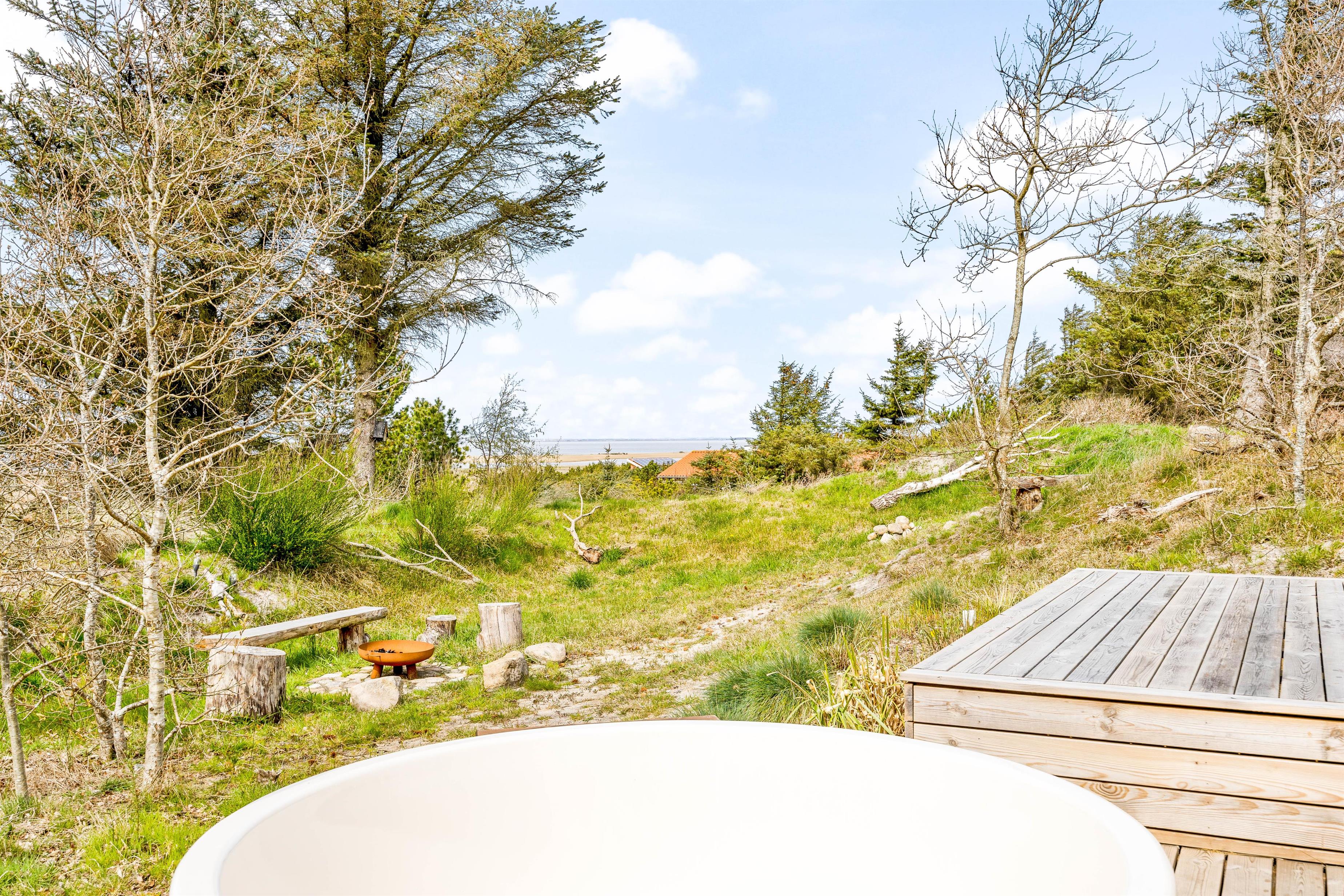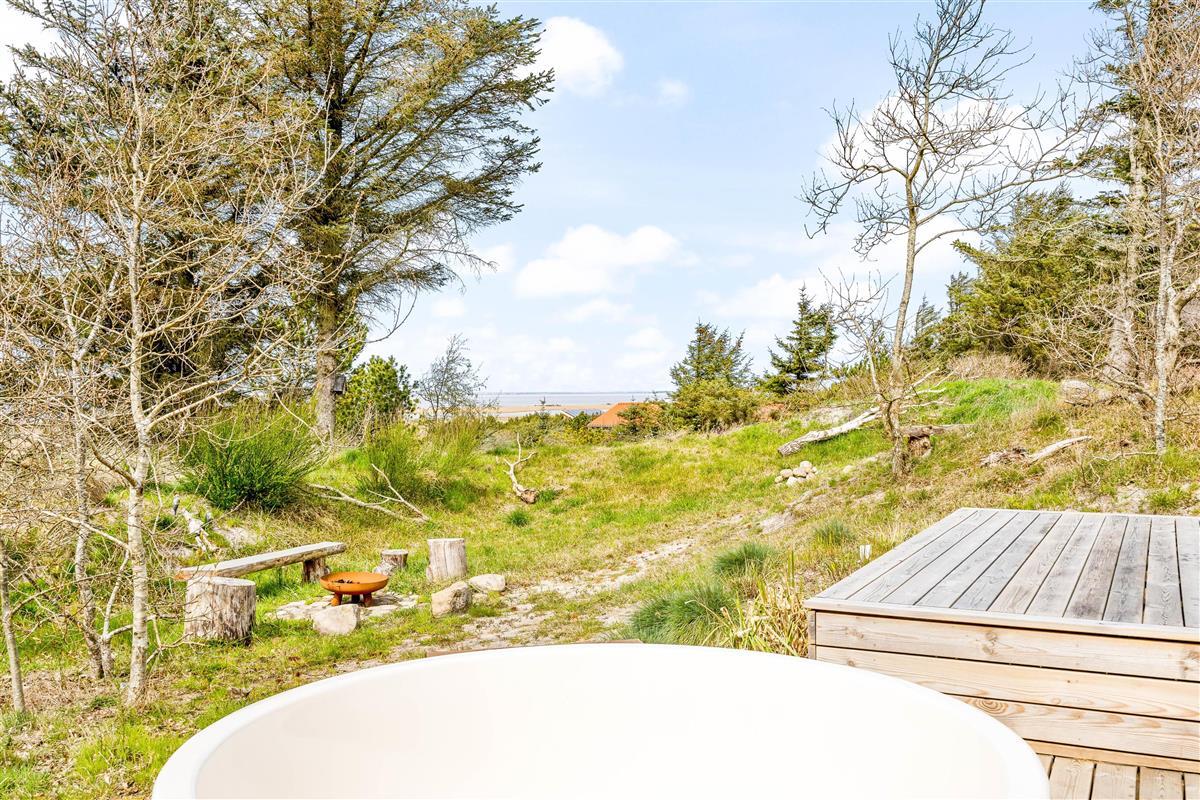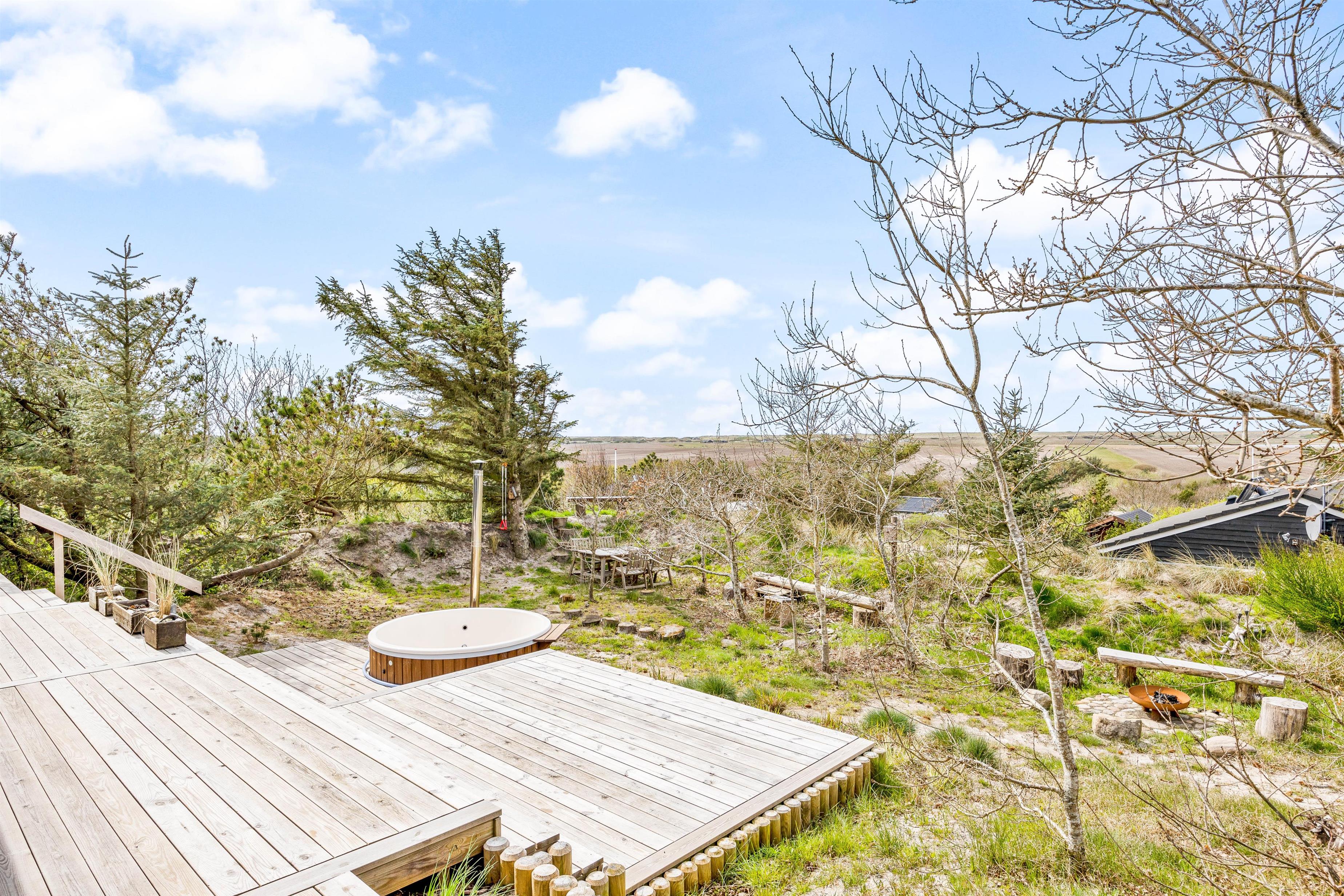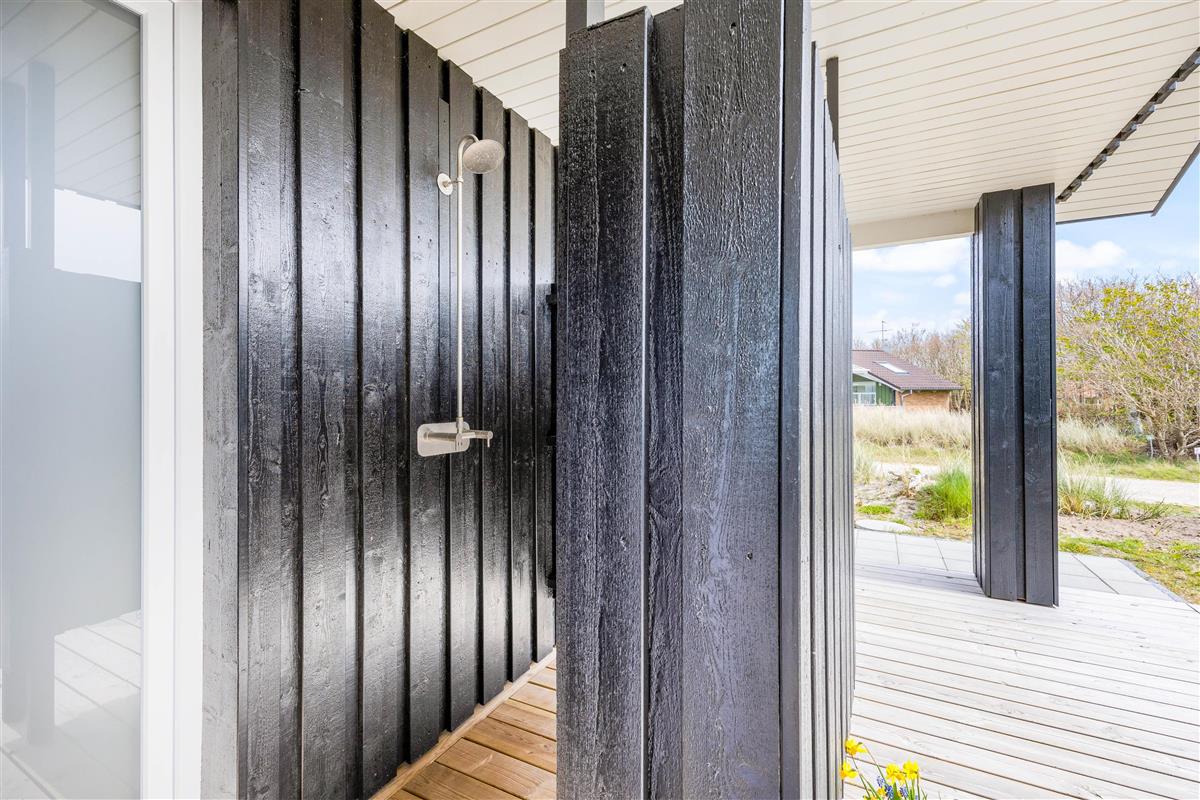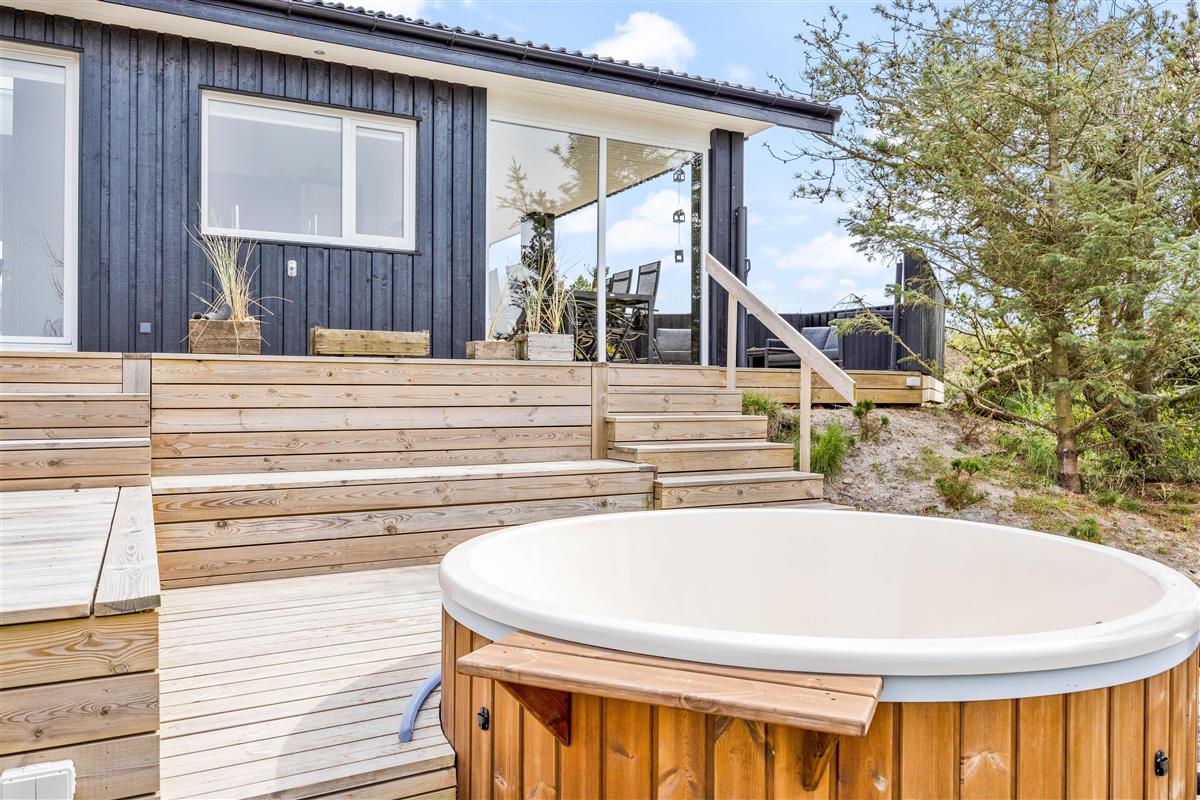 The holiday home stands on approximately 980 square metres of natural grounds and offers plenty of terrace space, allowing everyone to find their favourite spot, whether in sun or shade. For days when the weather isn't ideal, part of the terrace is covered. The Nordic hot tub in the natural grounds provides a special experience. After a long day at the beach, you can use the outdoor shower (available April-November) to rinse off the sand.
