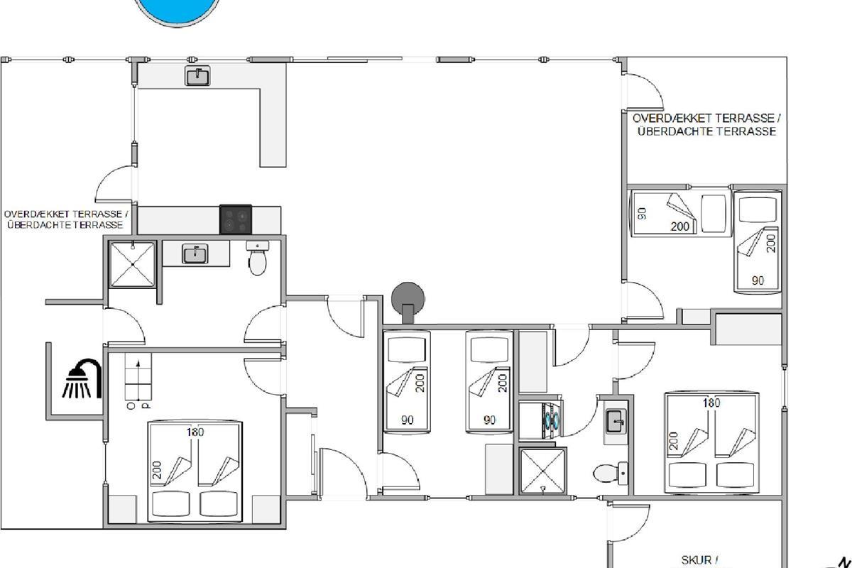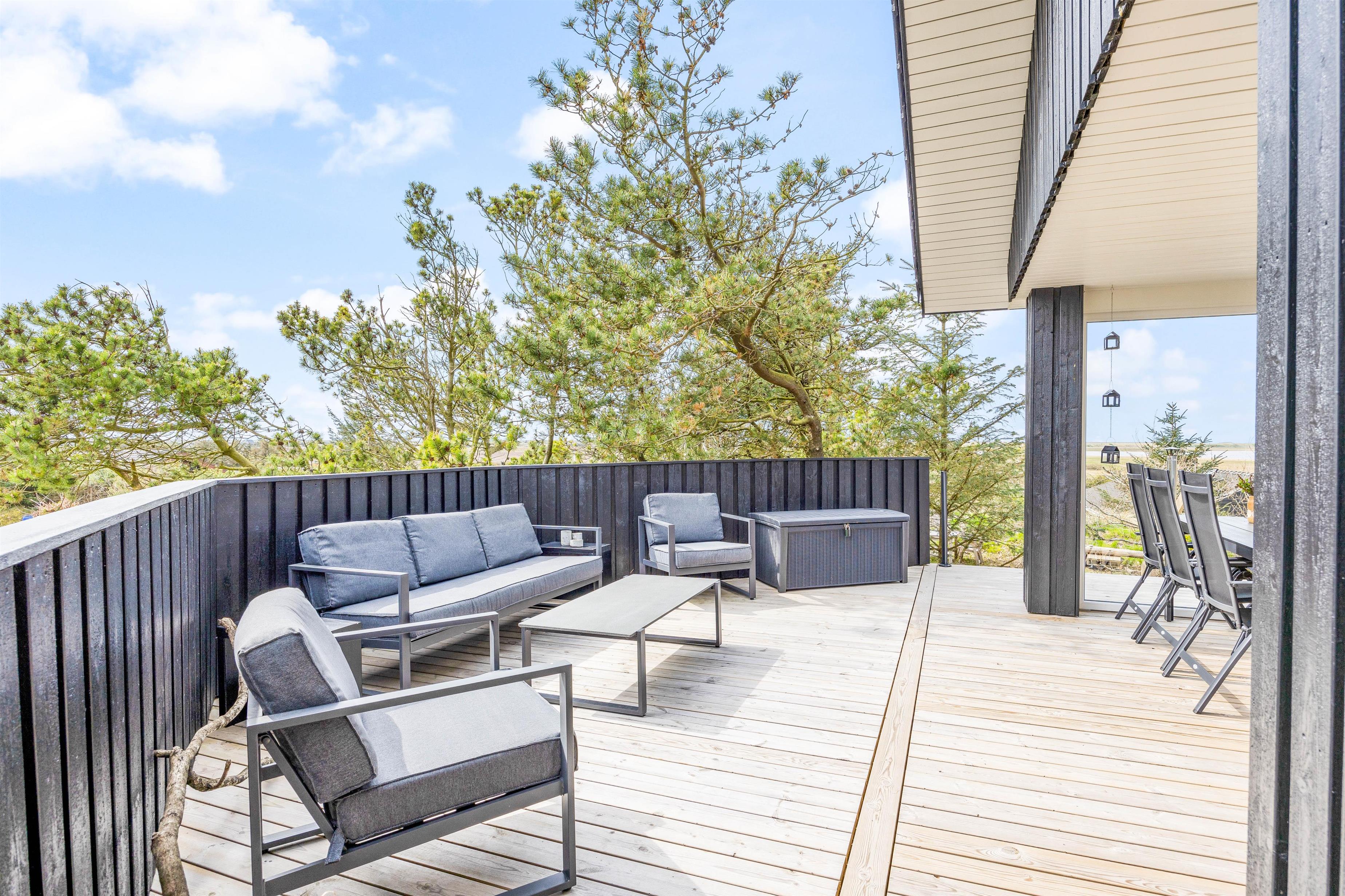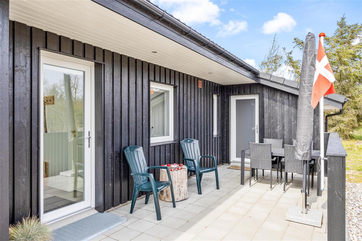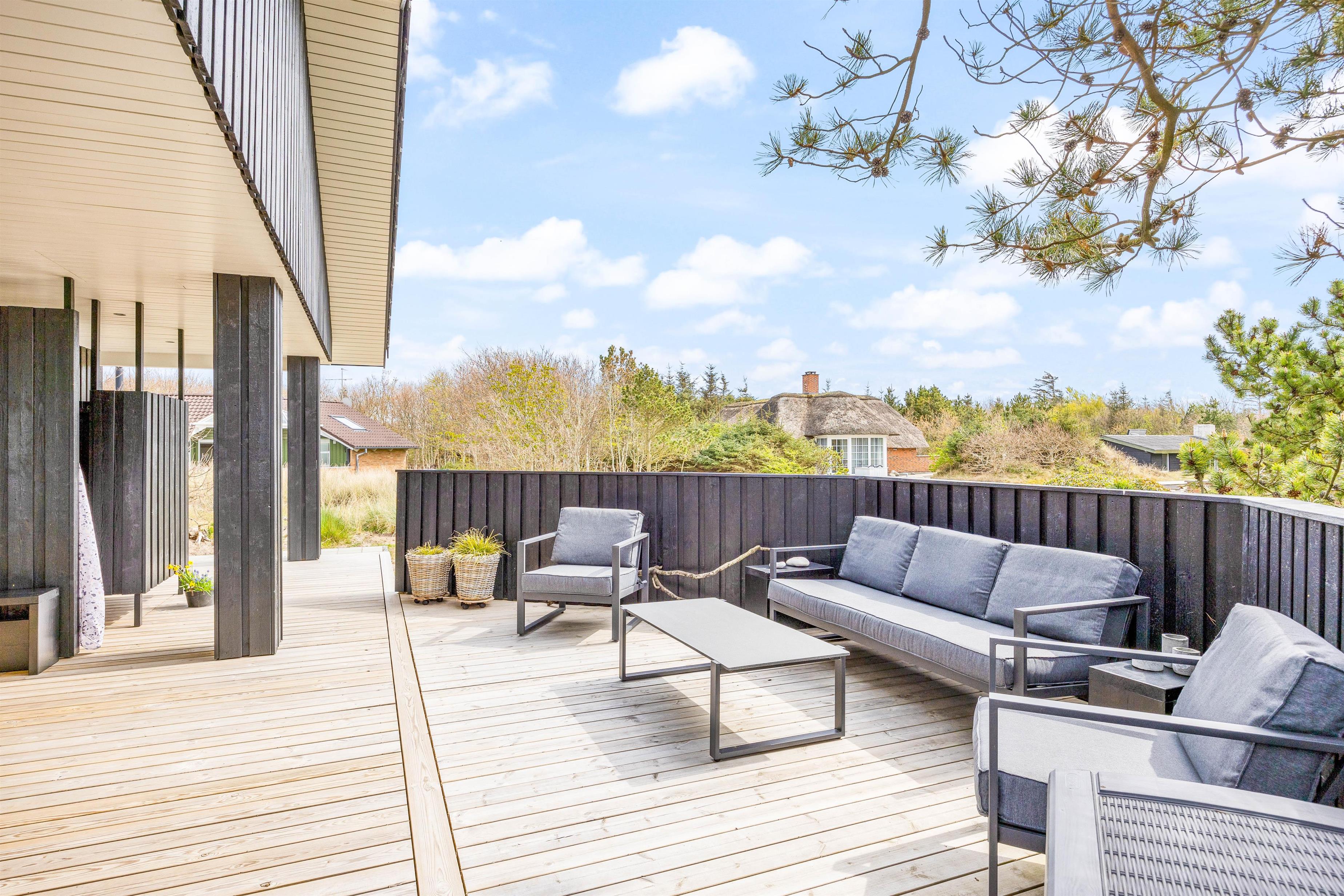 The holiday home stands on approximately 980 square metres of natural grounds and offers plenty of terrace space, allowing everyone to find their favourite spot, whether in sun or shade. For days when the weather isn't ideal, part of the terrace is covered. The Nordic hot tub in the natural grounds provides a special experience. After a long day at the beach, you can use the outdoor shower (available April-November) to rinse off the sand.