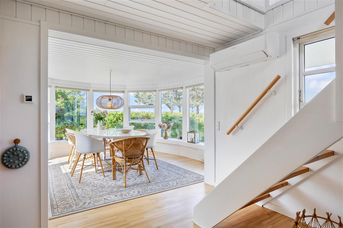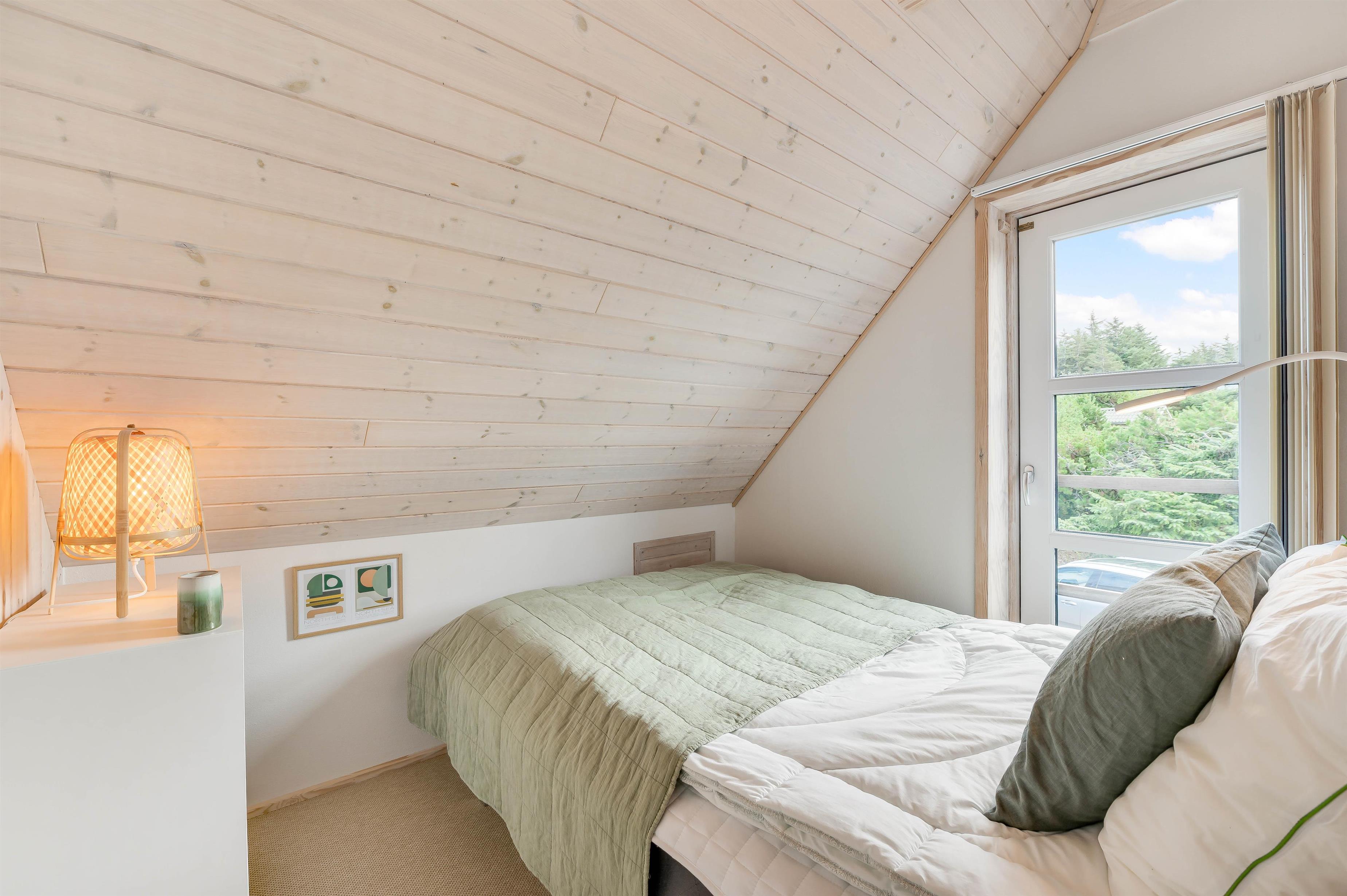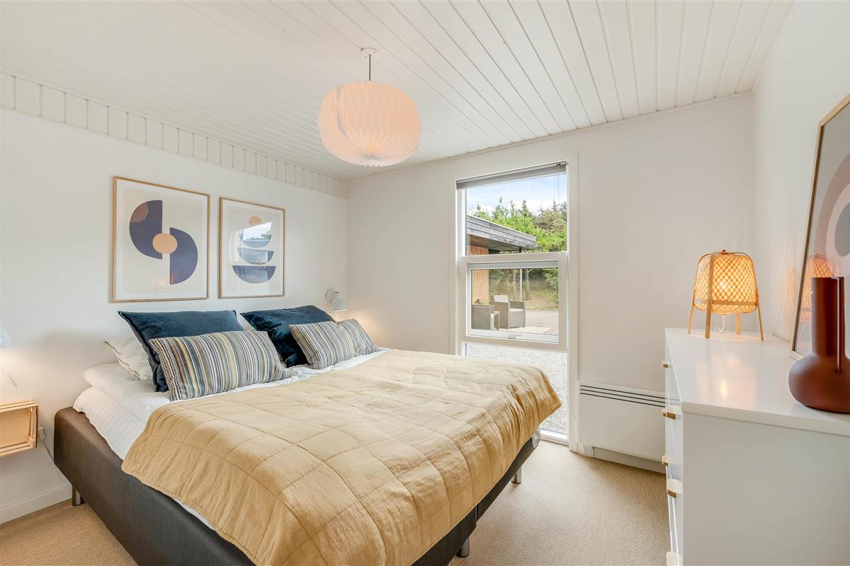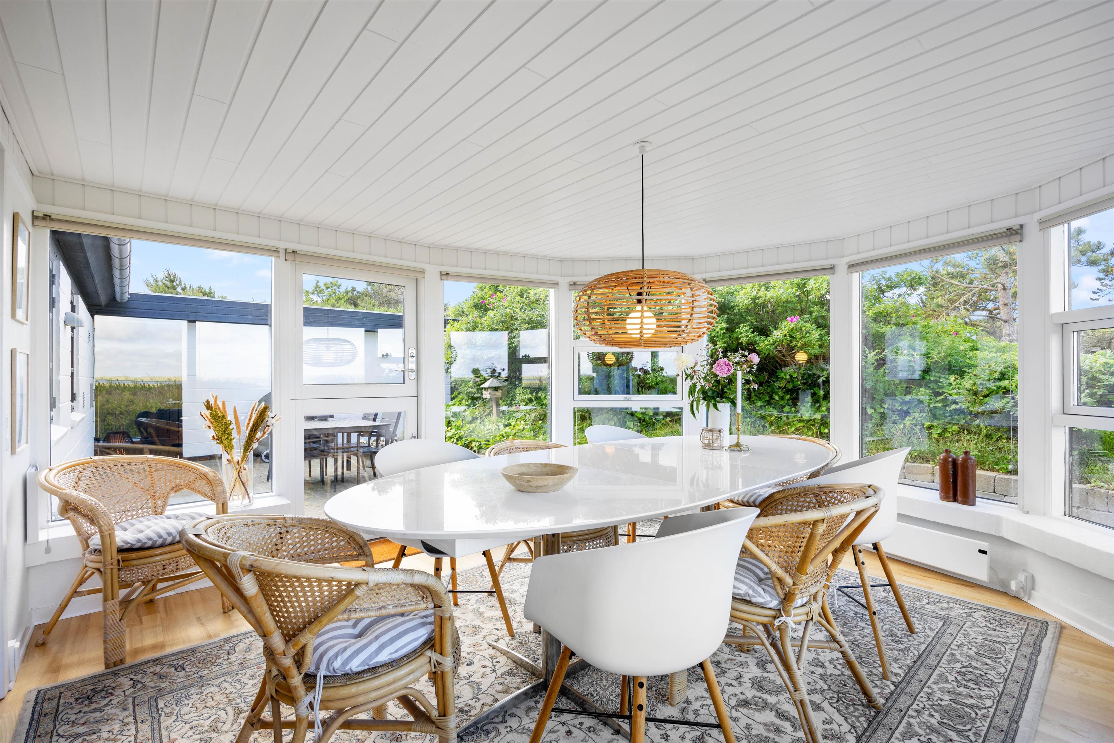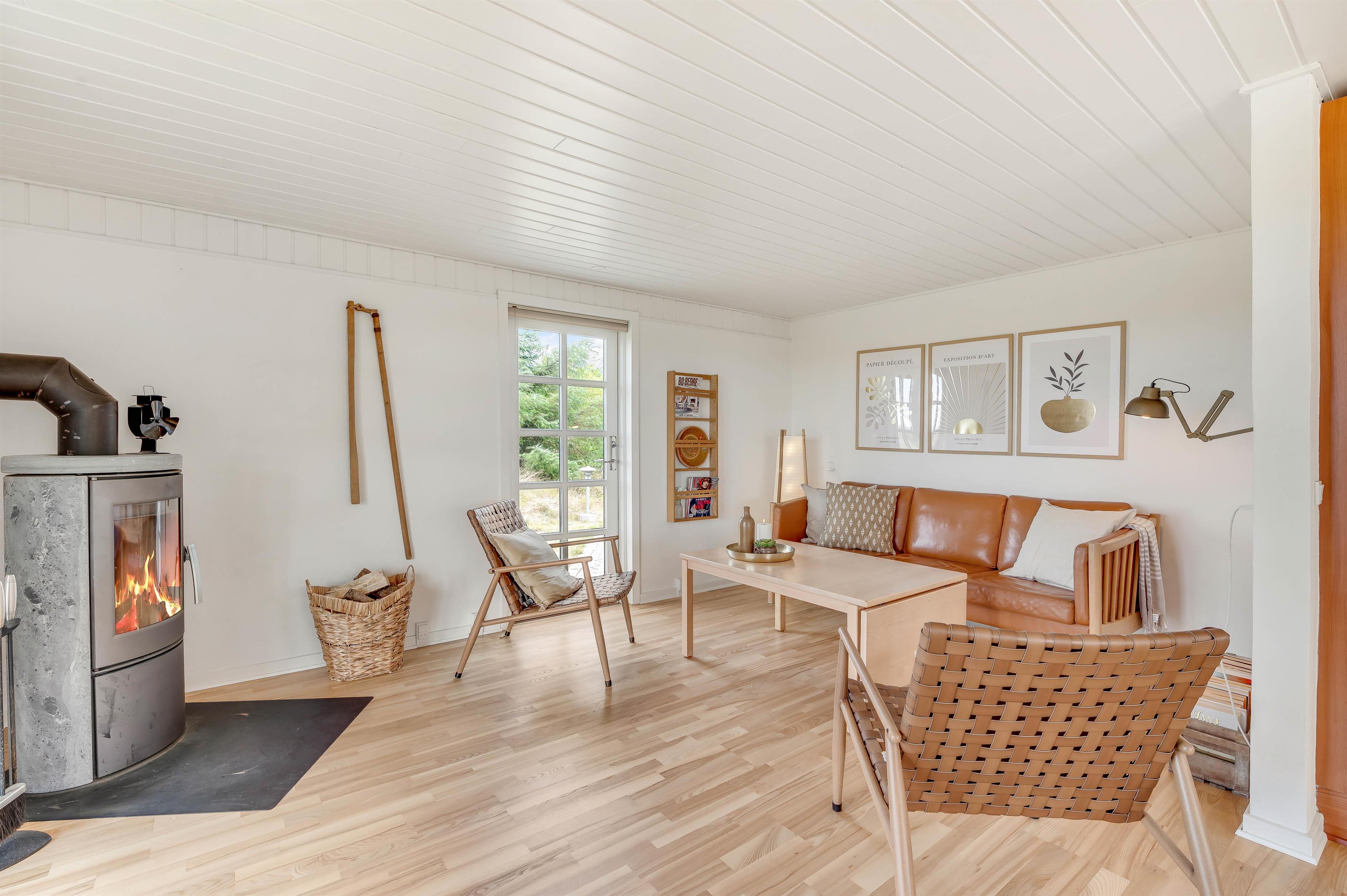 The remaining two bedrooms are located on the first floor. One bedroom features a double bed, while the other has a single bed. The first floor also includes a comfortable TV room offering stunning views over Nissum Fjord, plus a guest toilet.