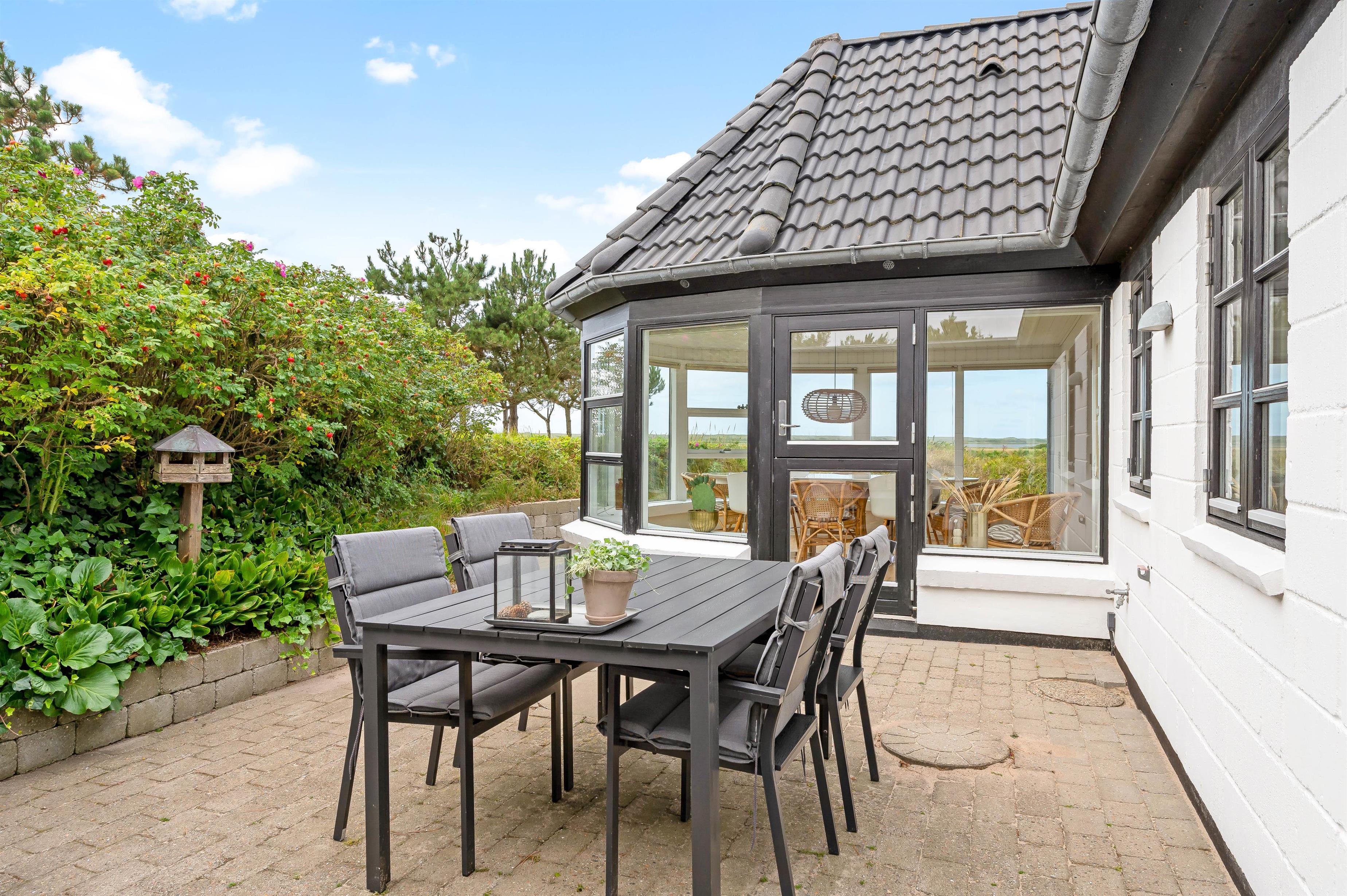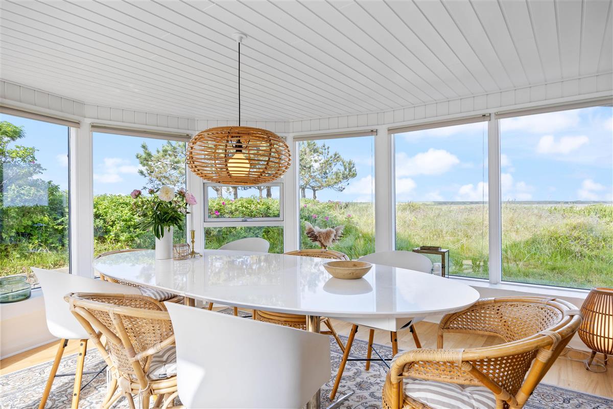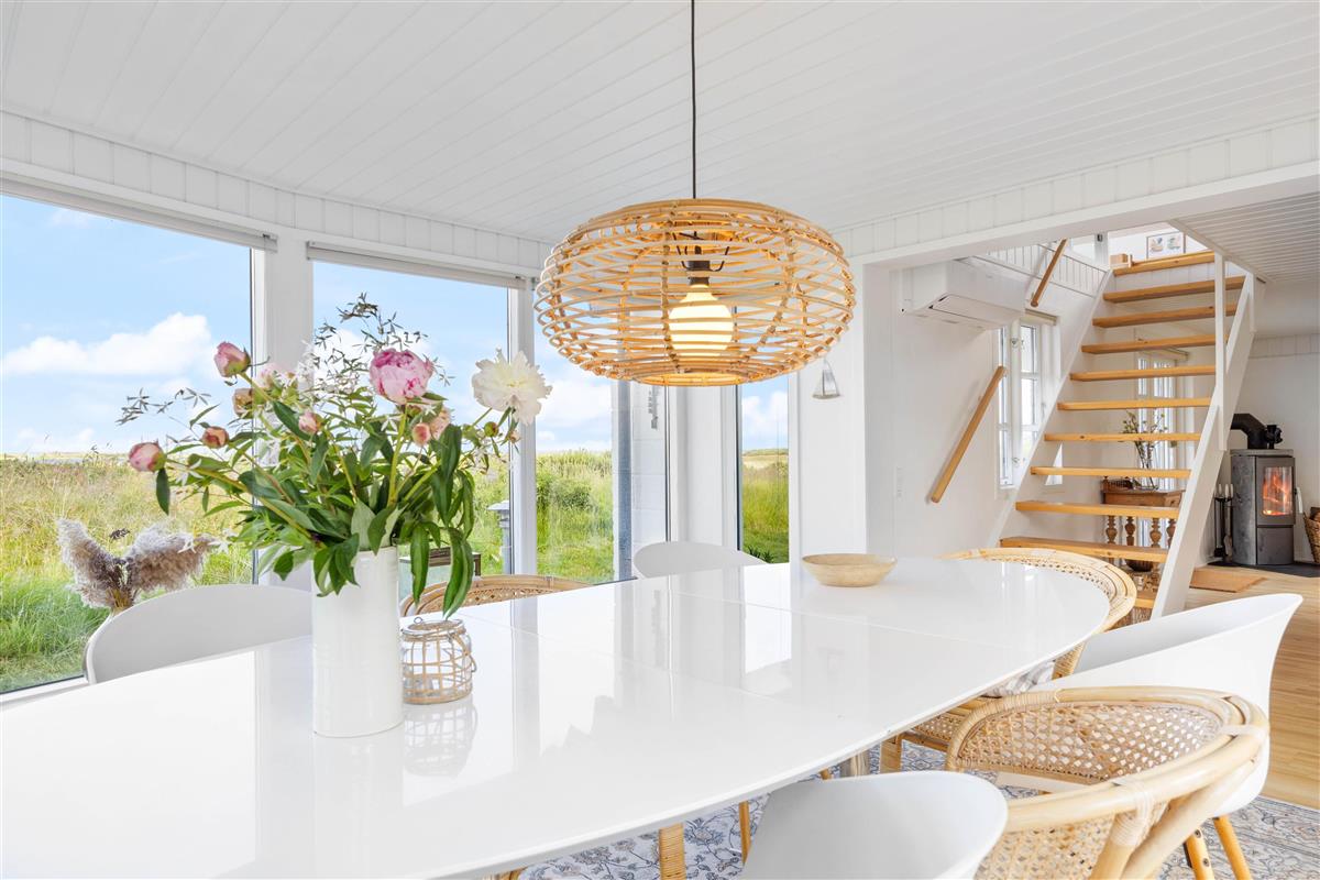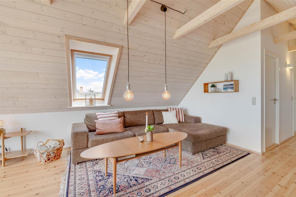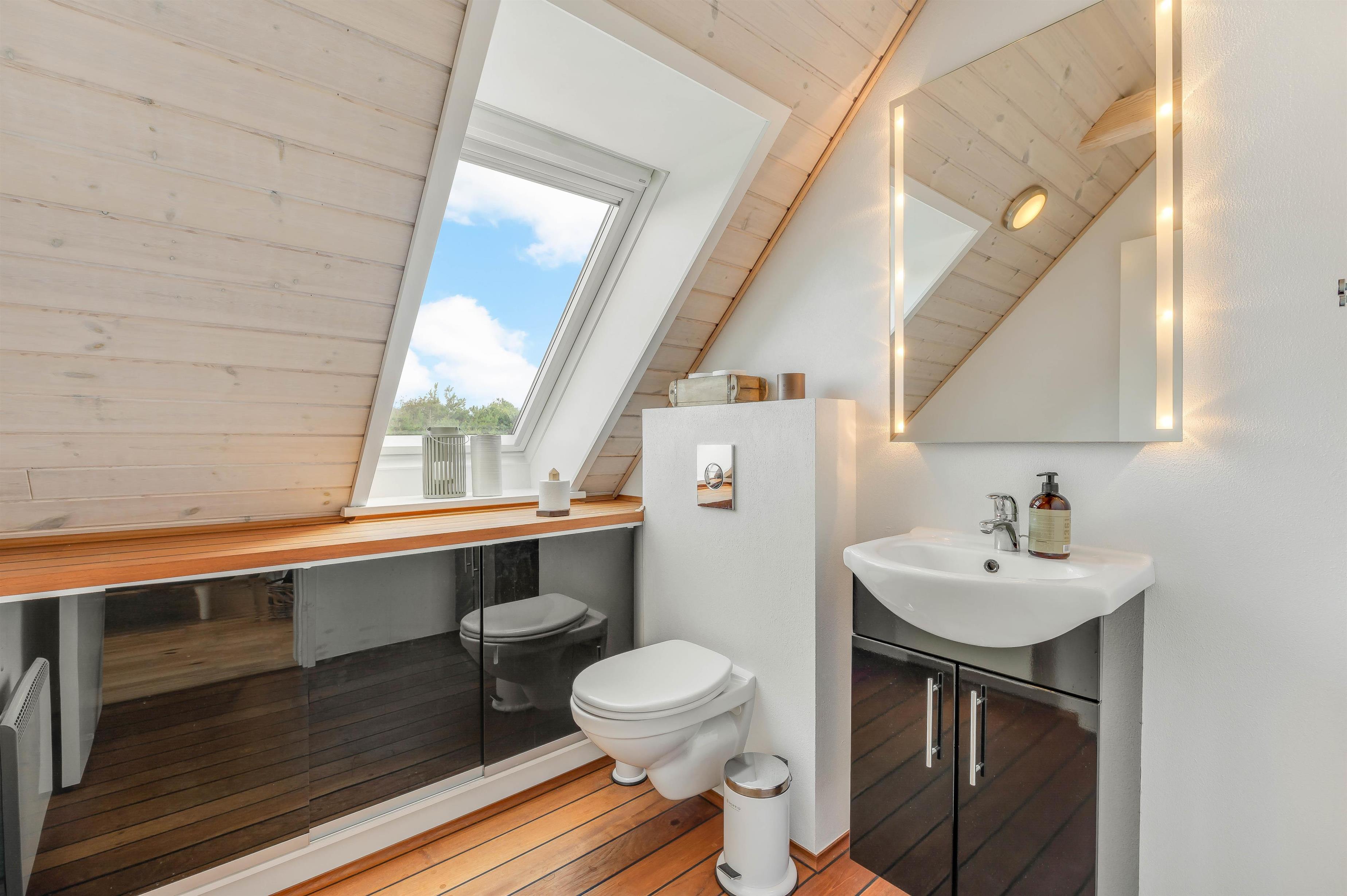 The remaining two bedrooms are located on the first floor. One bedroom features a double bed, while the other has a single bed. The first floor also includes a comfortable TV room offering stunning views over Nissum Fjord, plus a guest toilet.