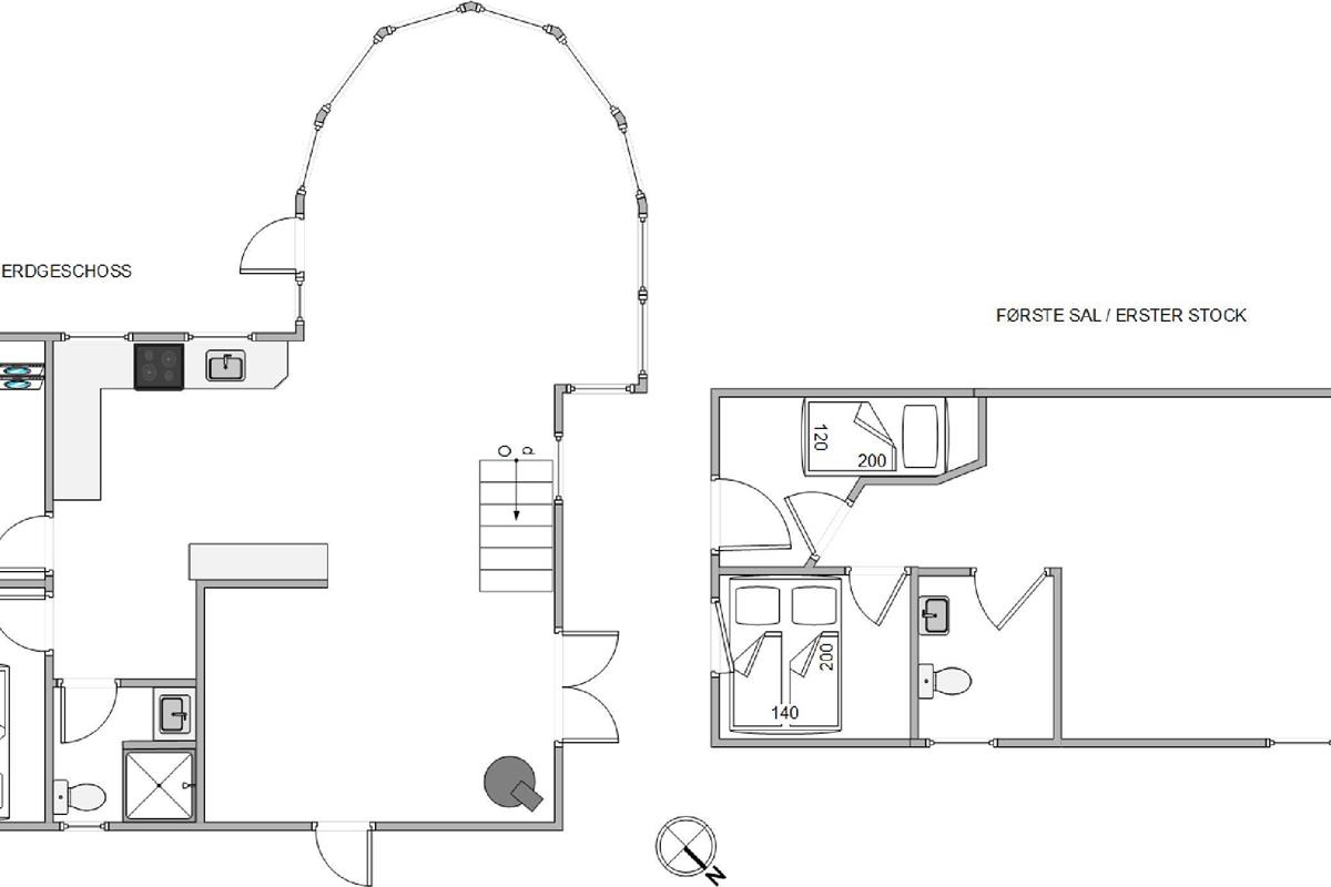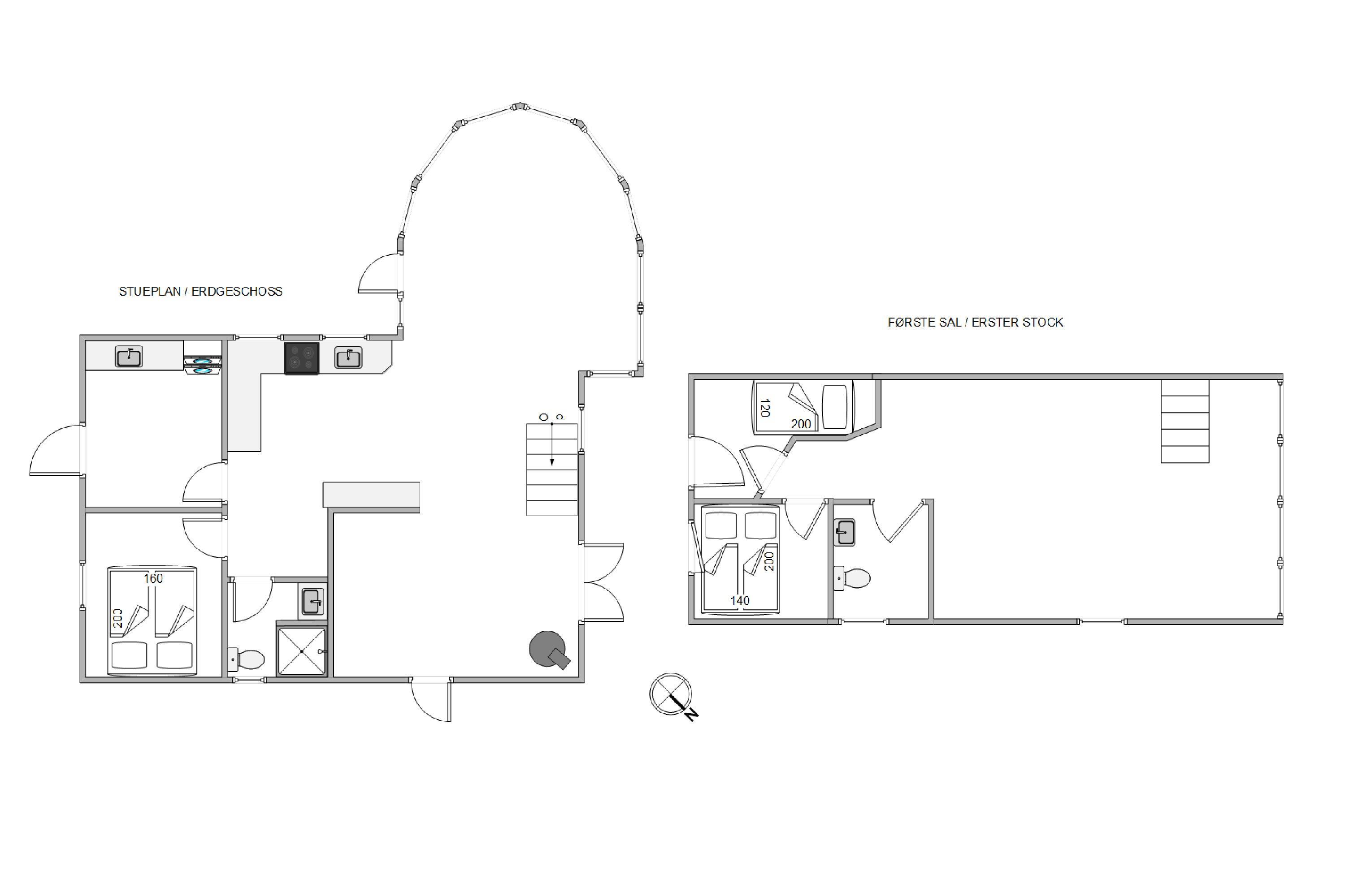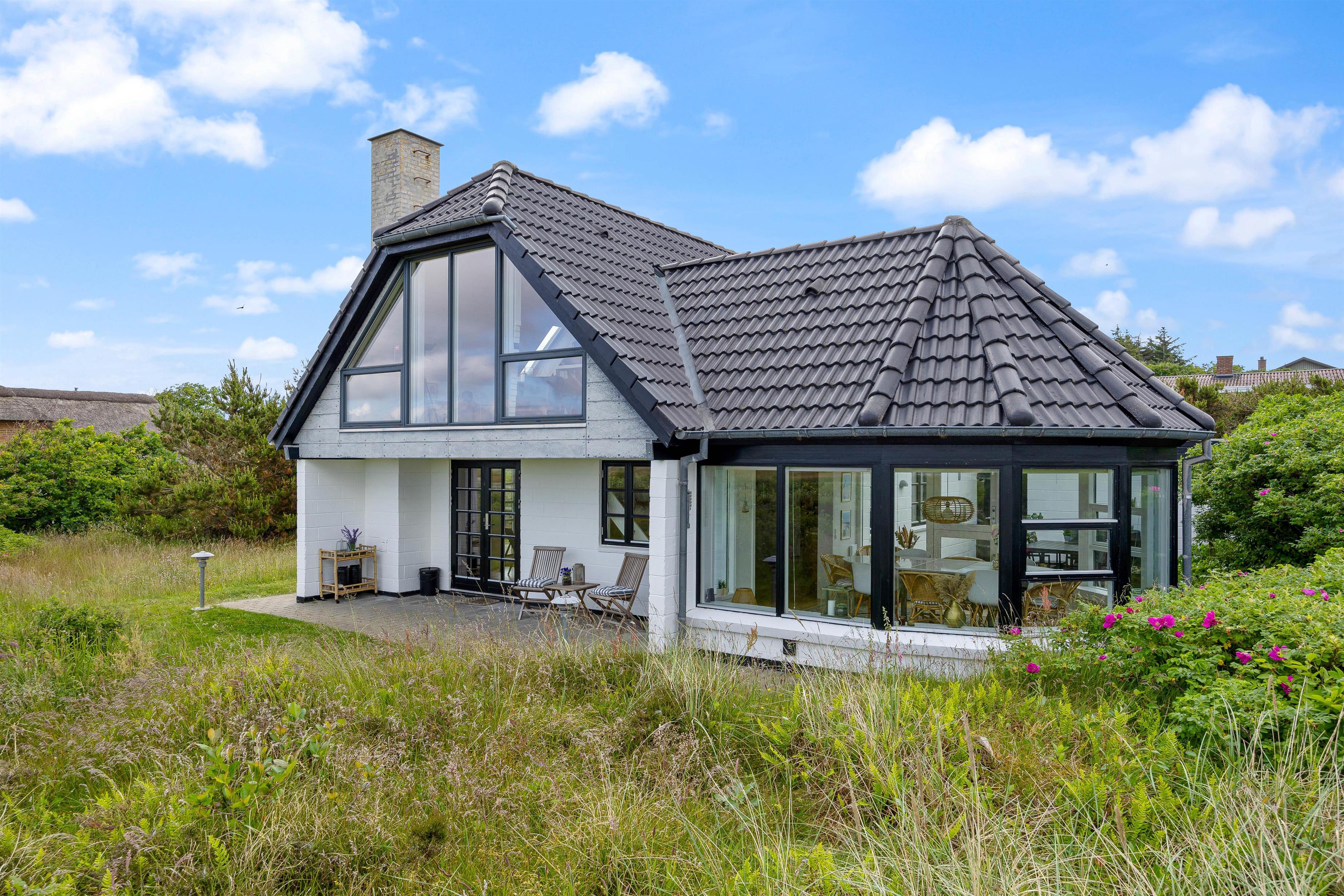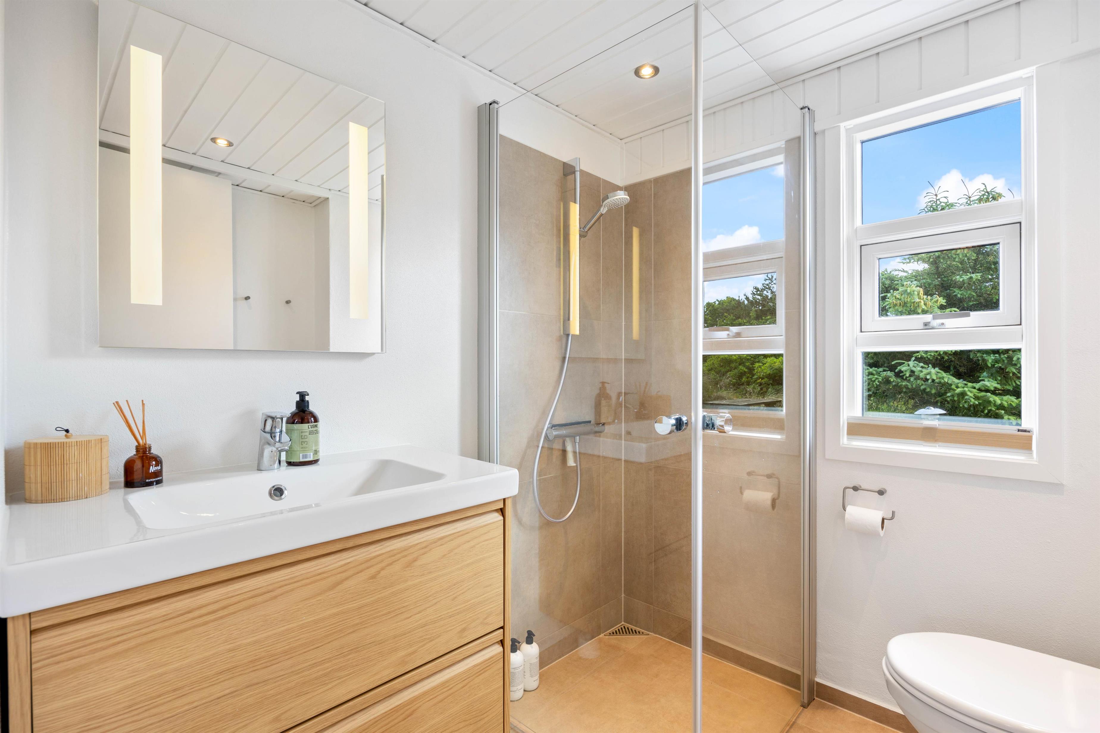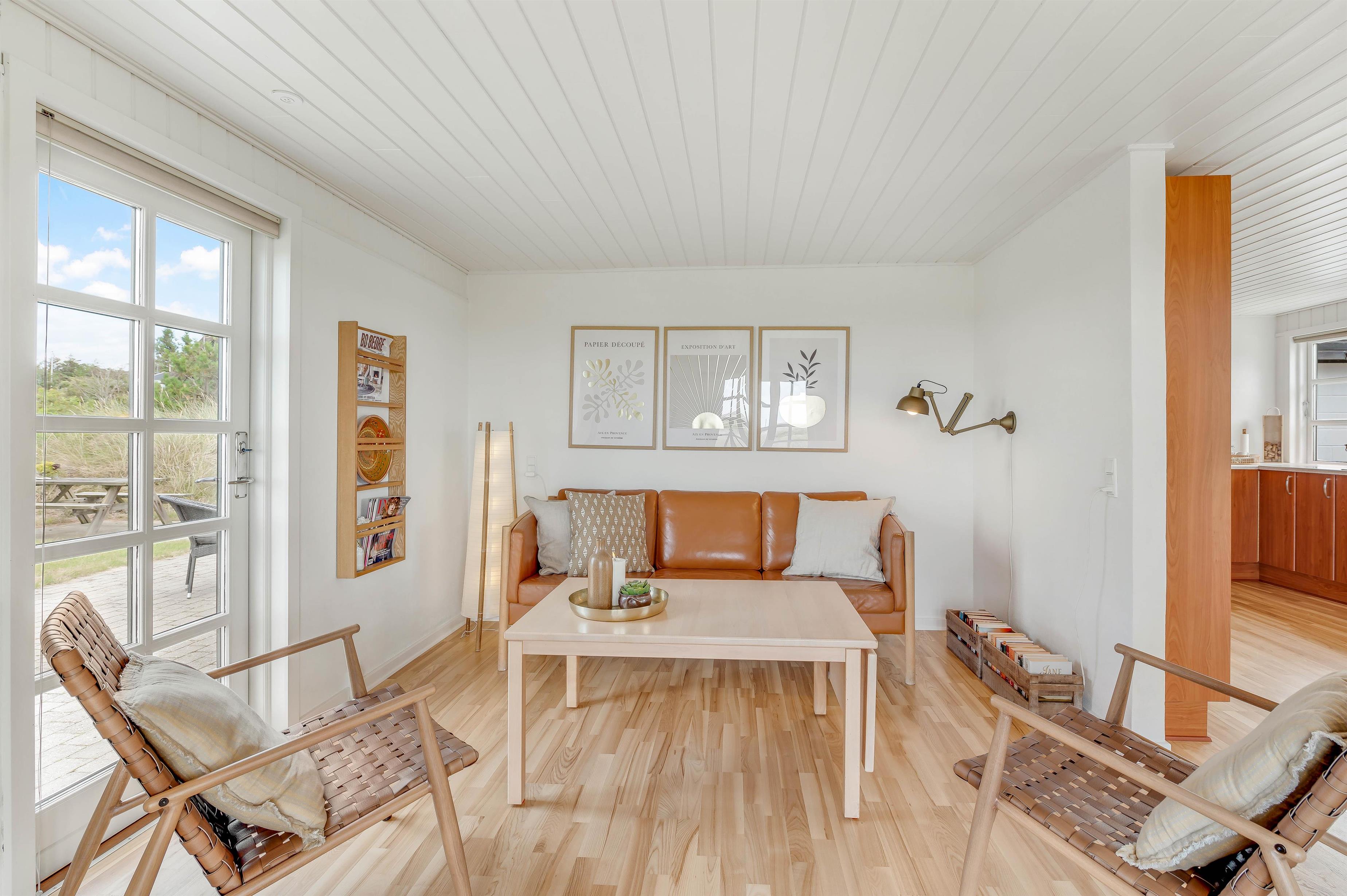 The remaining two bedrooms are located on the first floor. One bedroom features a double bed, while the other has a single bed. The first floor also includes a comfortable TV room offering stunning views over Nissum Fjord, plus a guest toilet.