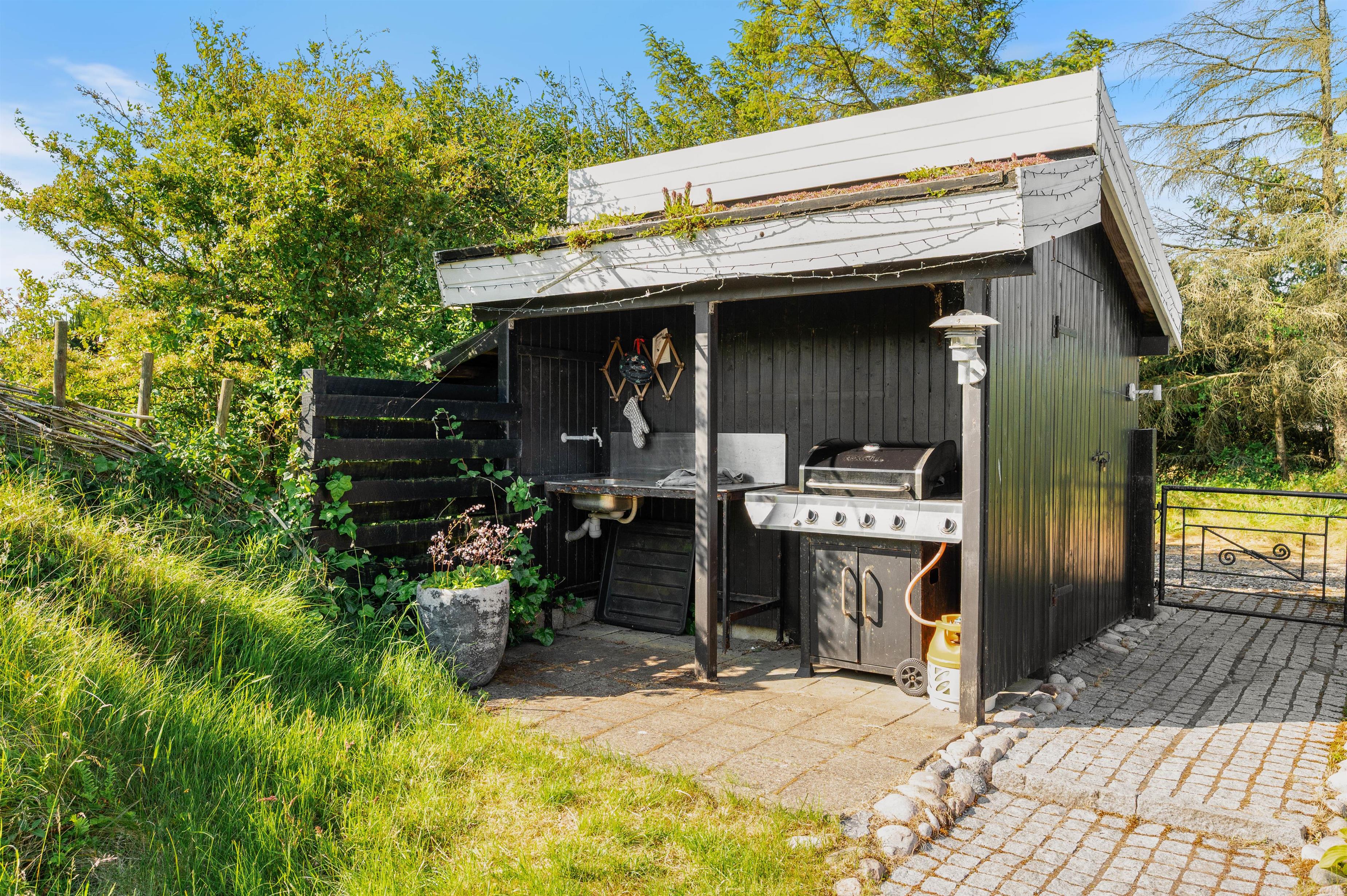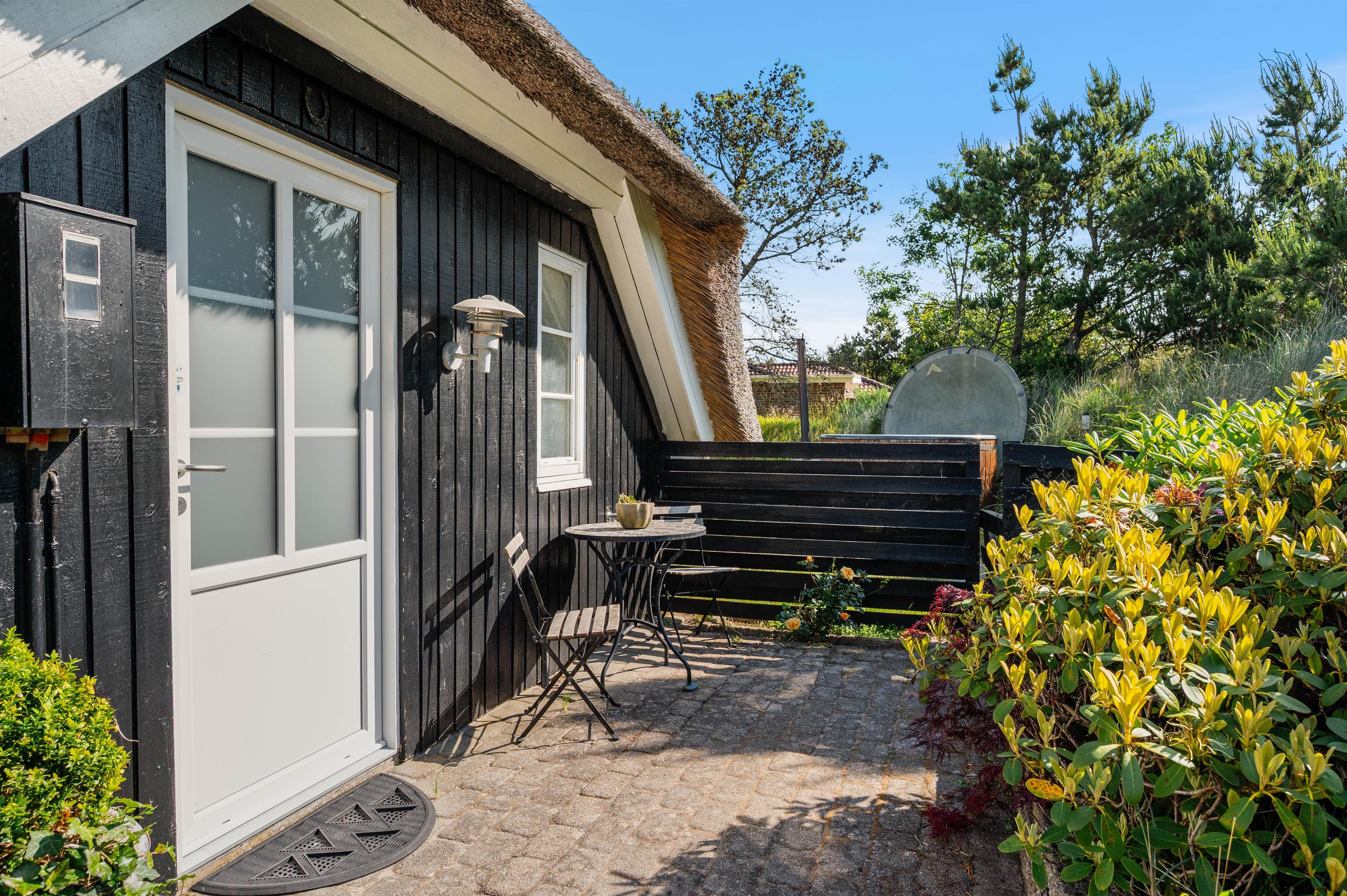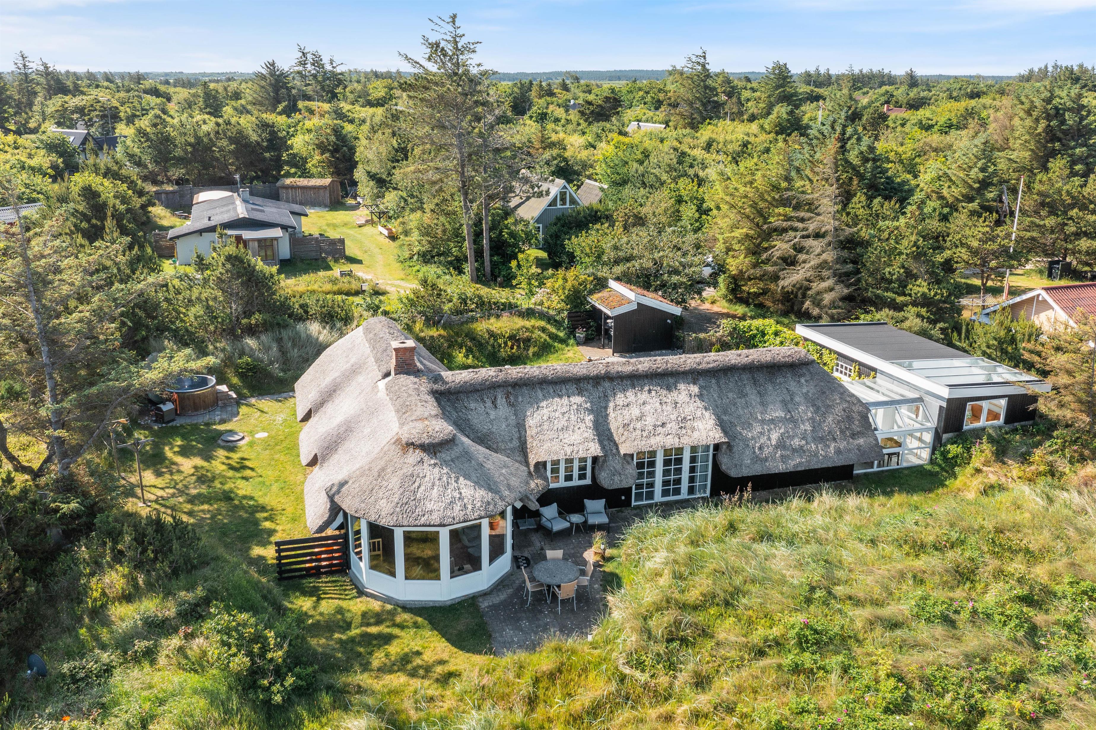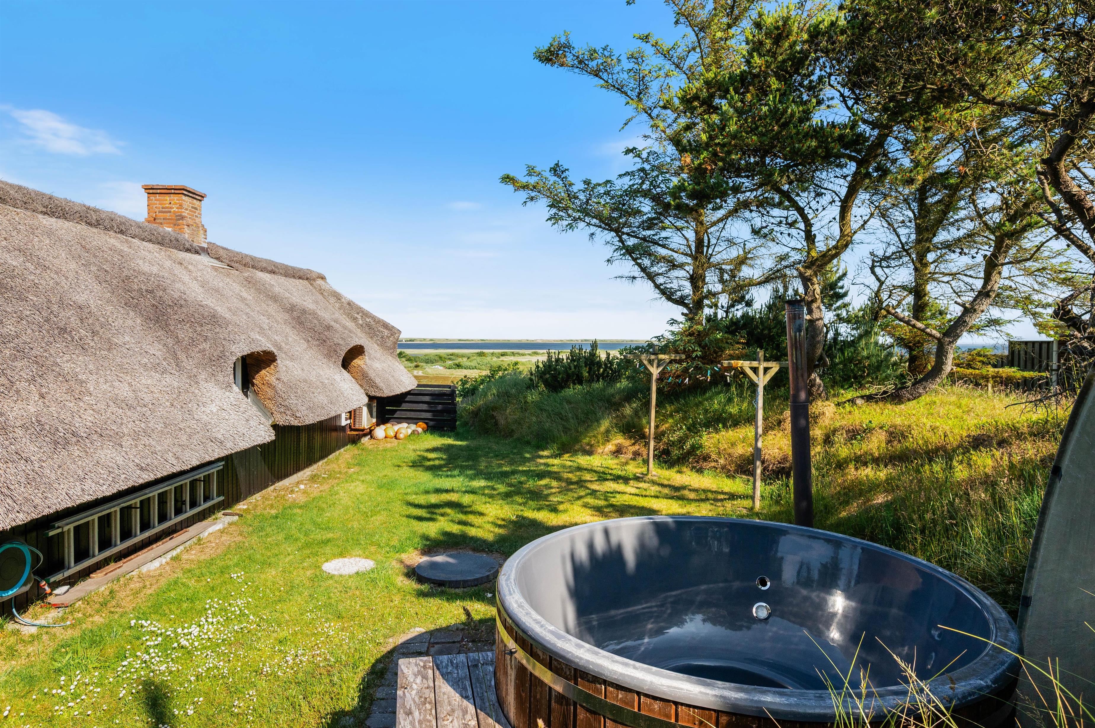 Around the thatched house, you'll find various terraces and seating areas. It's ideal that part of the grounds is completely fenced, especially if you have a dog or young children. No one can wander off, and independent exploration isn't a concern. For additional relaxation, there's a traditional Nordic hot tub available.