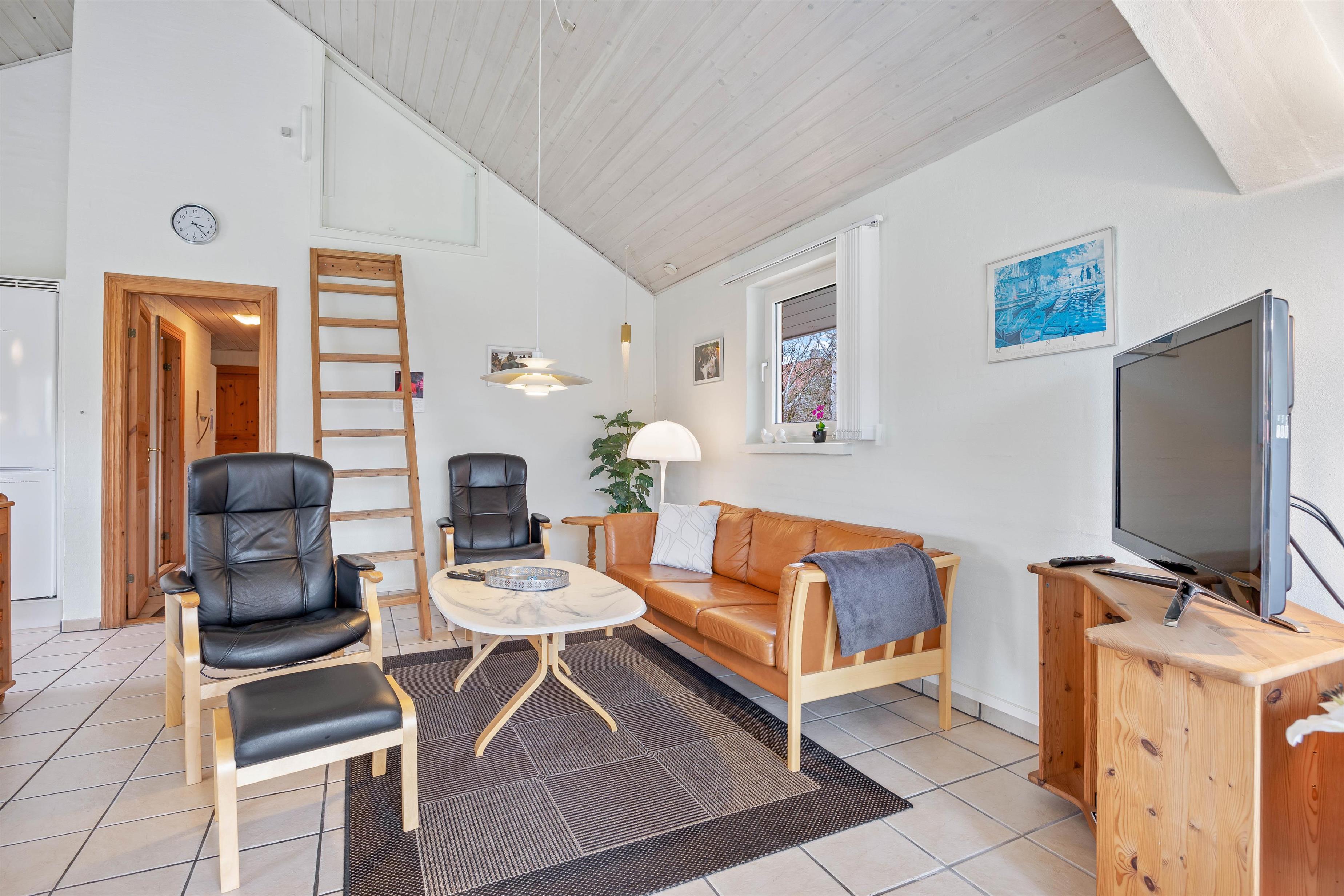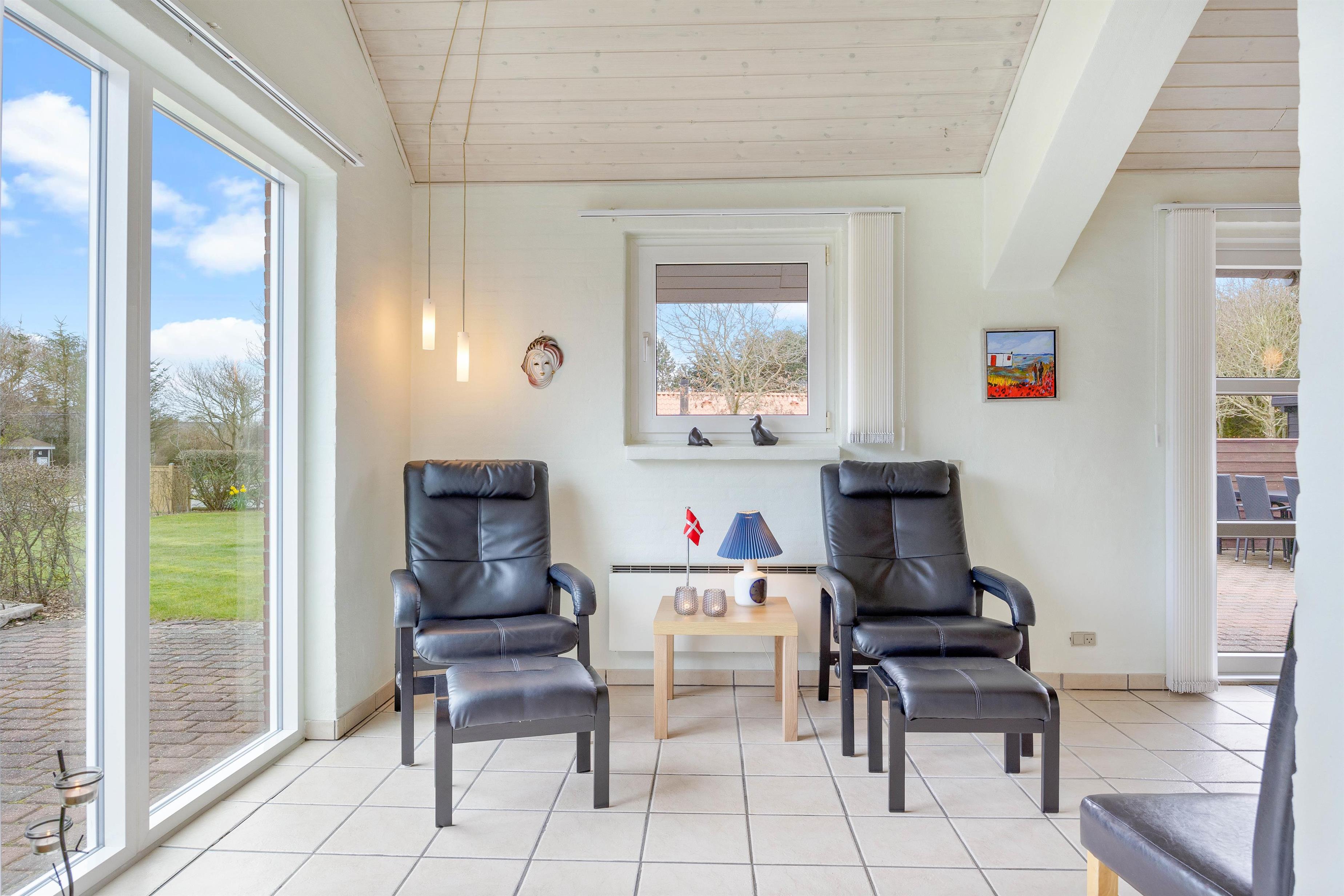 The holiday home at Hagevej 54 in Fjand sits on an 895-square-metre lawn surrounded by trees. You can relax on the terrace, equipped with suitable garden furniture and sun loungers, enjoying a good book in the sunshine. For peace of mind with children and dogs, the terrace is conveniently fenced. While you prepare dinner on the gas barbecue, children can enjoy the swing or build sandcastles in the sandpit.