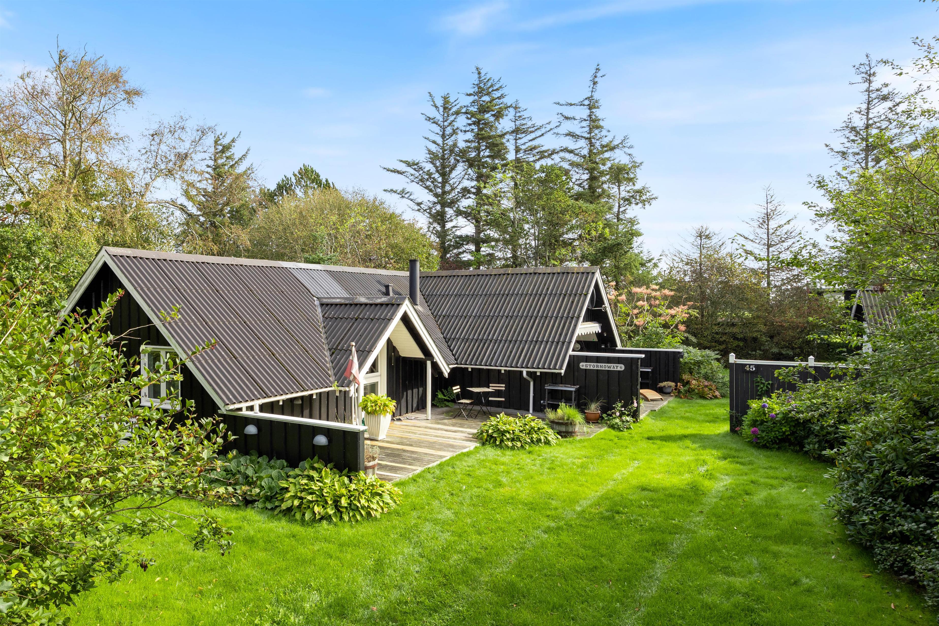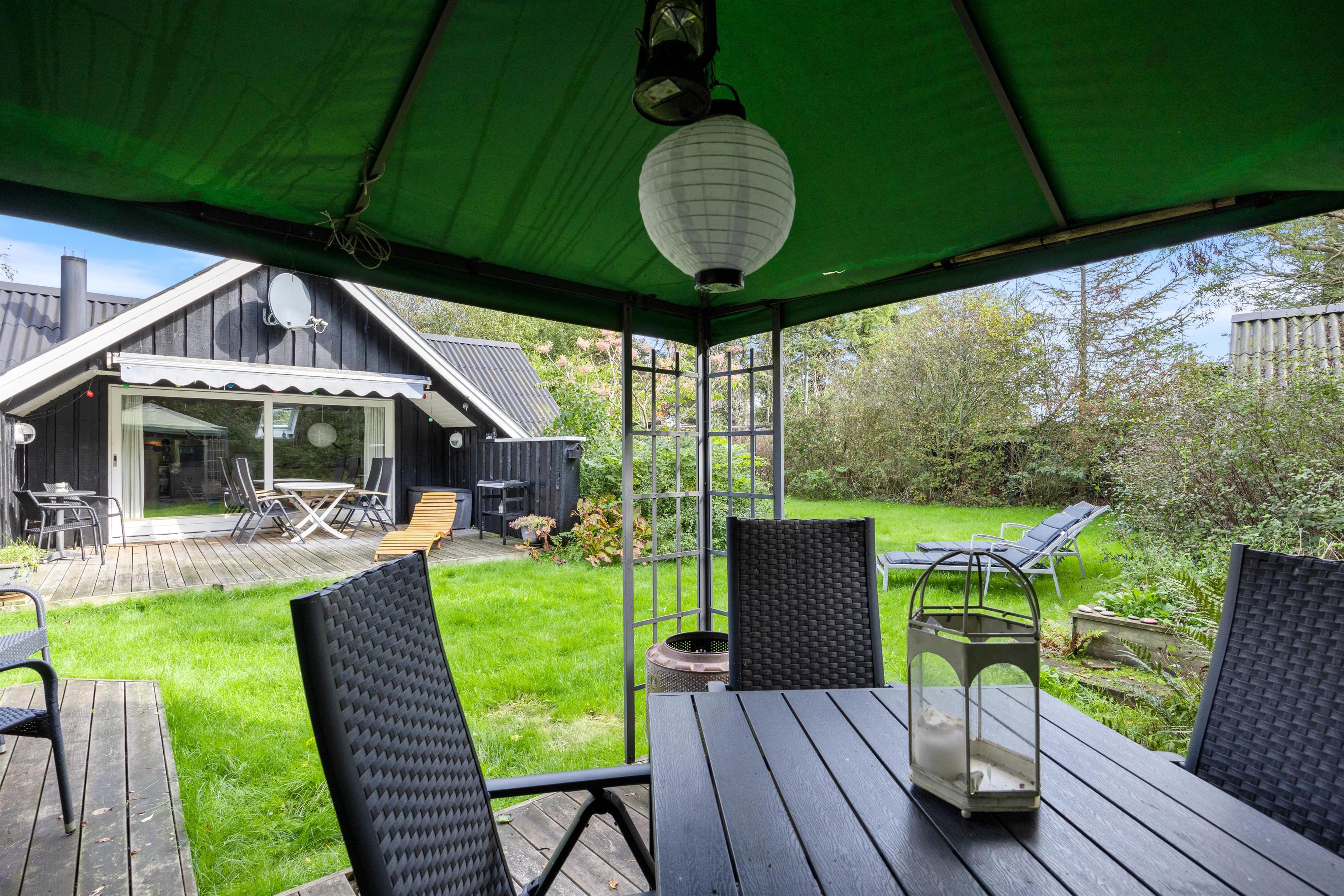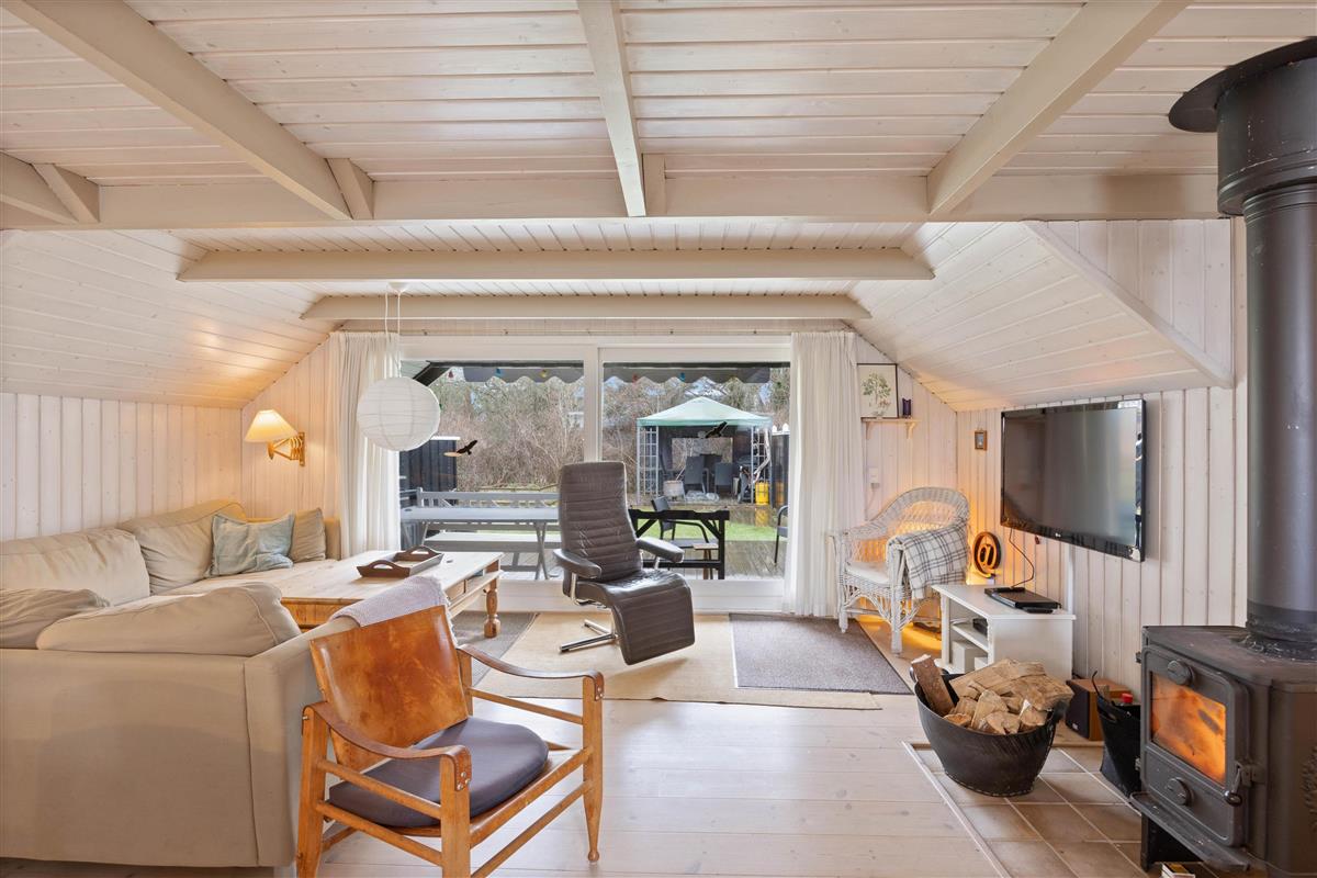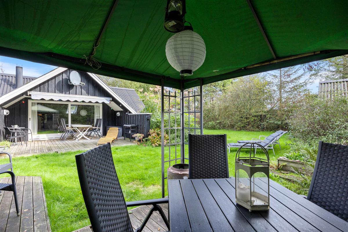 The holiday home at Hagevej 45 in Fjand sits on approximately 1,301 square metres of grass grounds, bordered by trees and shrubs. There's plenty of space for children and dogs to play and run around. While the children explore the grounds, you can relax on the terrace with a good book and a cold drink, enjoying the weather. A portion of the terrace is covered, allowing you to enjoy the fresh sea air even when the weather isn't perfect.