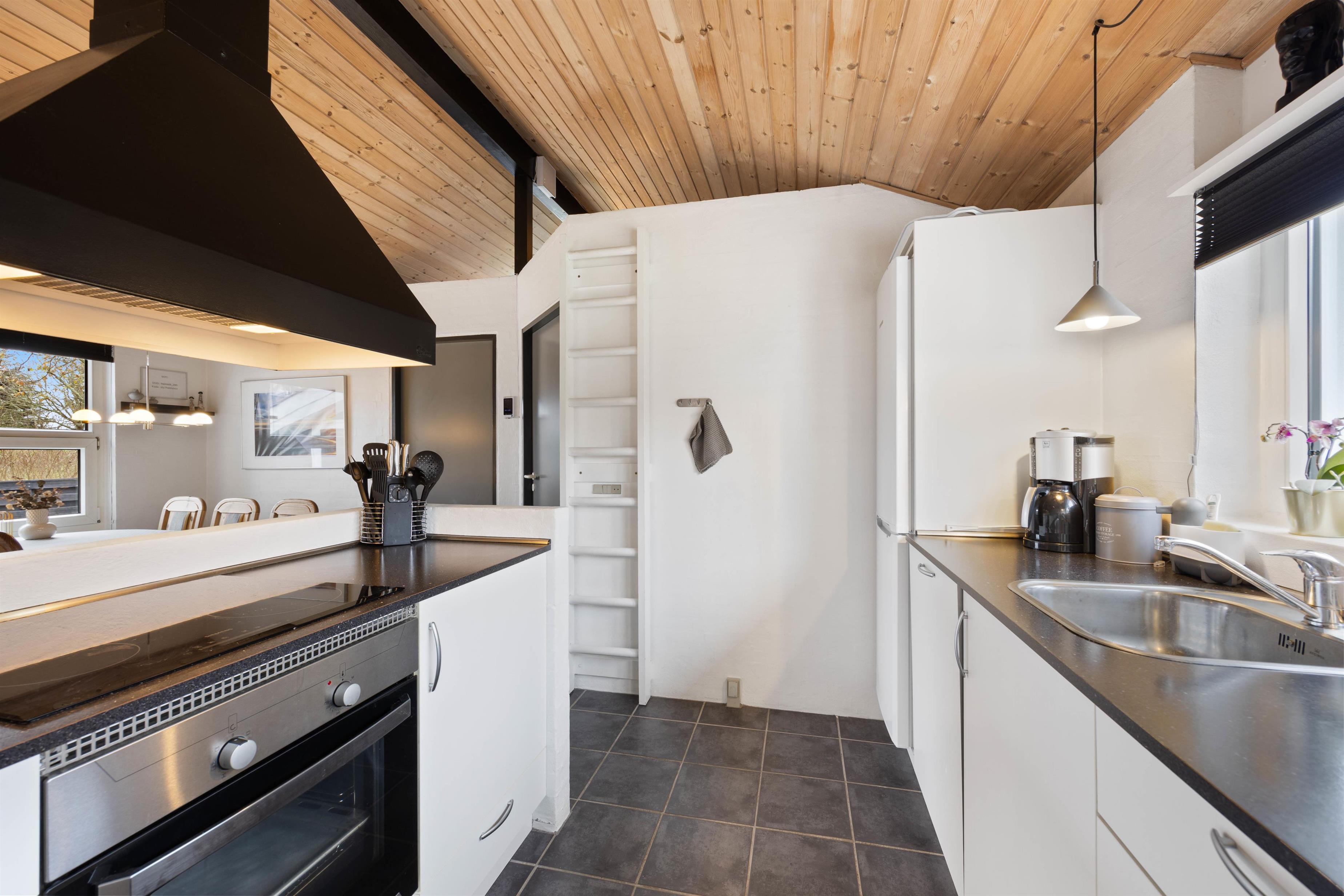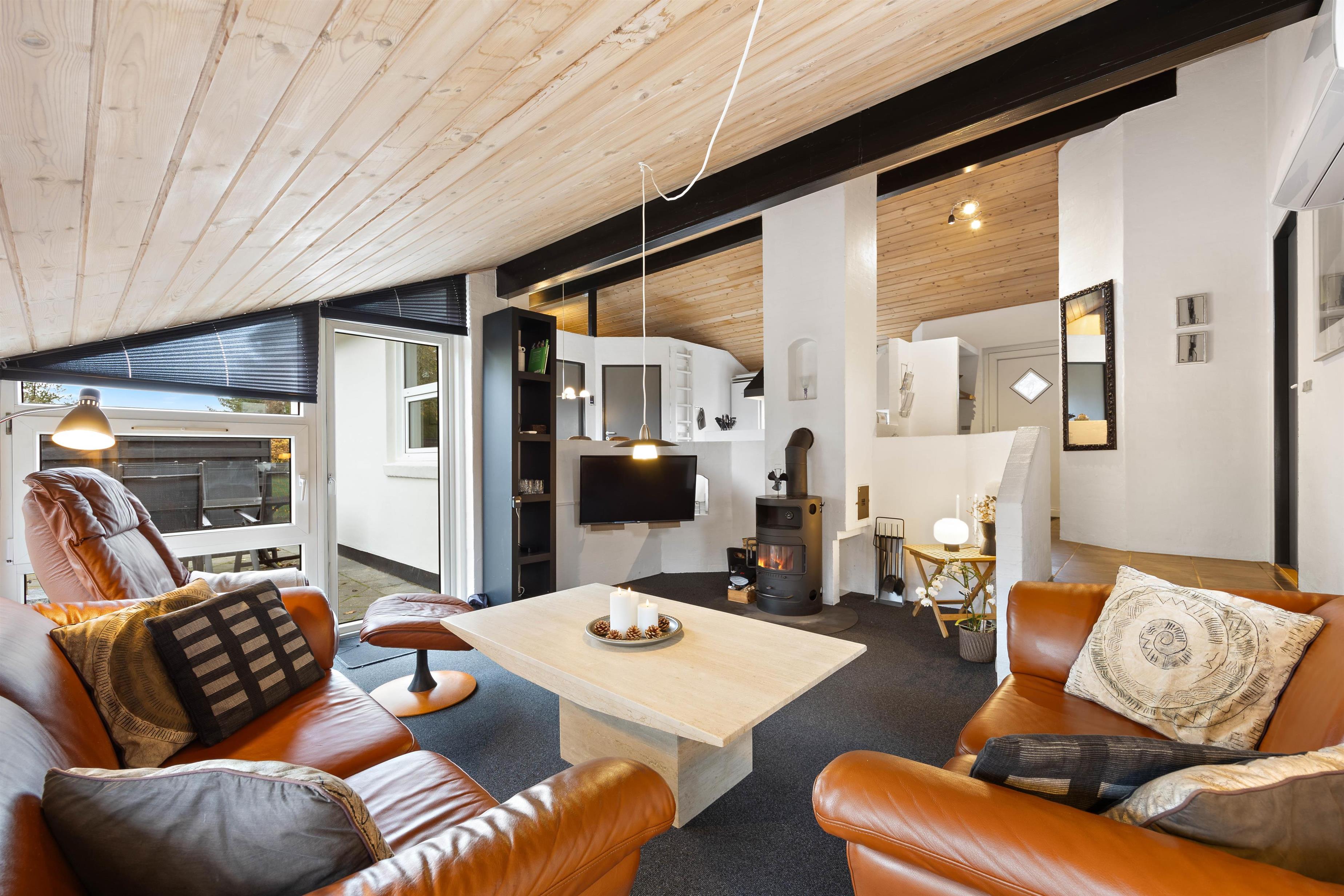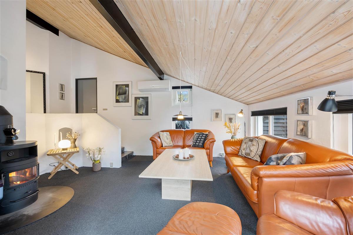 This welcoming holiday home features an open-plan kitchen with a dishwasher to take care of the washing up. Adjacent to the kitchen is the living room, where you can relax in front of the television while others prepare dinner. The wood-burning stove provides wonderful warmth on cooler evenings. Additionally, an energy-efficient heat pump has been installed to ensure a comfortable indoor climate.
