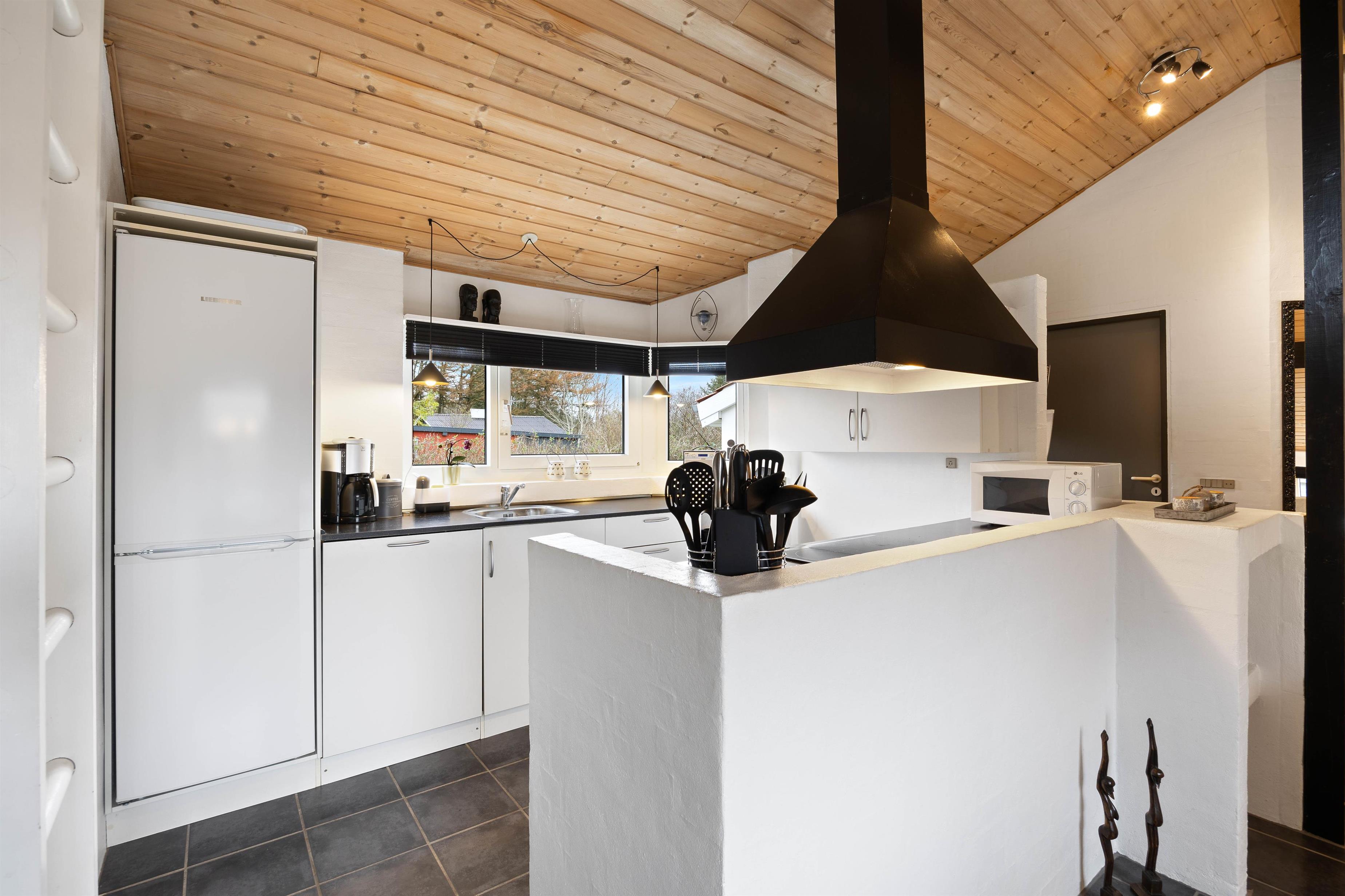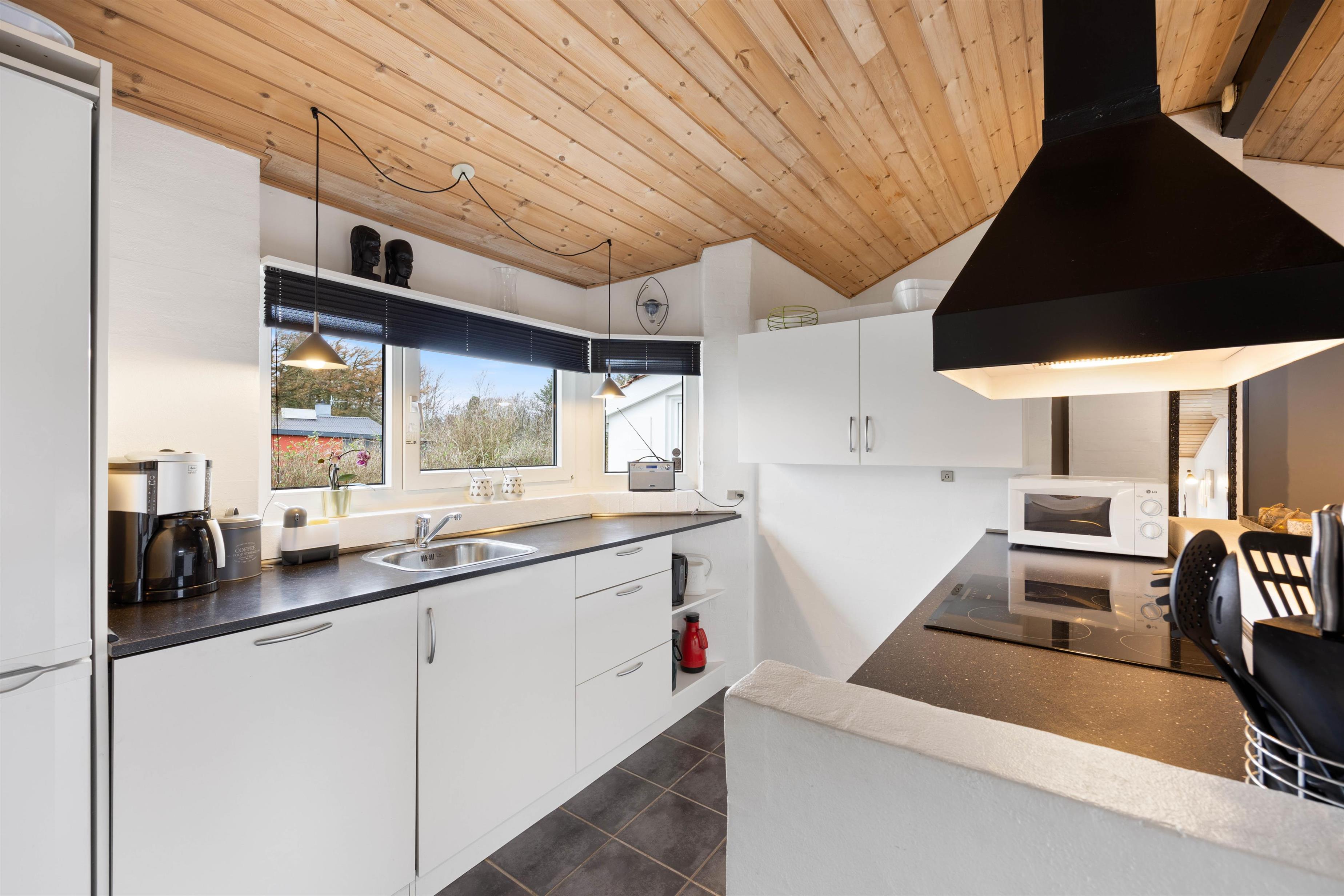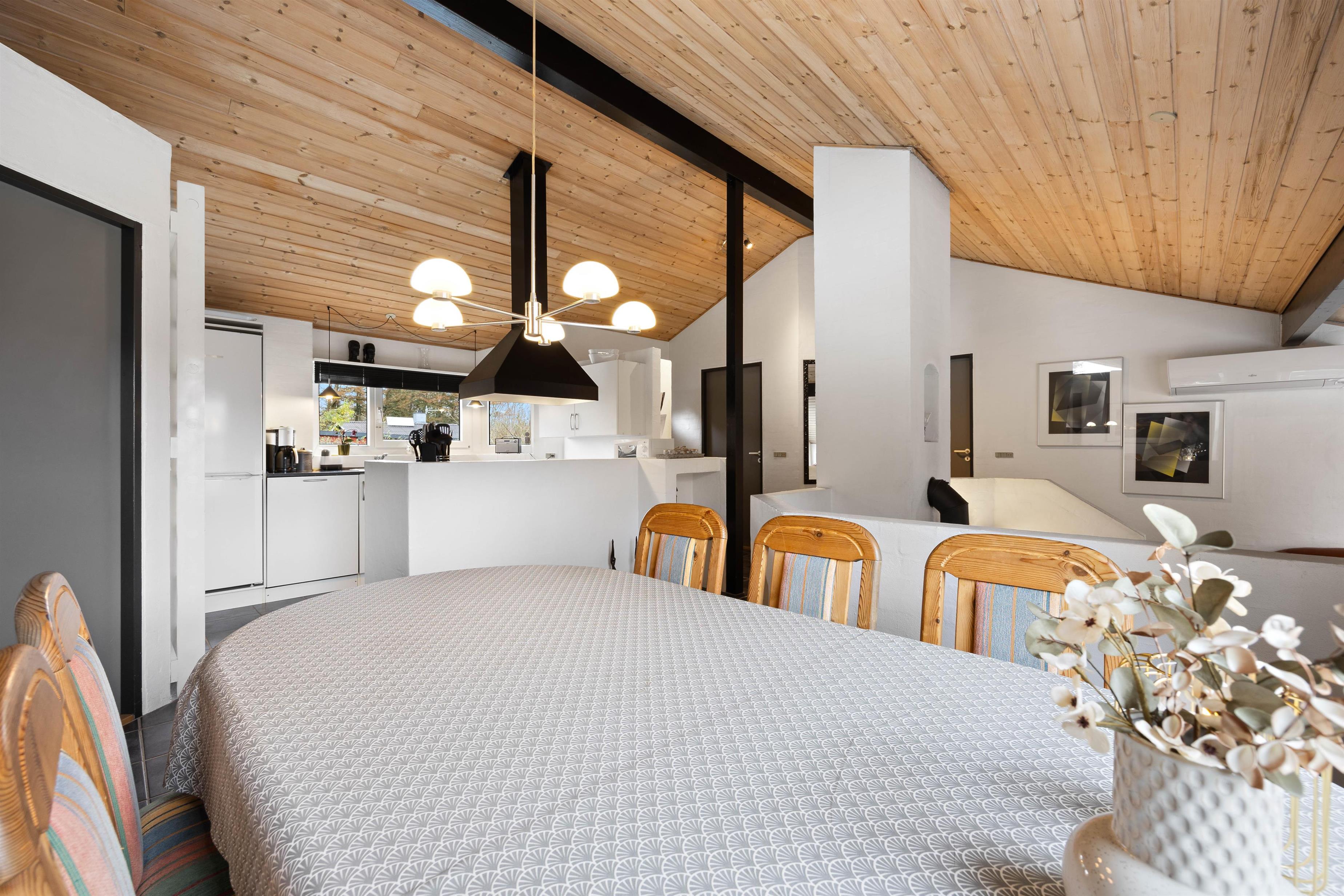 This welcoming holiday home features an open-plan kitchen with a dishwasher to take care of the washing up. Adjacent to the kitchen is the living room, where you can relax in front of the television while others prepare dinner. The wood-burning stove provides wonderful warmth on cooler evenings. Additionally, an energy-efficient heat pump has been installed to ensure a comfortable indoor climate.