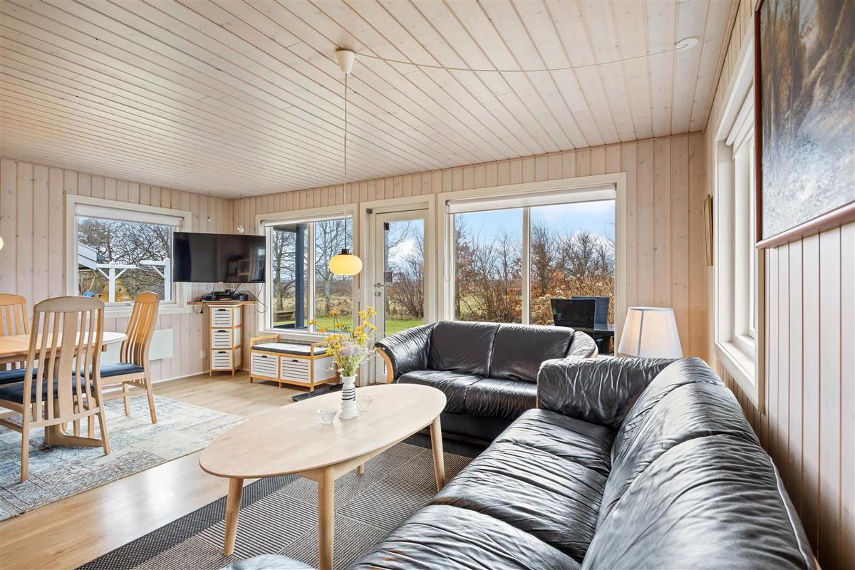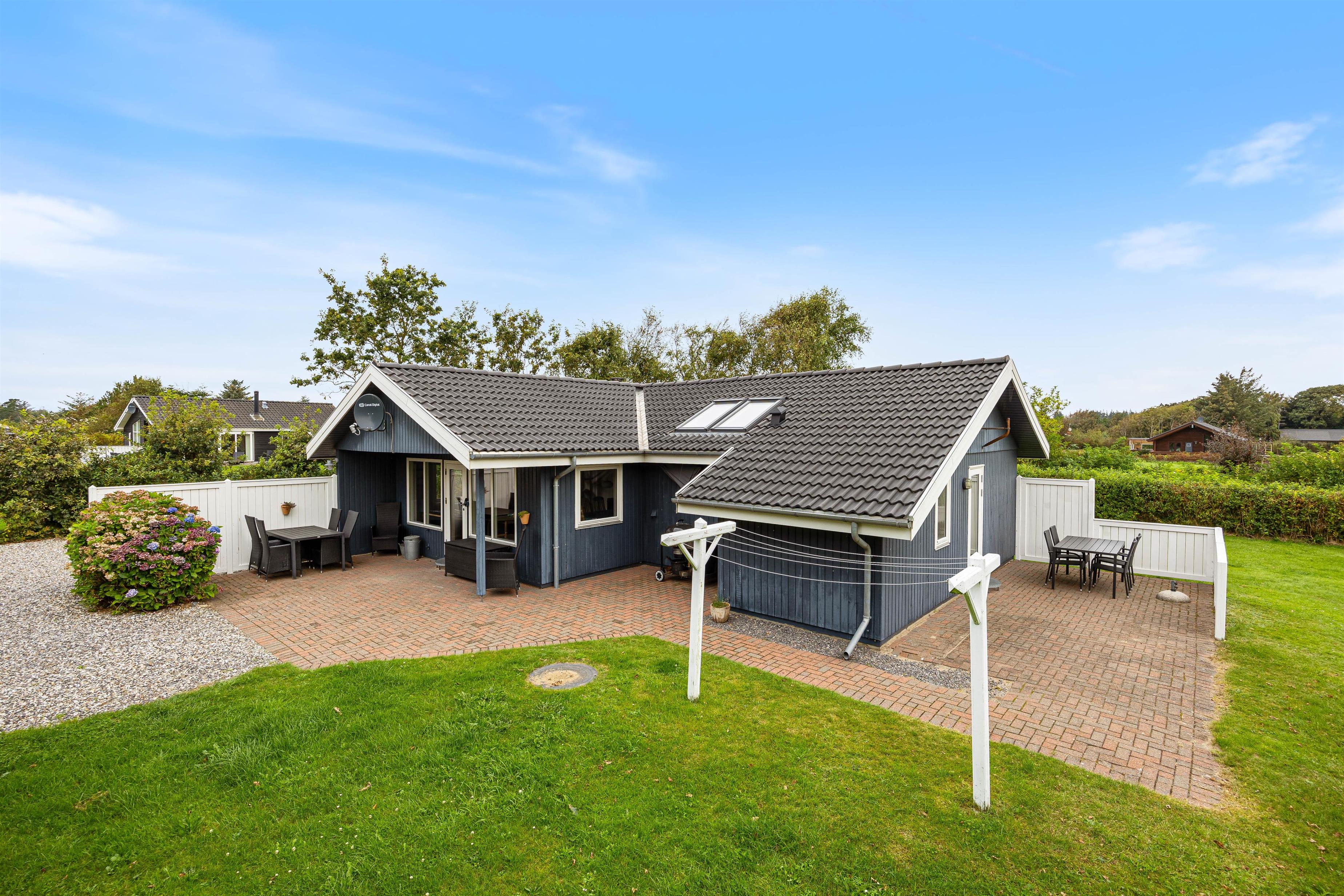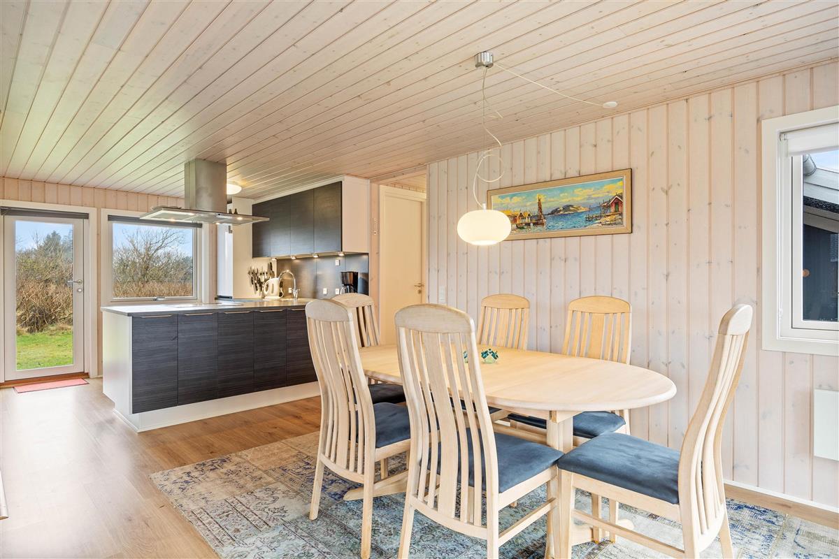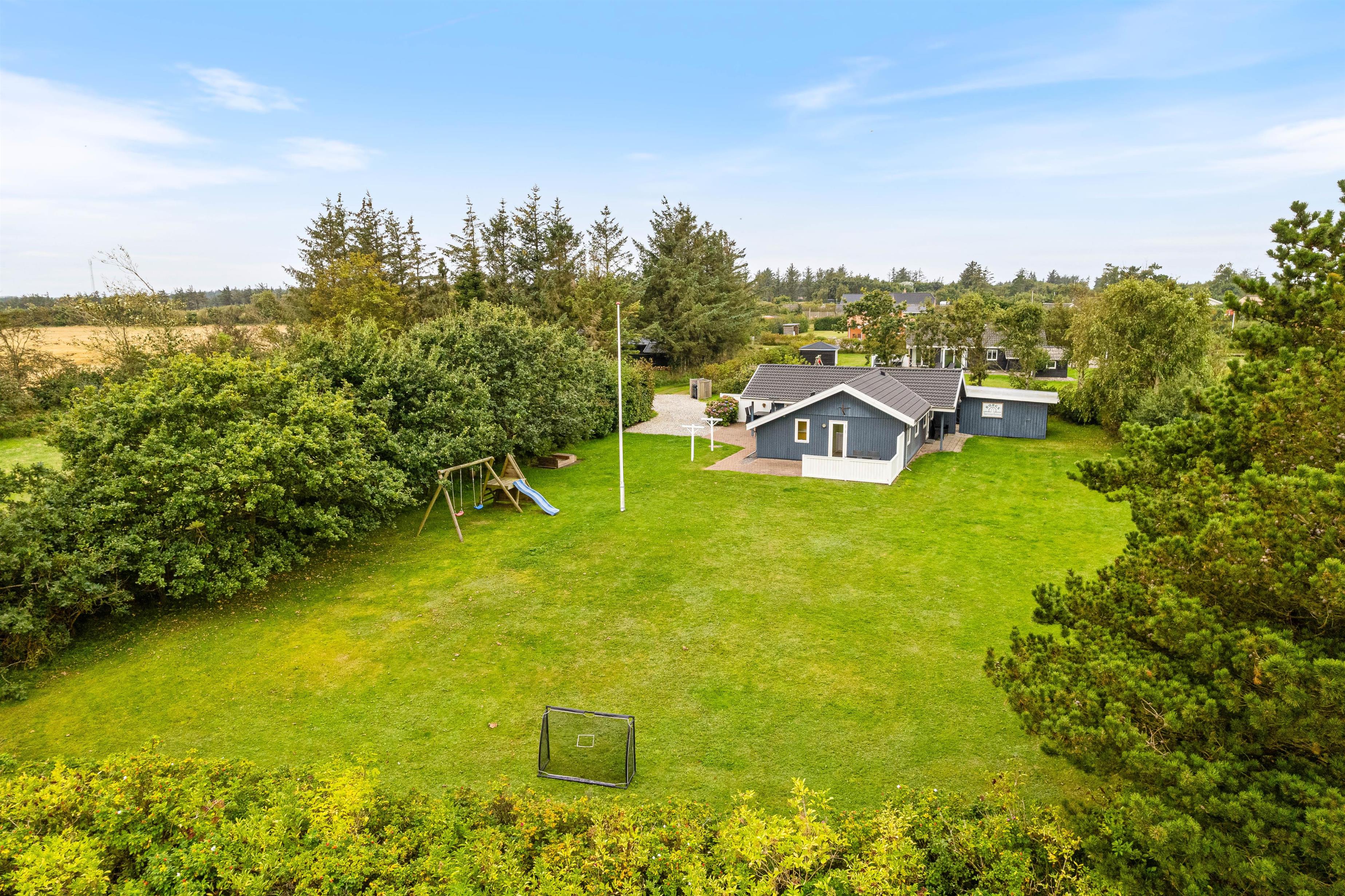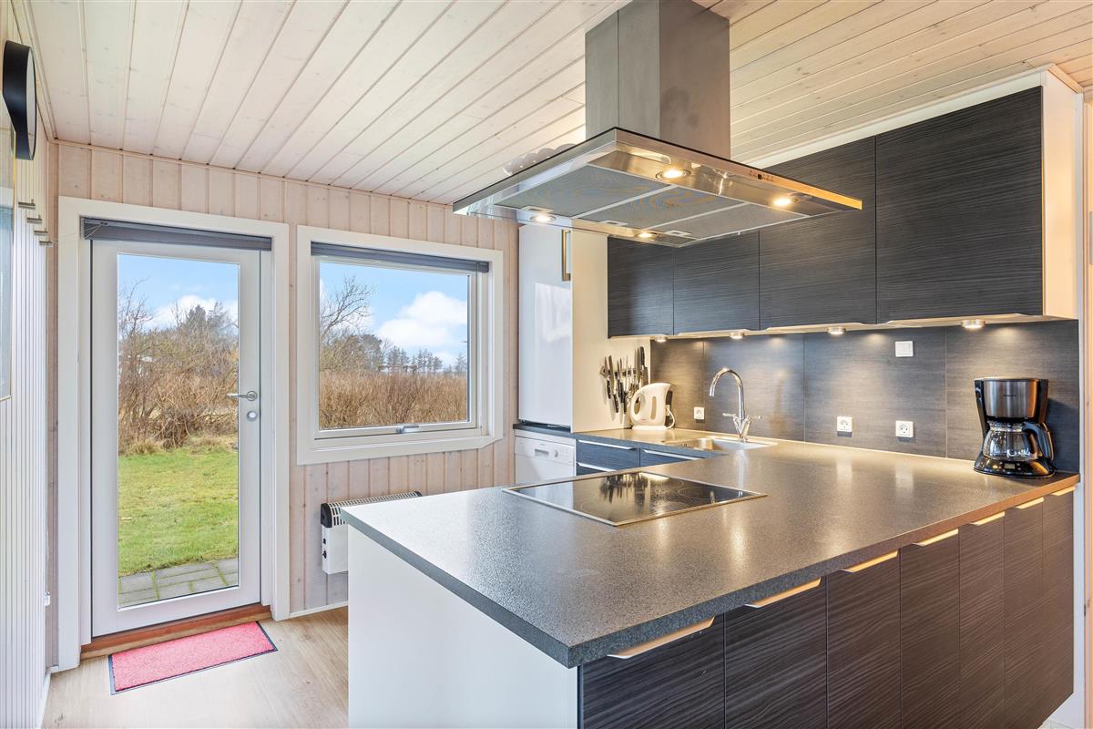 The holiday home at Helmklitvej 210 in Fjand sits on a 1,886-square-metre lawn, offering plenty of space for children and dogs to play and romp around. The garden swing will surely be a hit with your children. While the children play ball, you can relax on the partially covered and sheltered terrace or prepare everything for a cosy barbecue evening.
